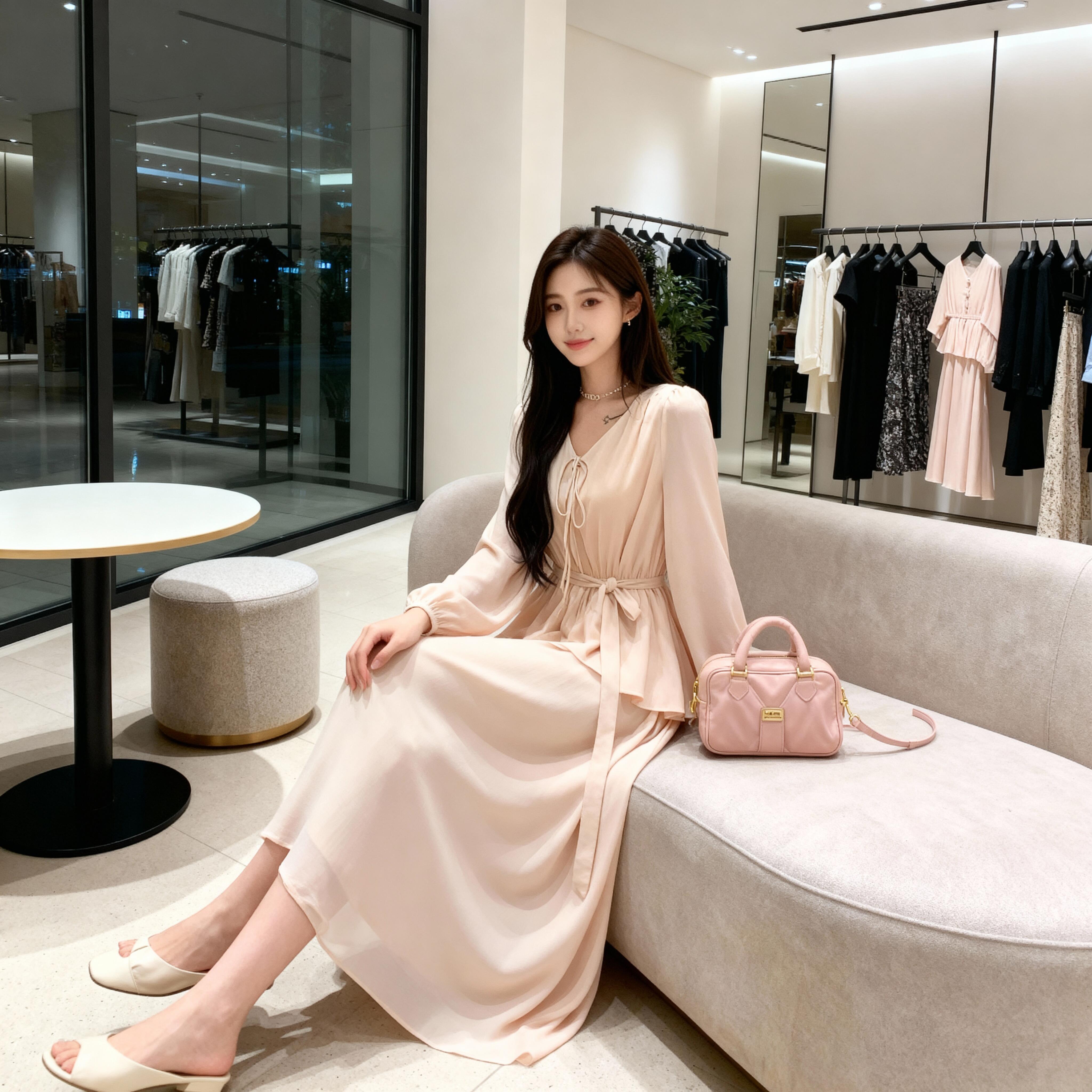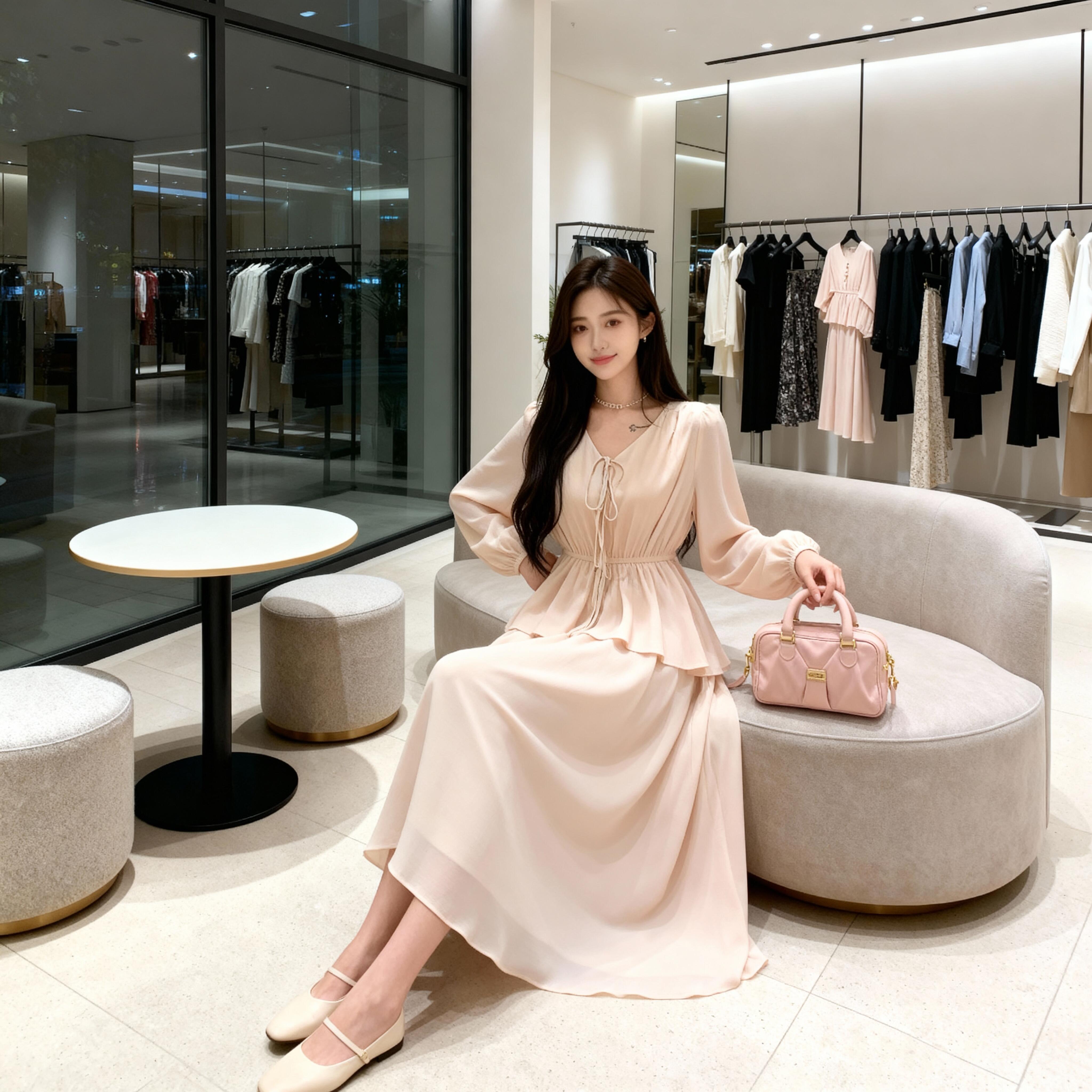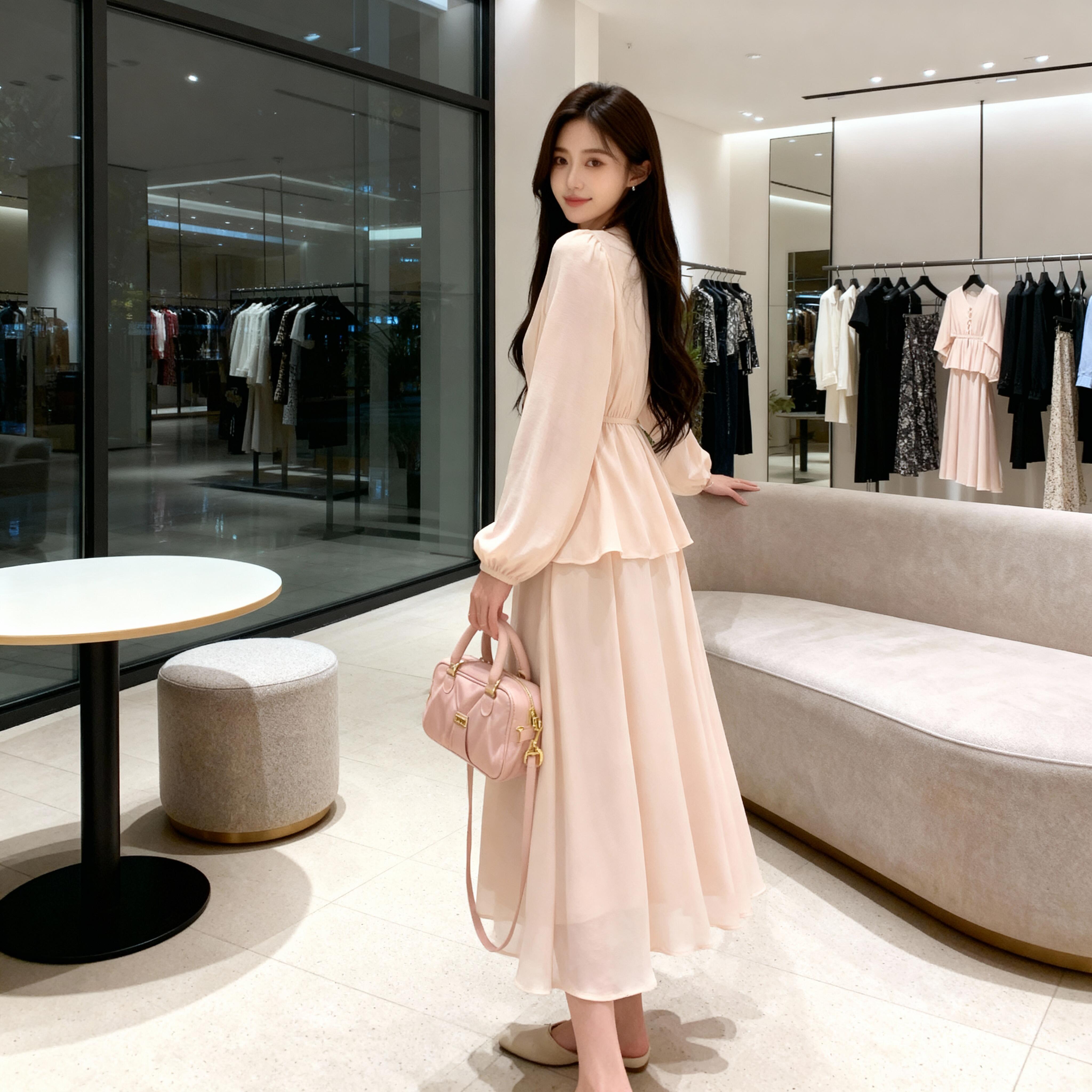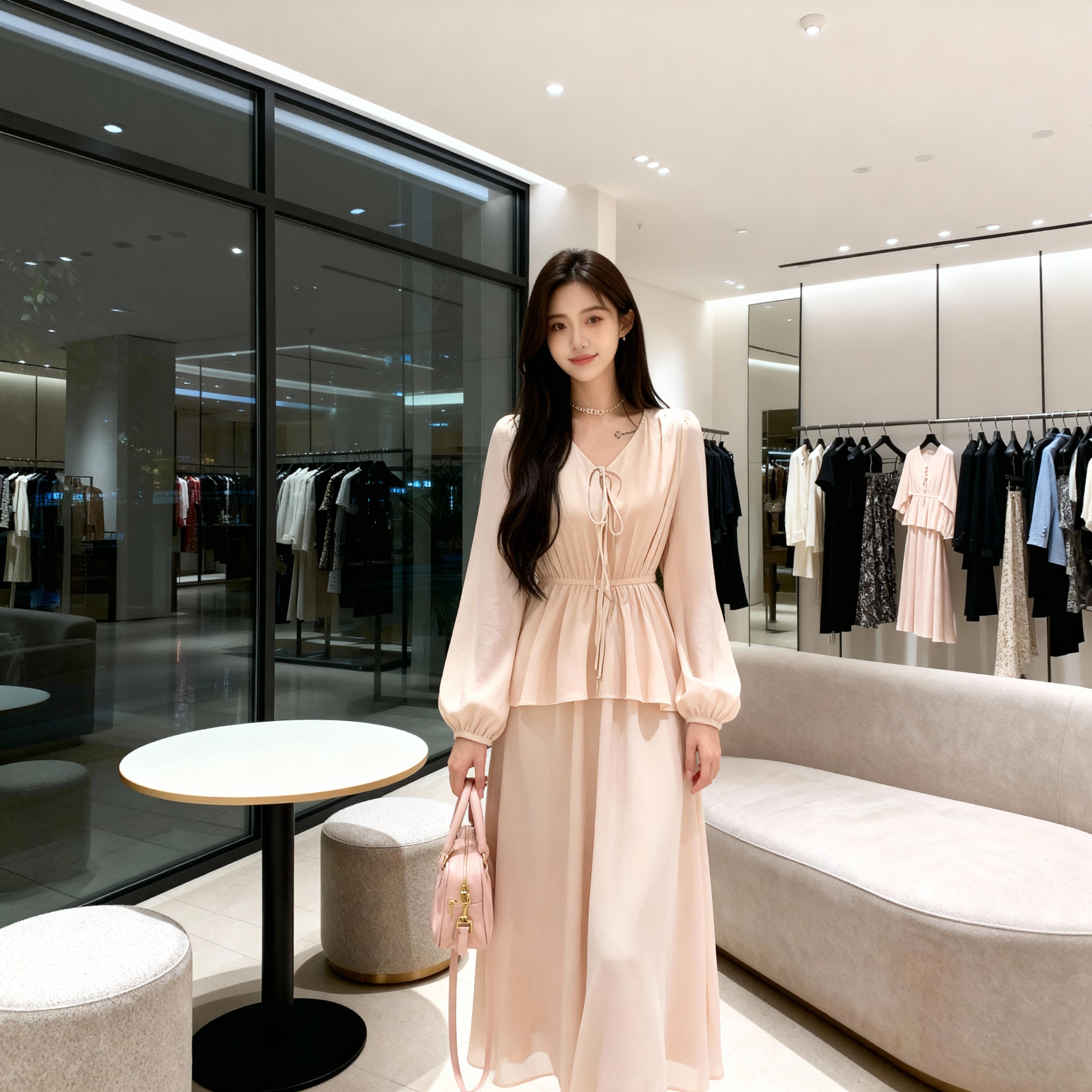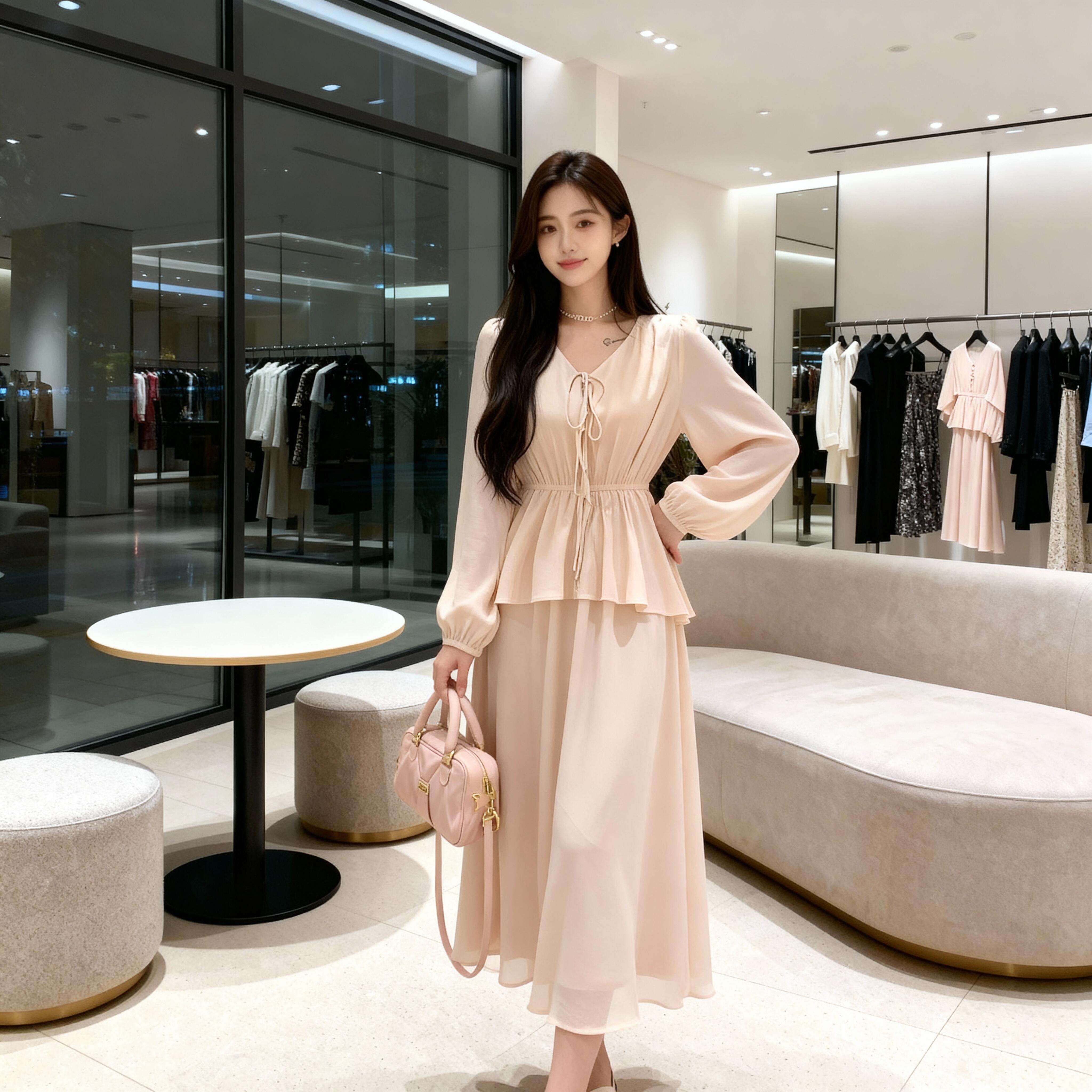 MY15557# V领系带连衣裙女泡泡袖收腰荷叶边长裙法式温柔气质显瘦百搭裙女裝貨源服裝批發