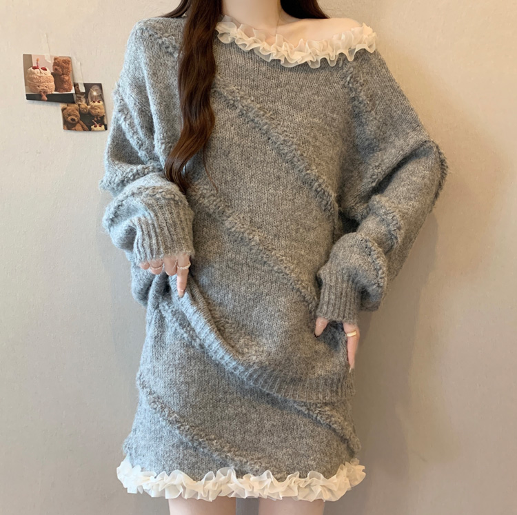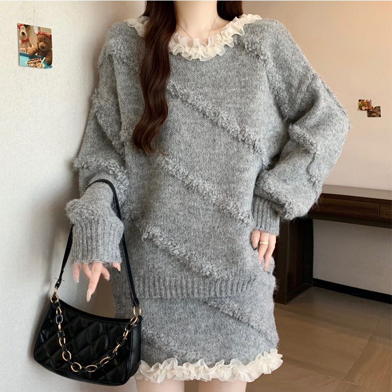 MY15470# 新款高端宽松大码遮肚子显瘦毛衣韩版中长款针织连衣裙女裝貨...