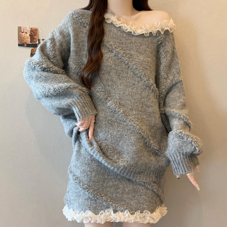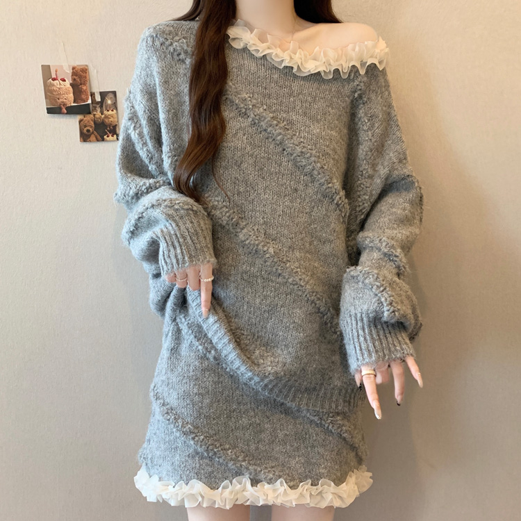 MY15458# 针织毛衣女宽松外穿新款加厚中长款打底连衣裙女裝貨源服裝批...