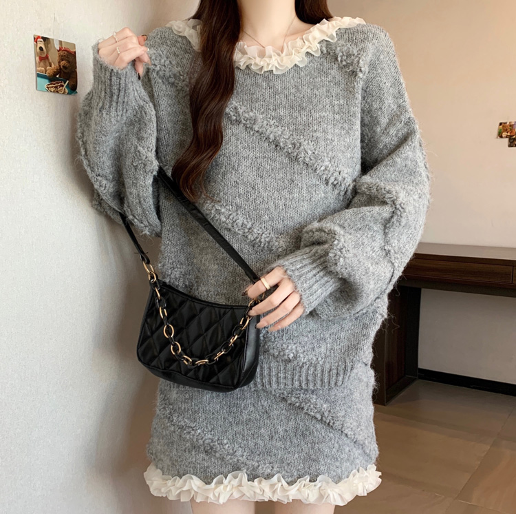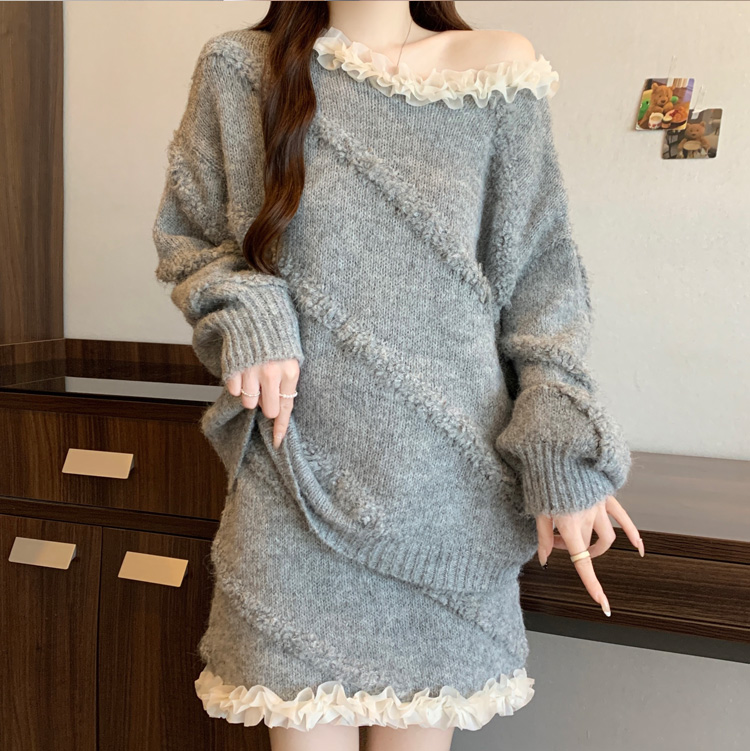 MY15465# 针织毛衣女宽松外穿新款加厚中长款打底连衣裙女裝貨源服裝批...