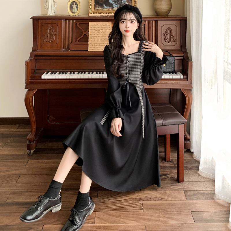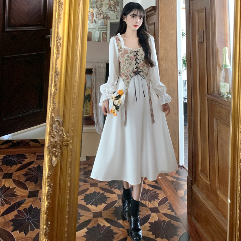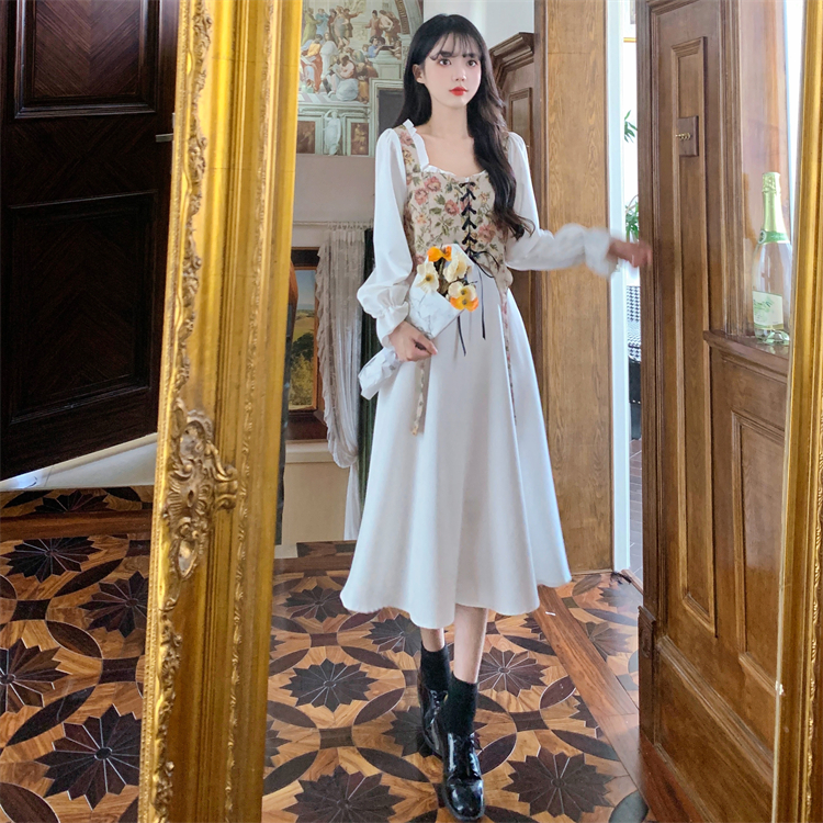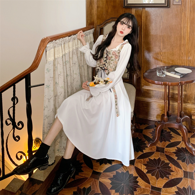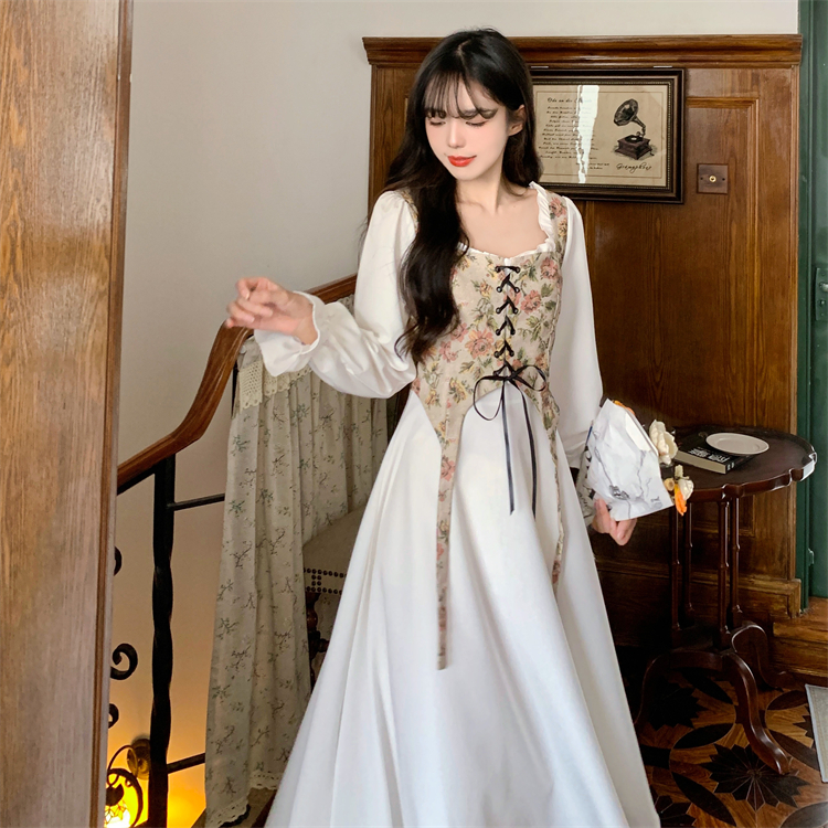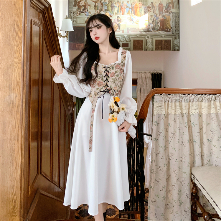 MY15561#大码女装胖mm收腰显瘦长裙子秋季法式茶歇初恋方领拼接碎花连衣裙