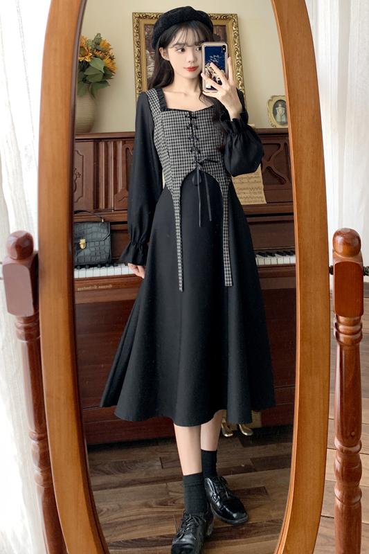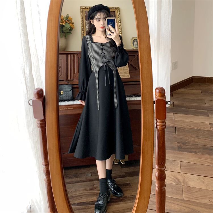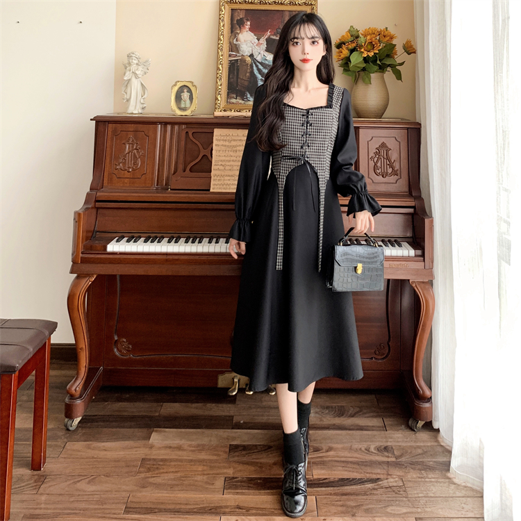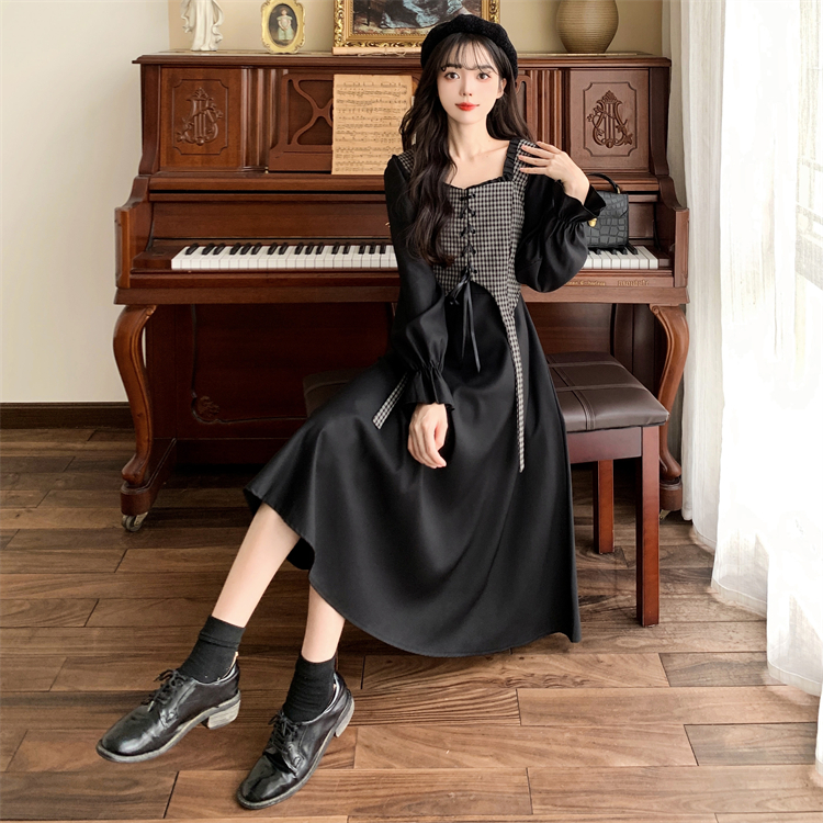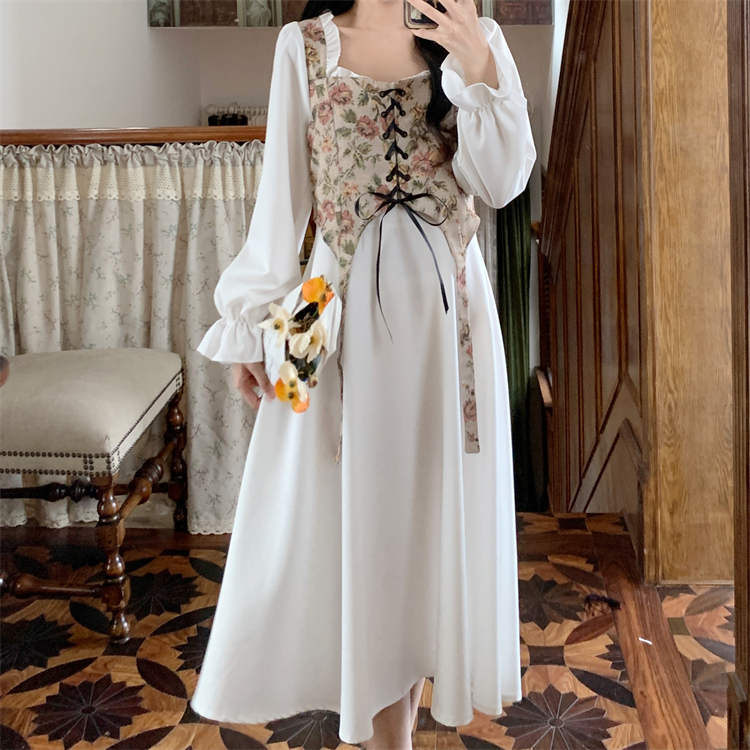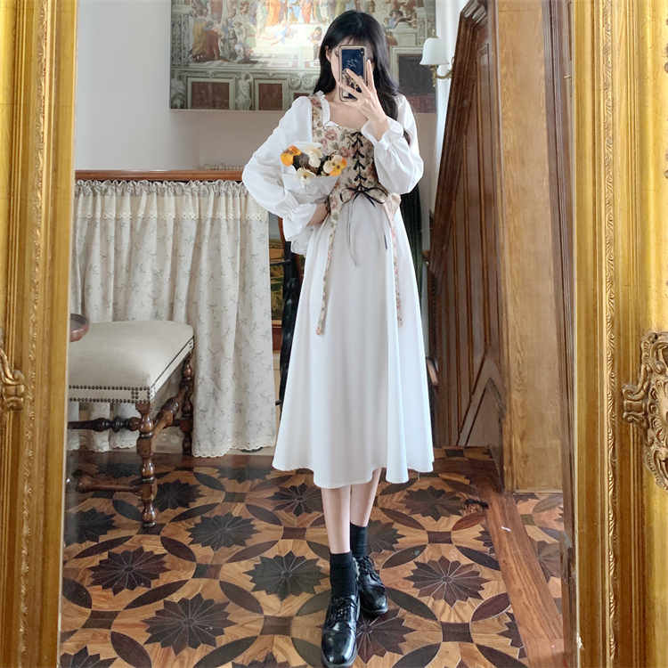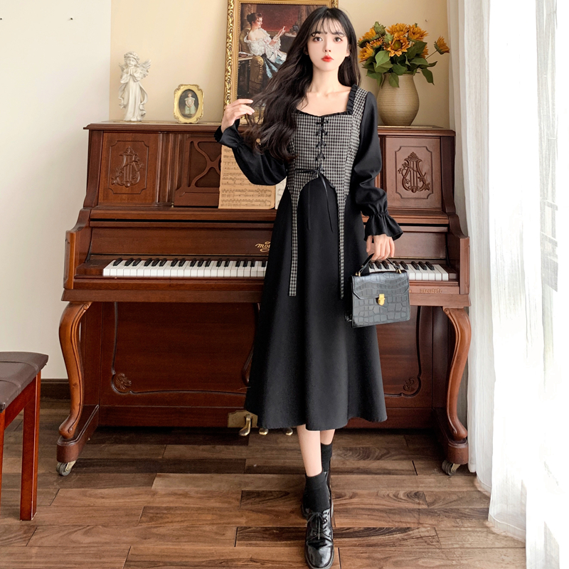 MY15561#大码女装胖mm收腰显瘦长裙子秋季法式茶歇初恋方领拼接碎花连衣裙