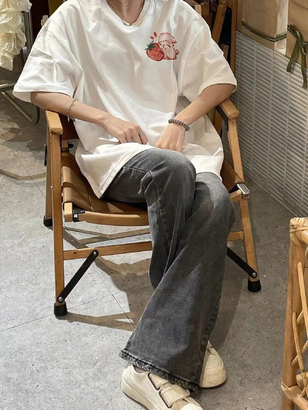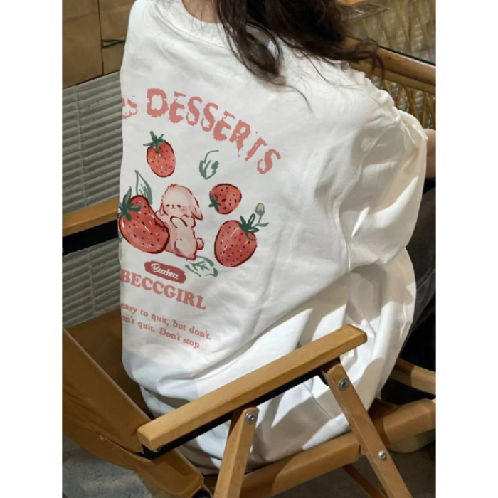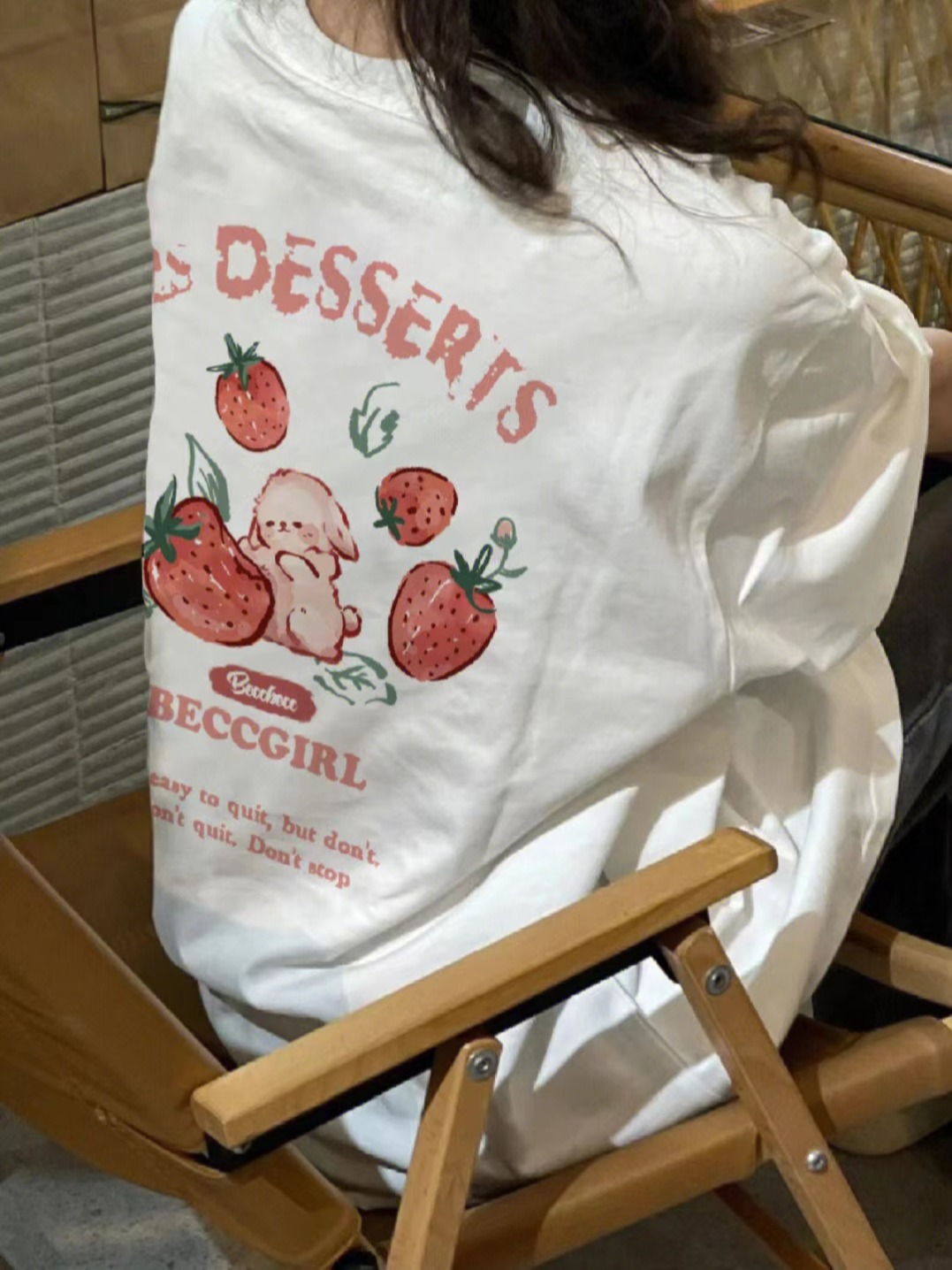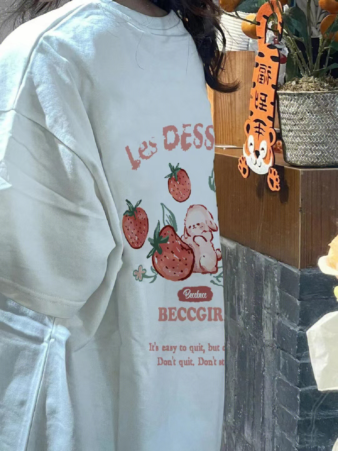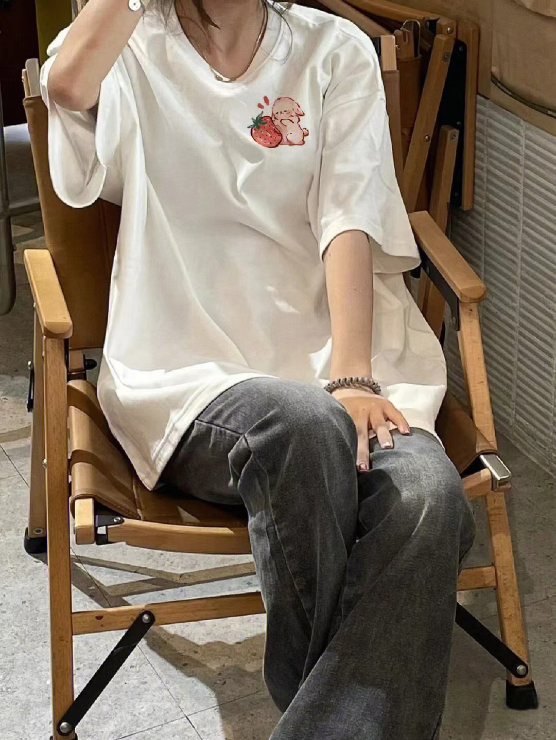 MY15563# 100%纯棉原版外贸夏装慵懒宽松字母卡通印花短袖T恤韩系原宿上衣女裝貨源服裝批發