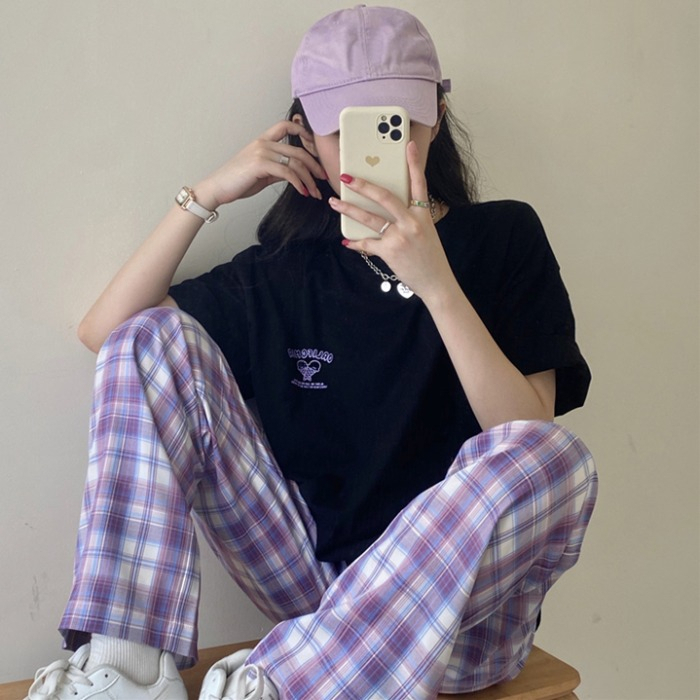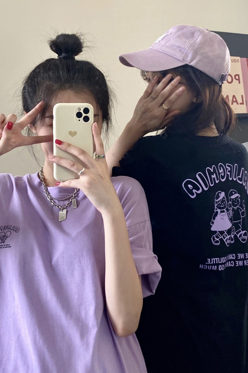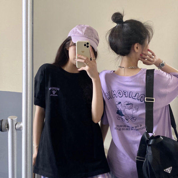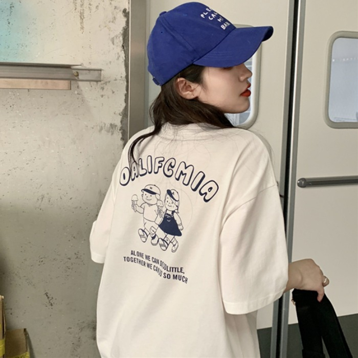MY15569# 100%纯棉原版外贸夏装慵懒宽松字母卡通印花短袖T恤韩系原宿上衣女裝貨源服裝批發