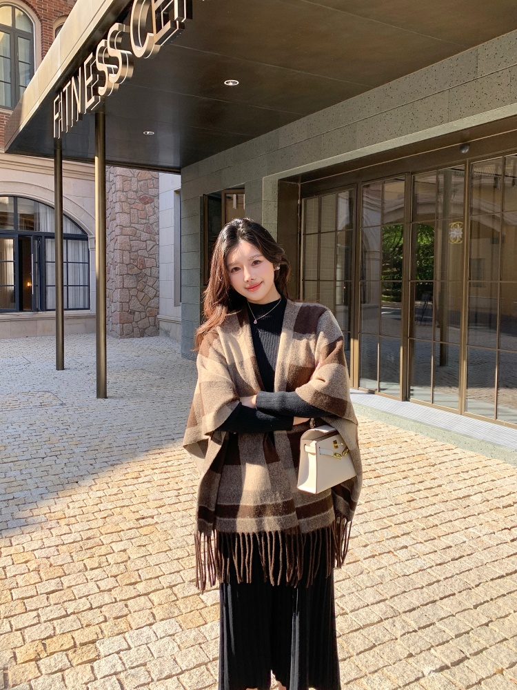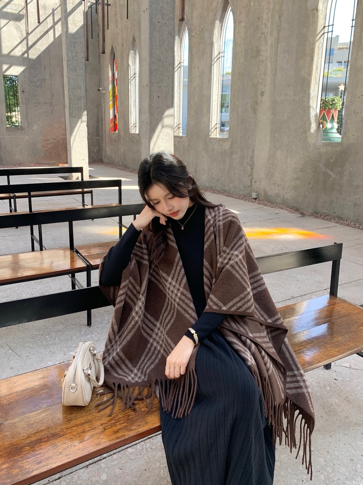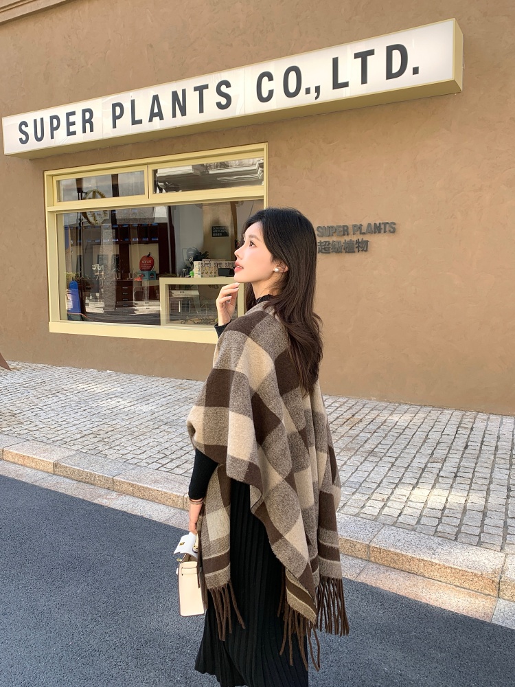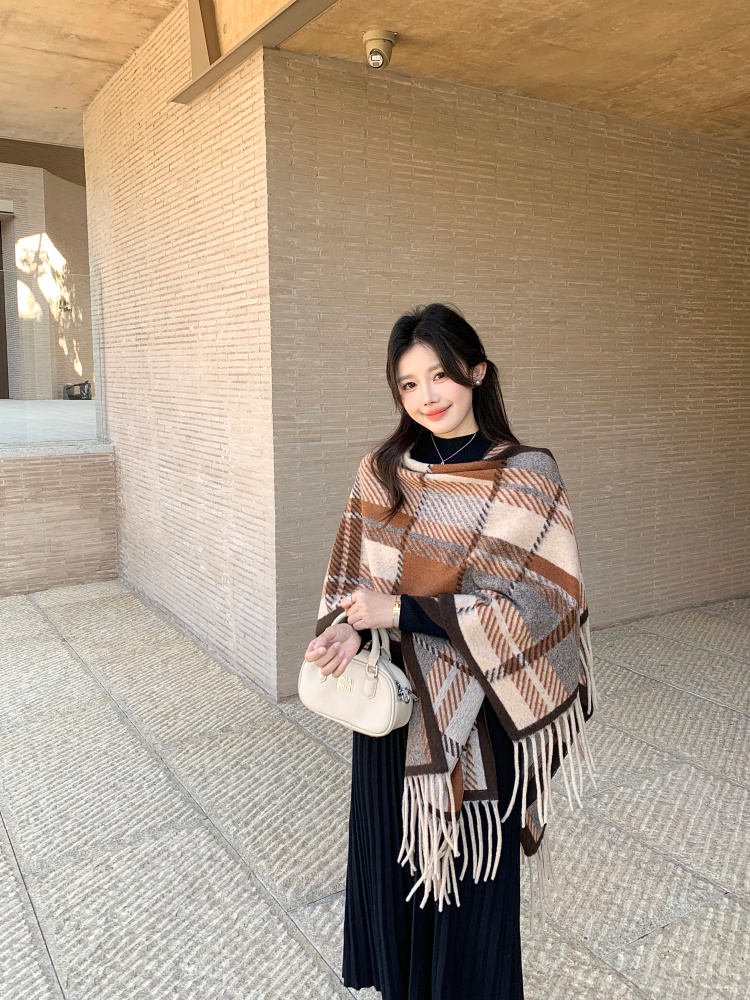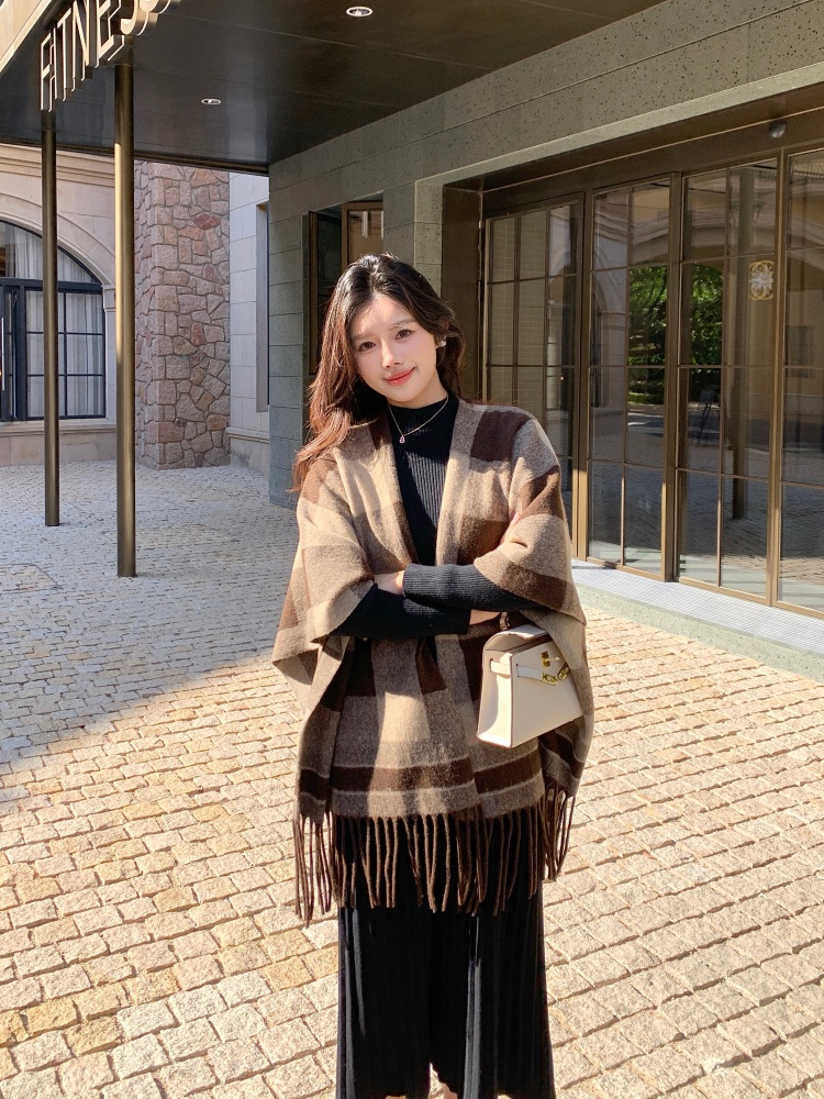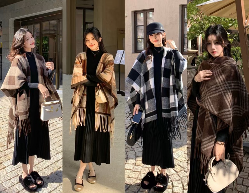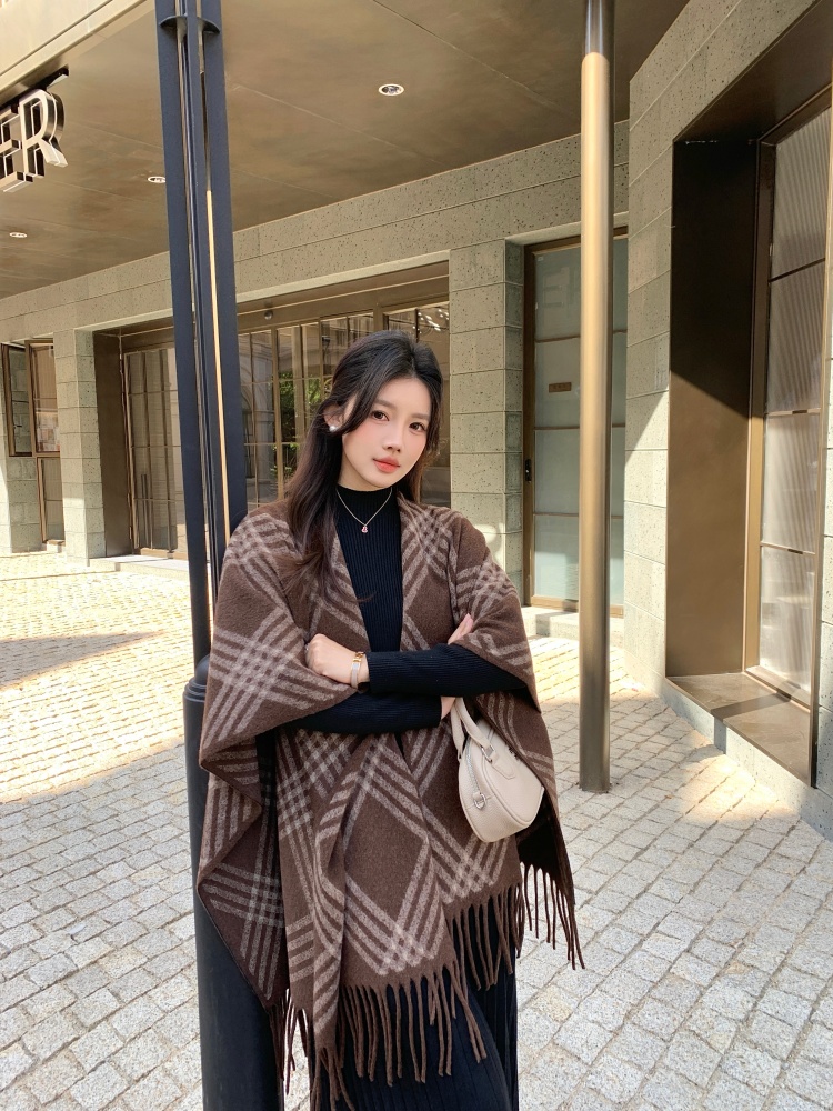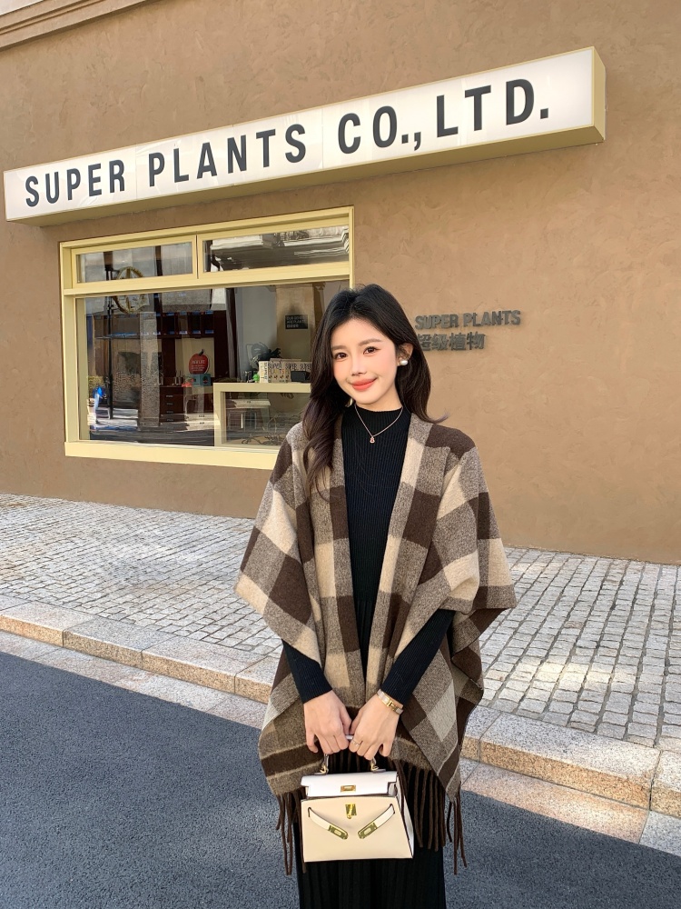 MY15599# 大码女装高级流苏披肩外套加厚保暖斗篷外搭连衣裙两件套女裝貨源服裝批發