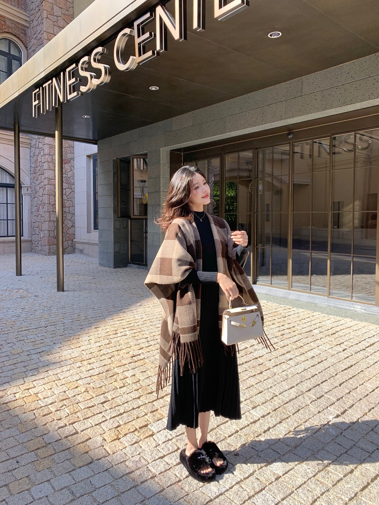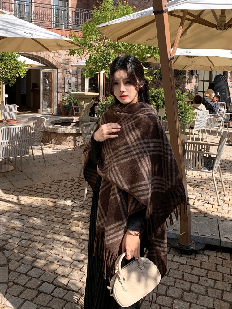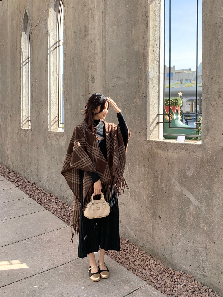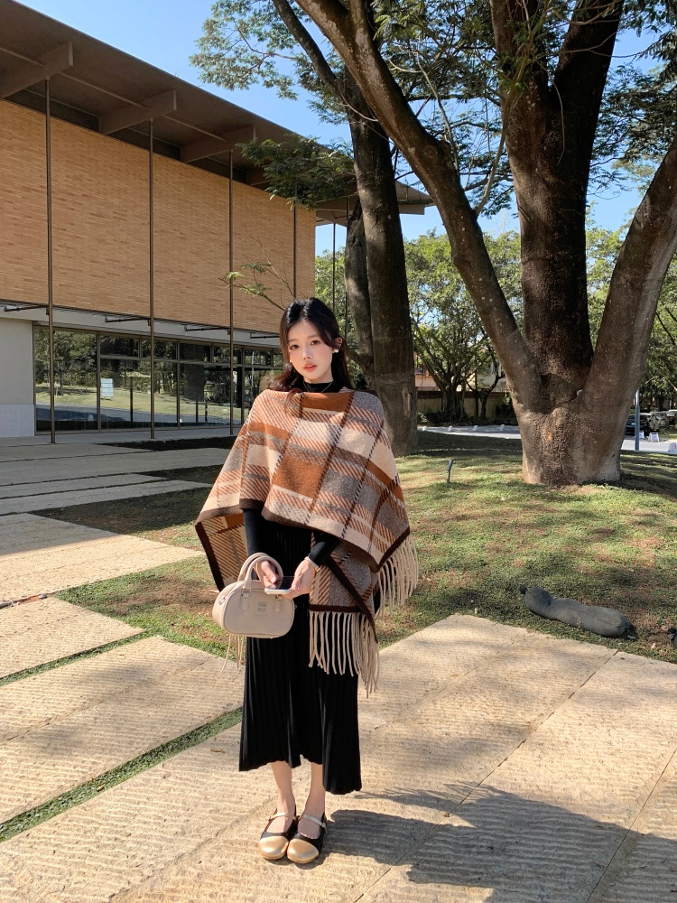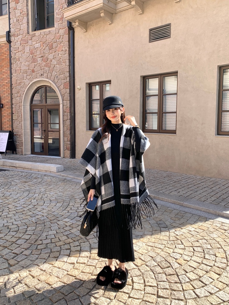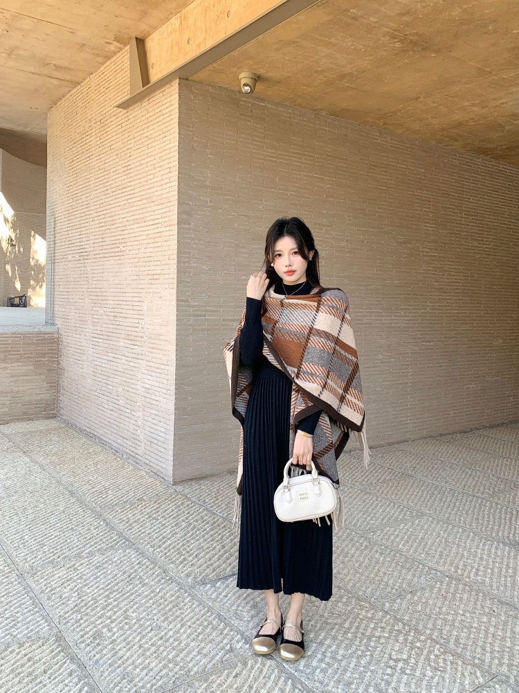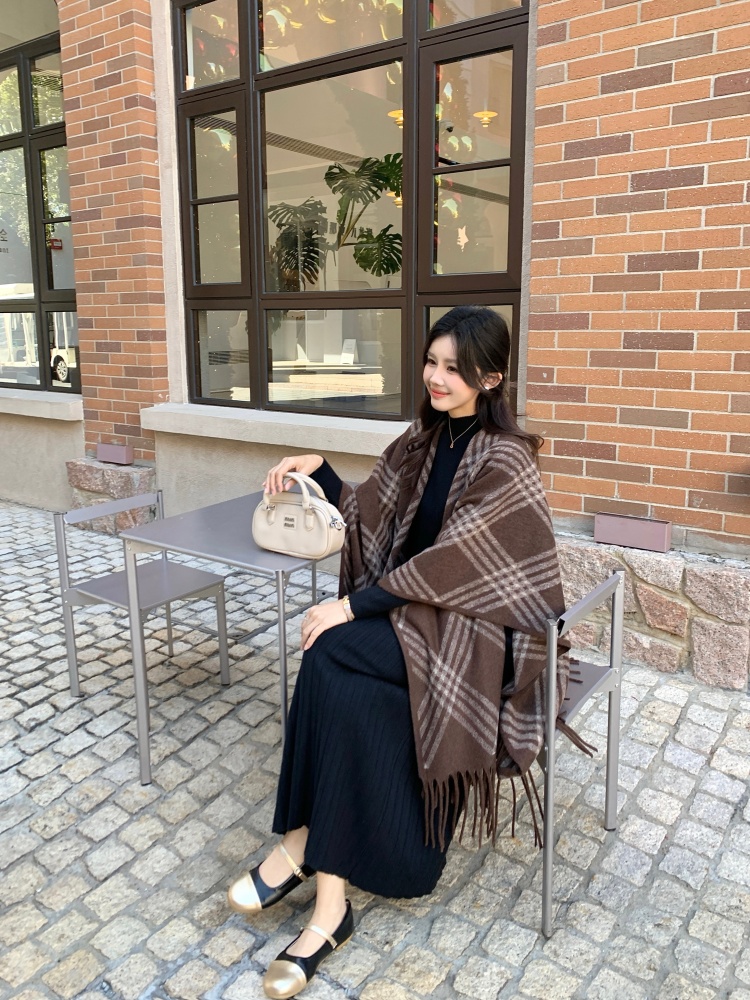 MY15599# 大码女装高级流苏披肩外套加厚保暖斗篷外搭连衣裙两件套女裝貨源服裝批發