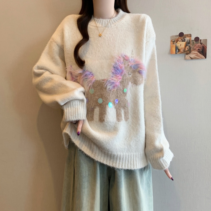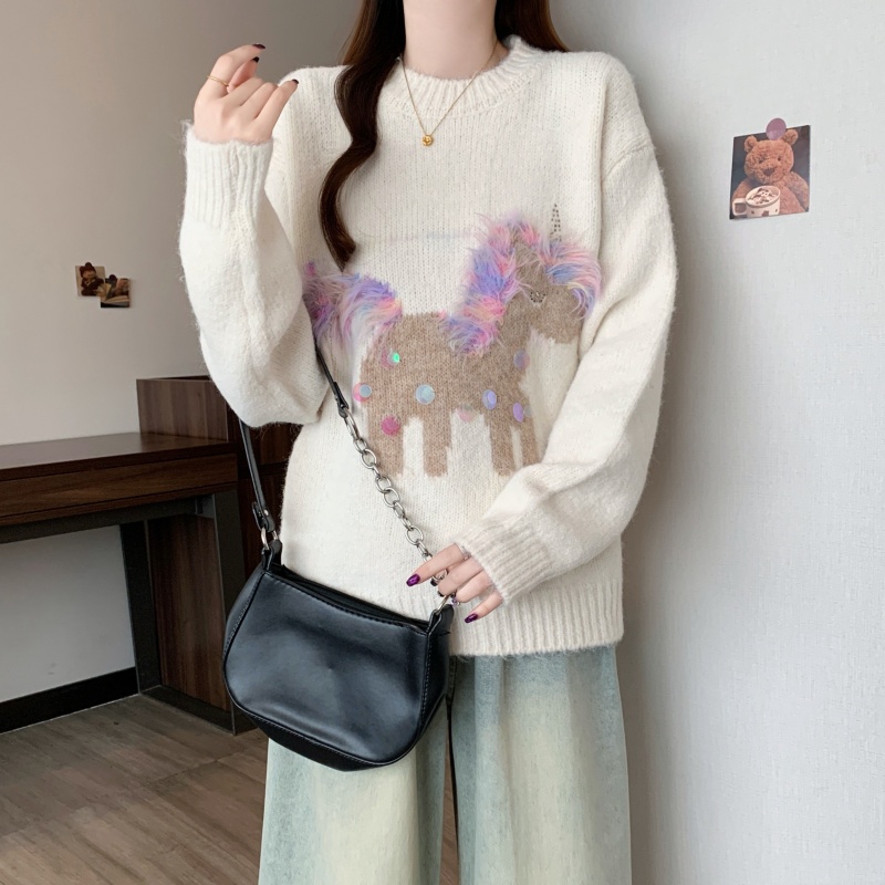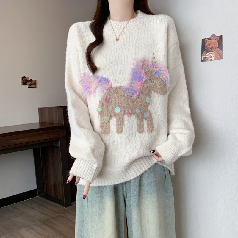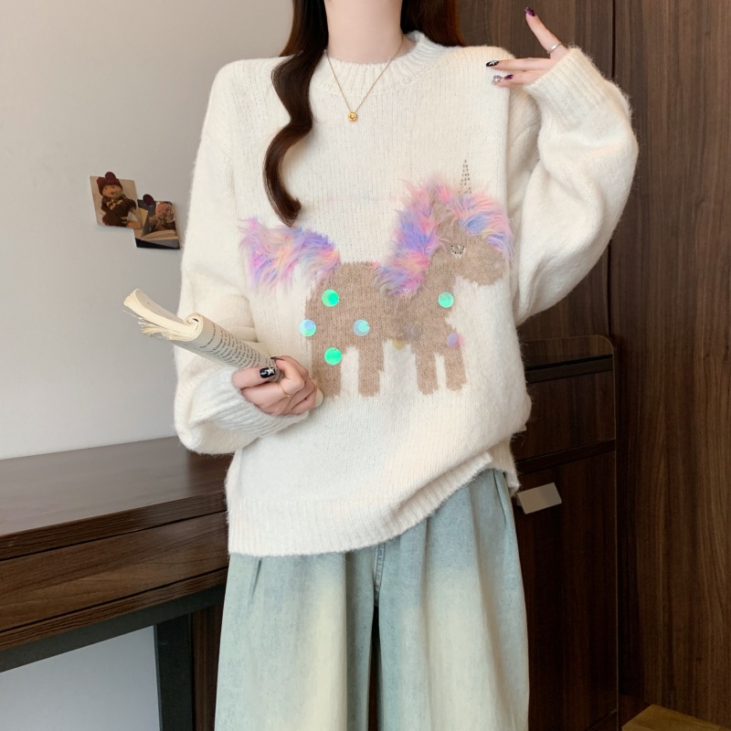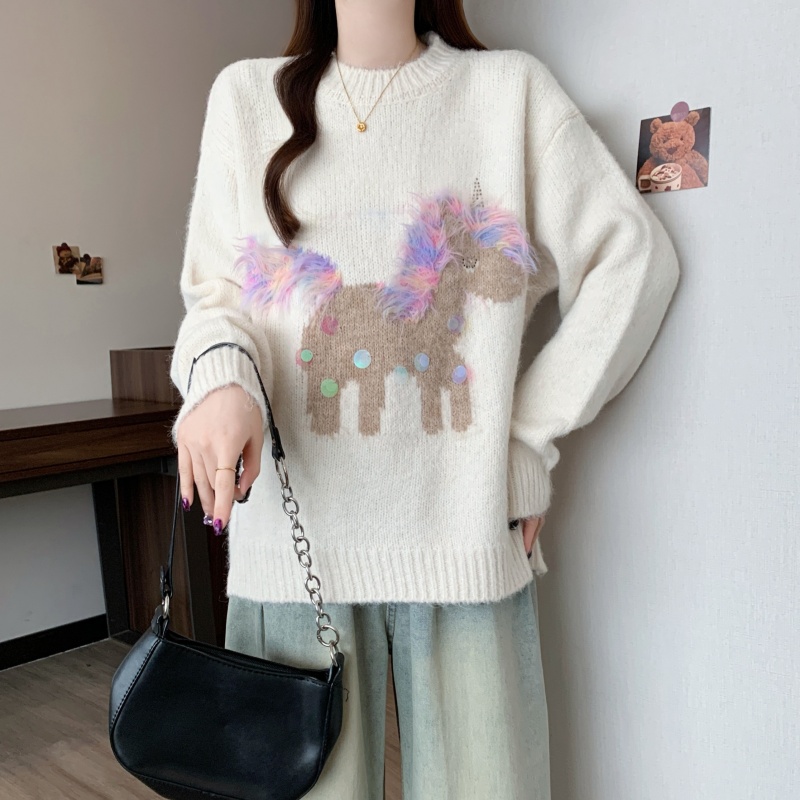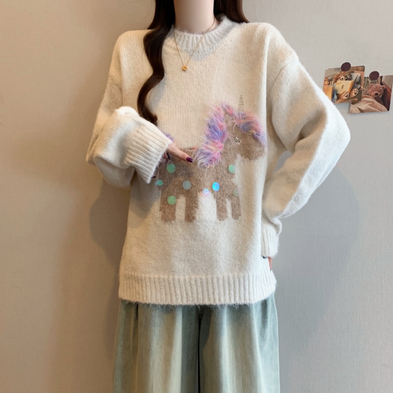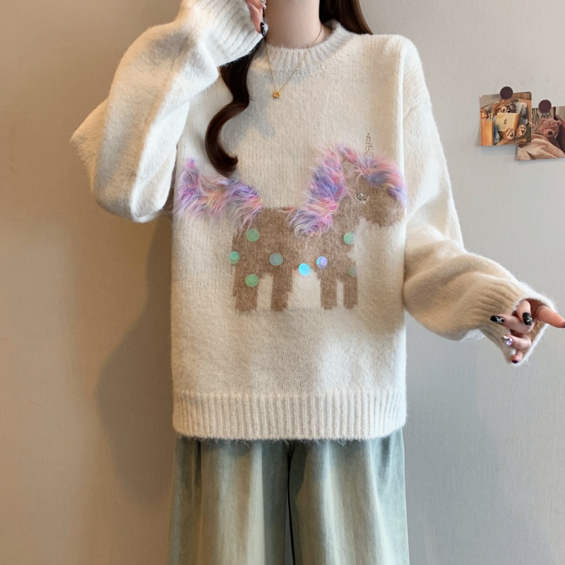 MY15600# 大码女装圣诞小马亮片新年毛衣胖MM时尚显瘦内搭针织上衣女裝貨源服裝批發