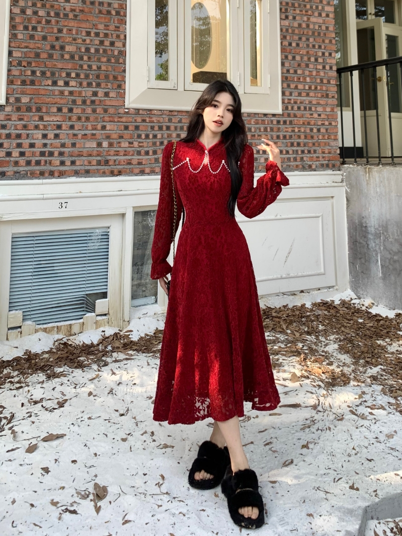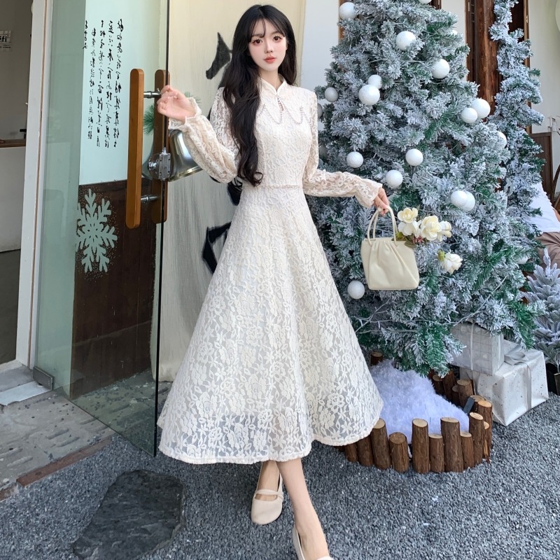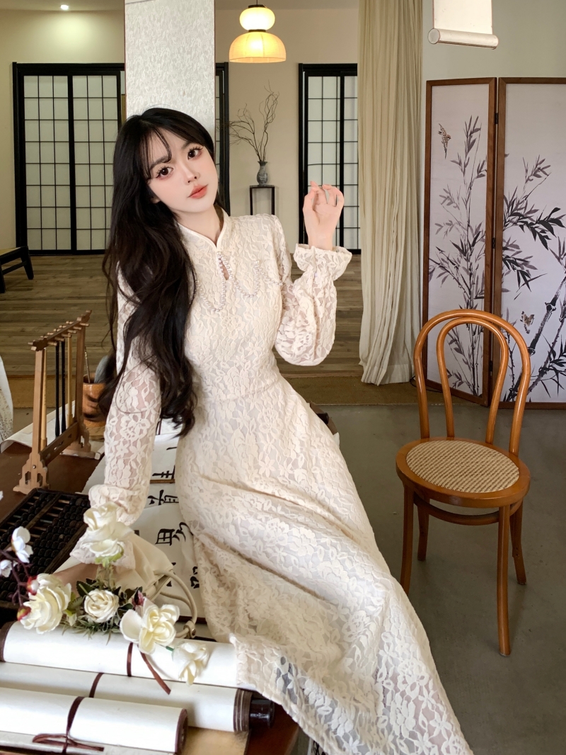 MY15612# 大码女装胖mm新中式连衣裙气质复古蕾丝拼接中长款内搭打底裙女裝貨源服裝批發