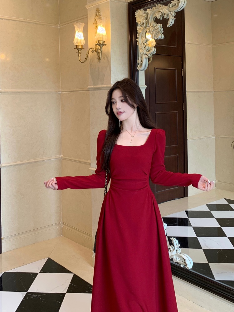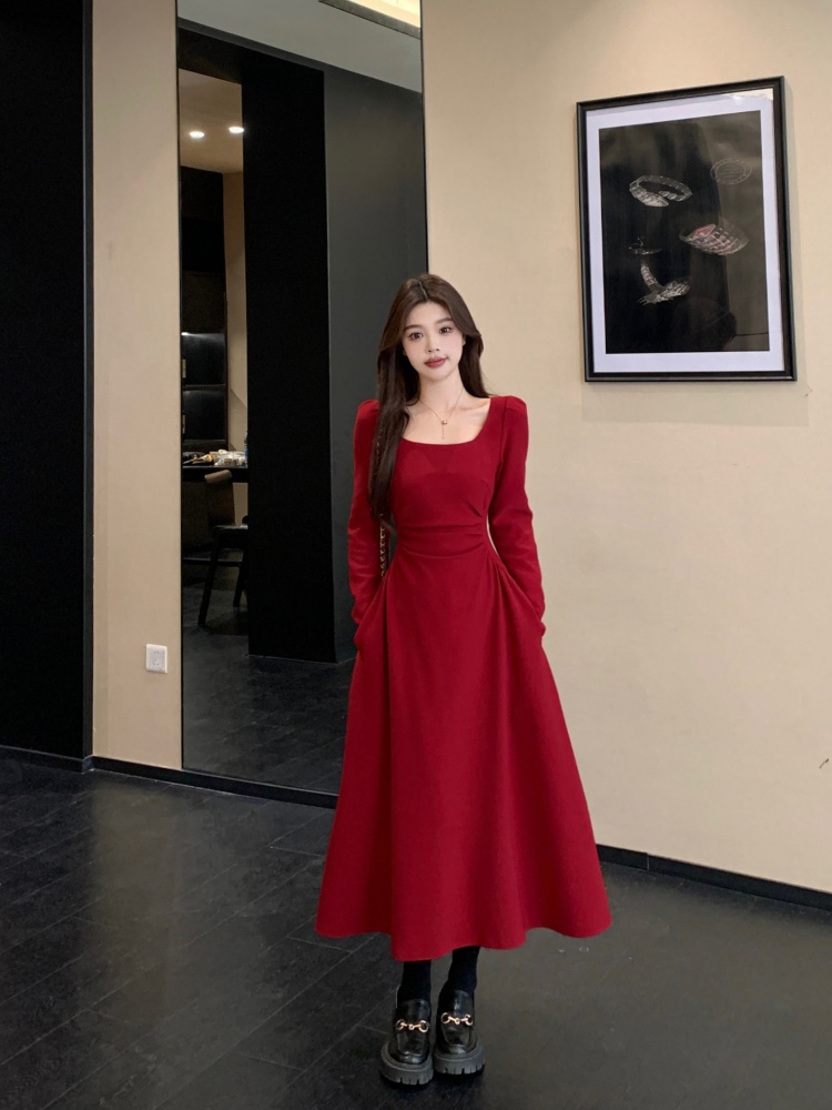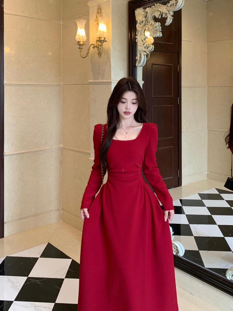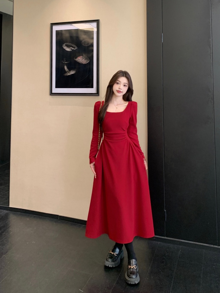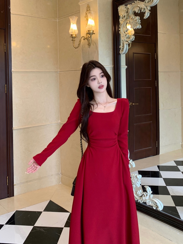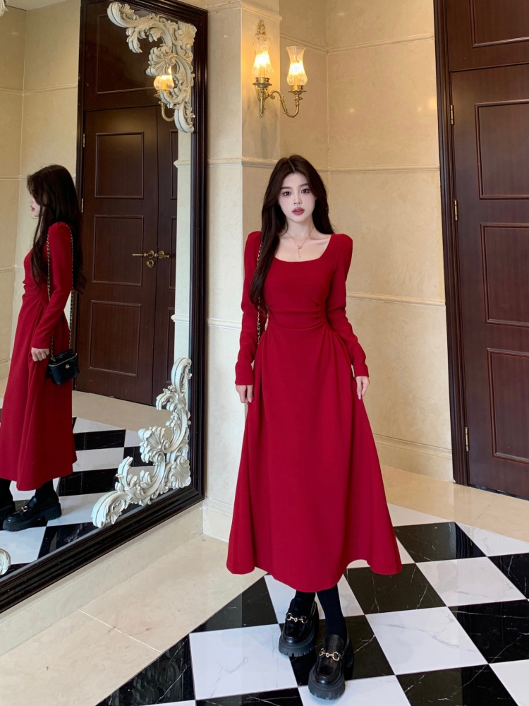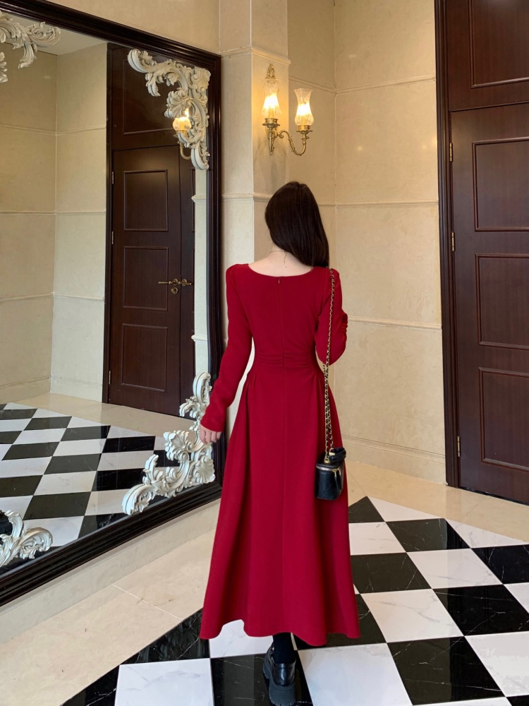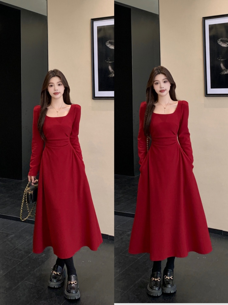 MY15613# 大码女装胖mm红色长袖连衣裙法式订婚礼服敬酒服平时可穿裙子女裝貨源服裝批發