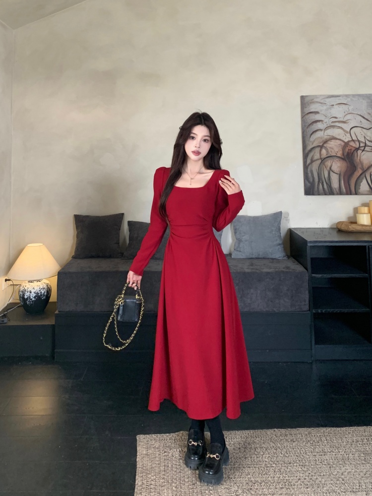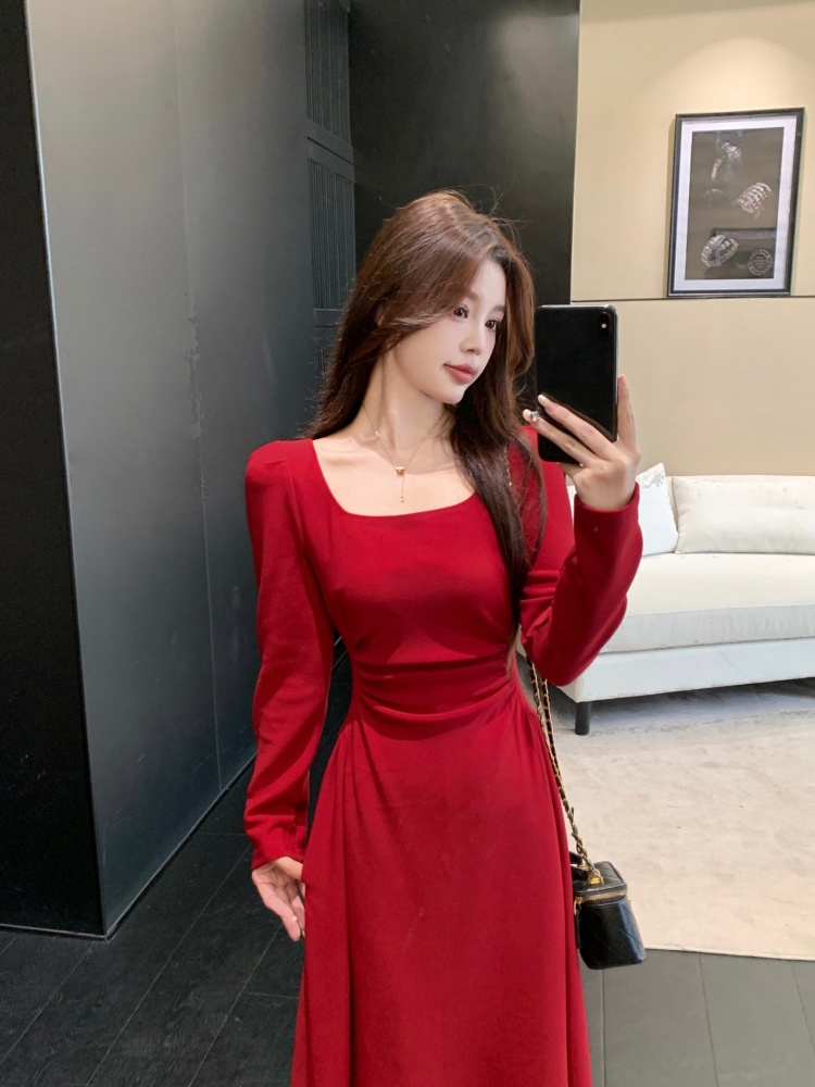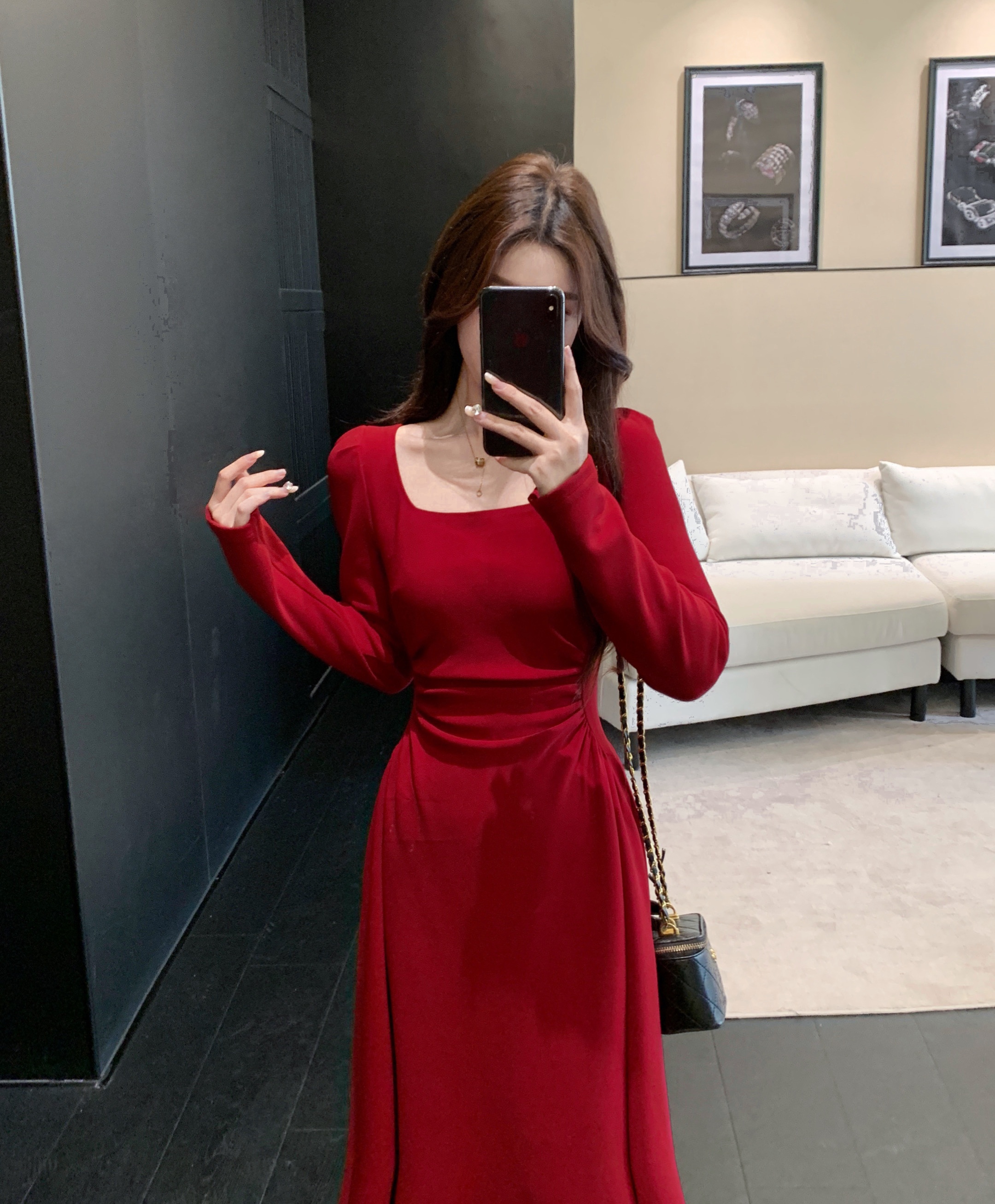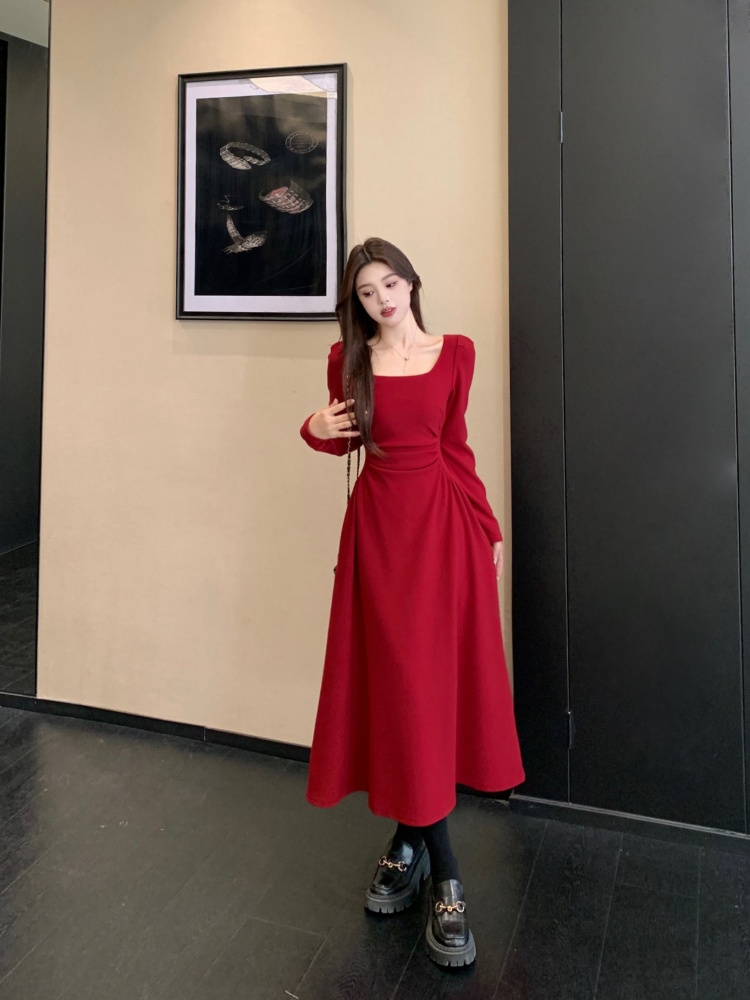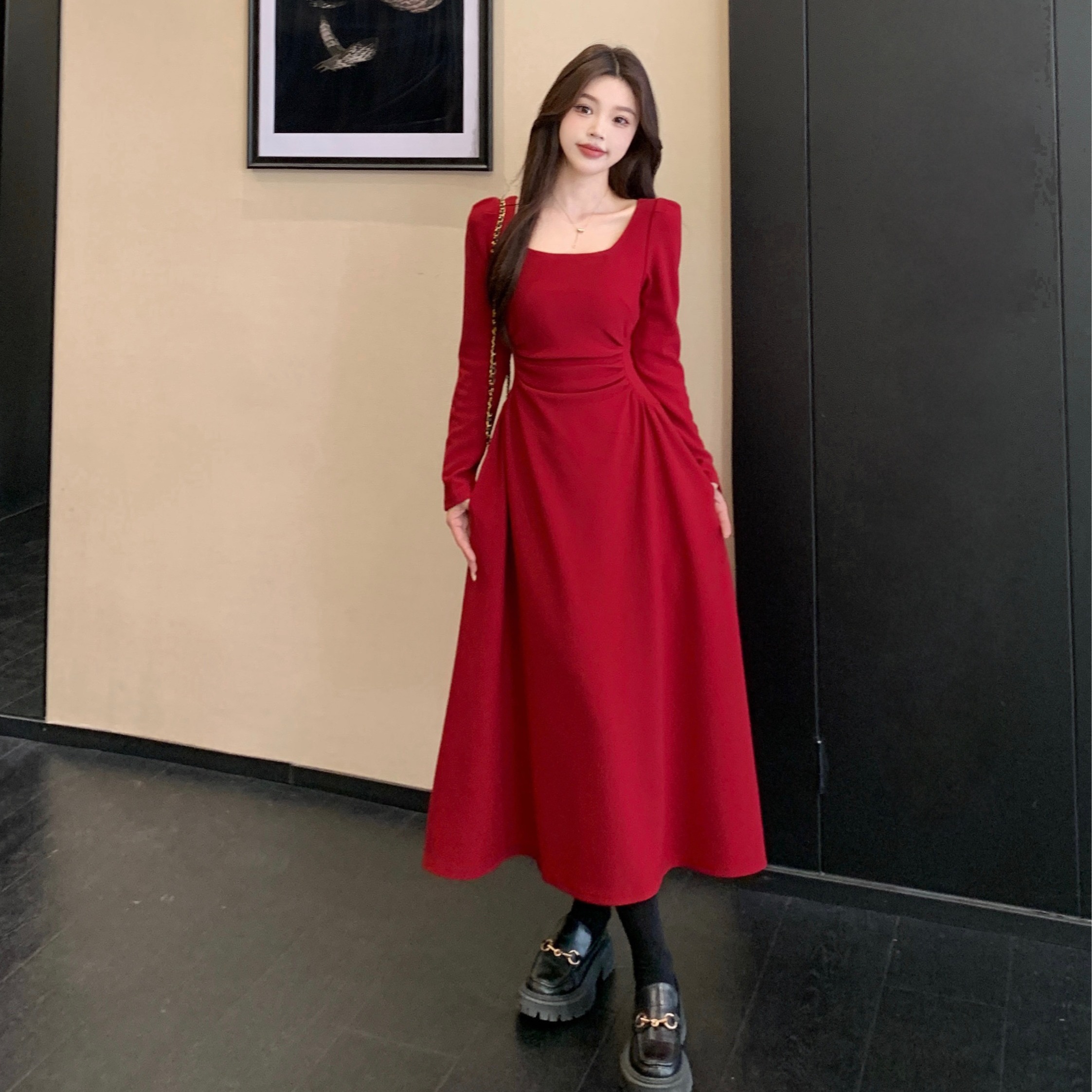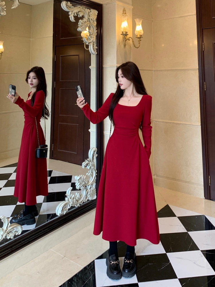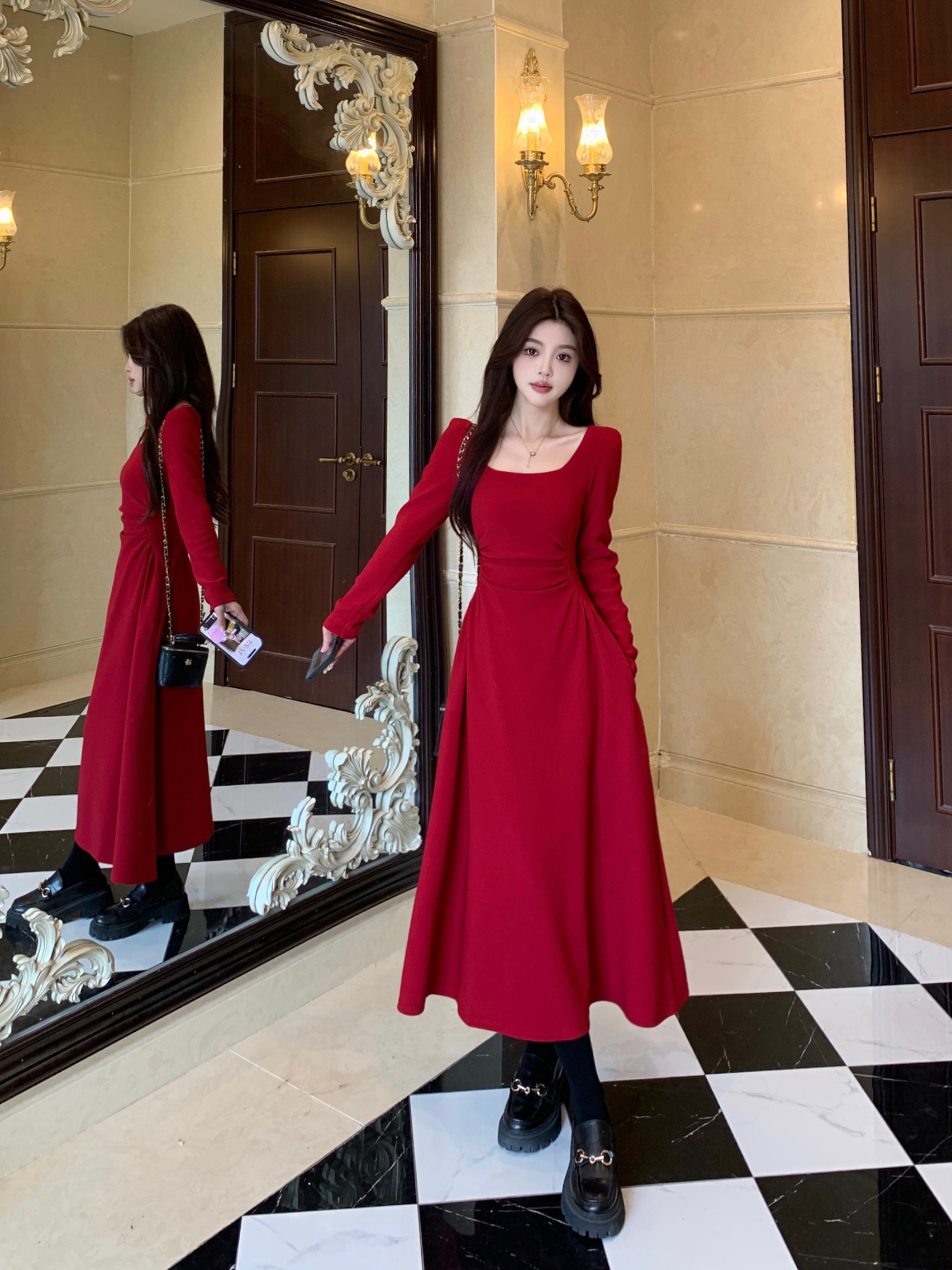 MY15613# 大码女装胖mm红色长袖连衣裙法式订婚礼服敬酒服平时可穿裙子女裝貨源服裝批發