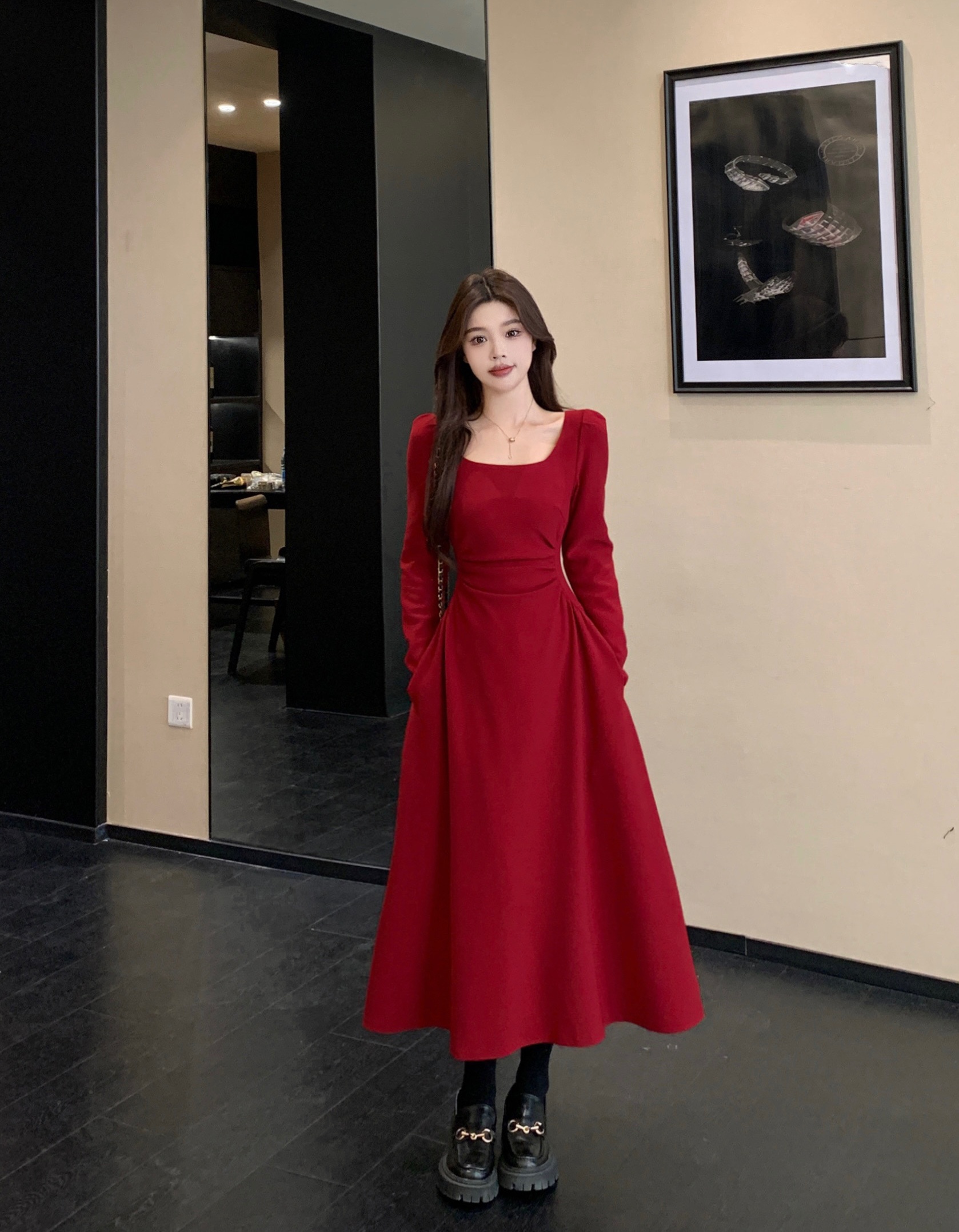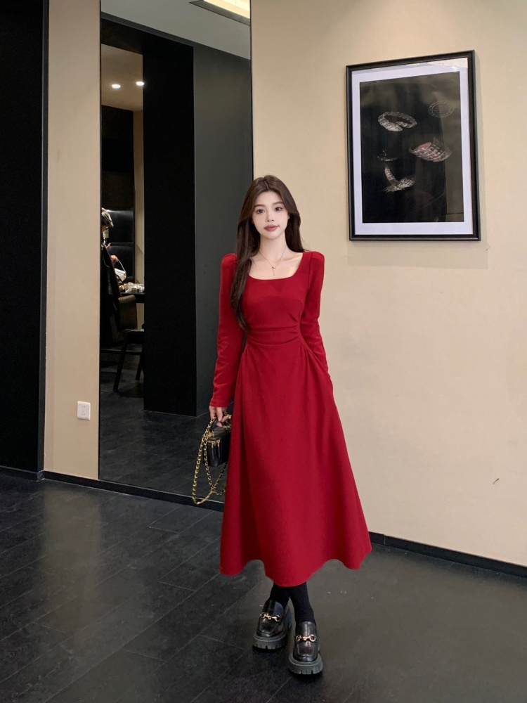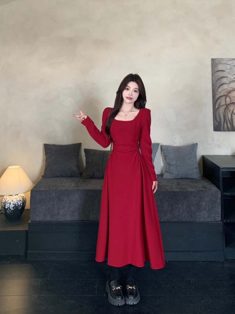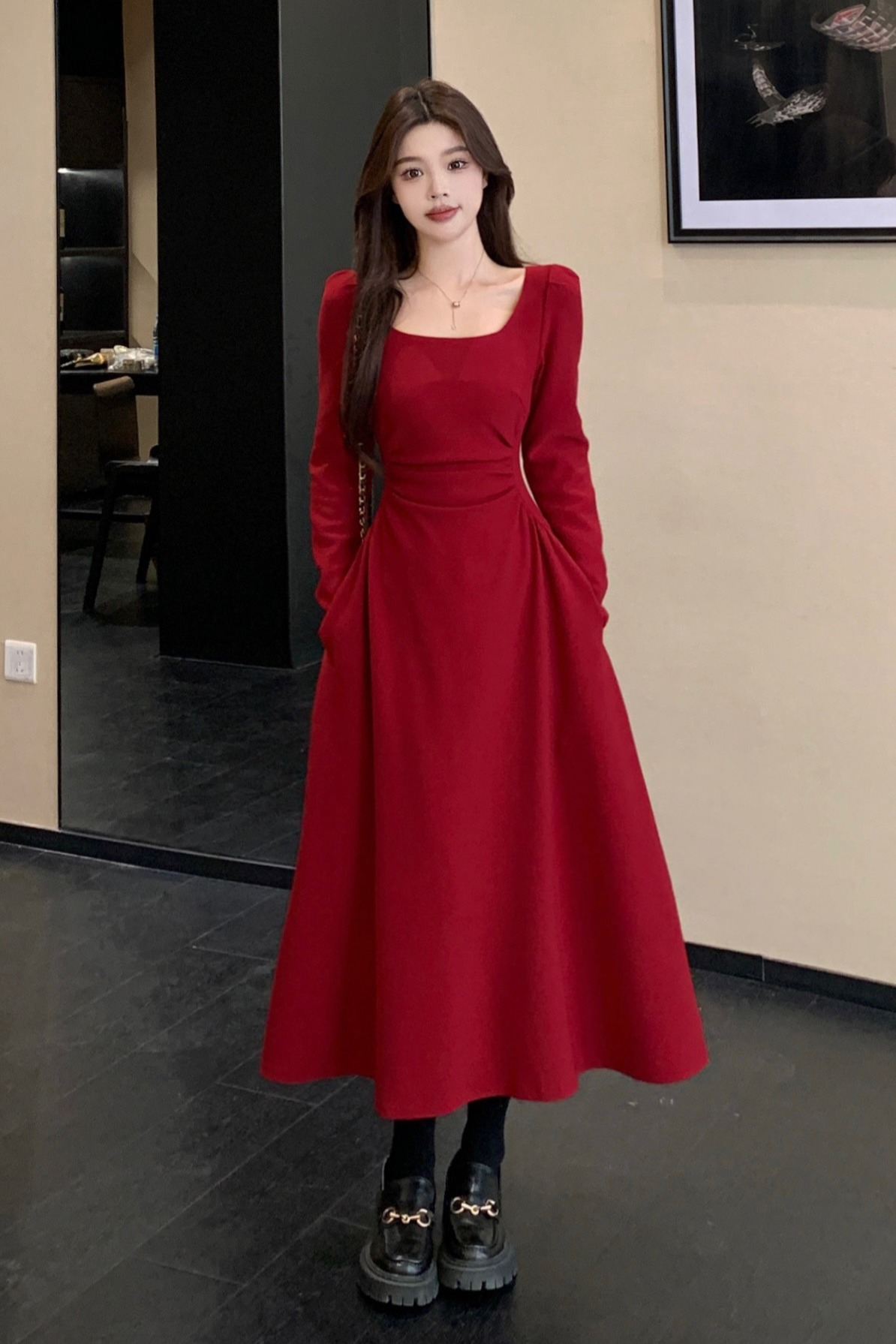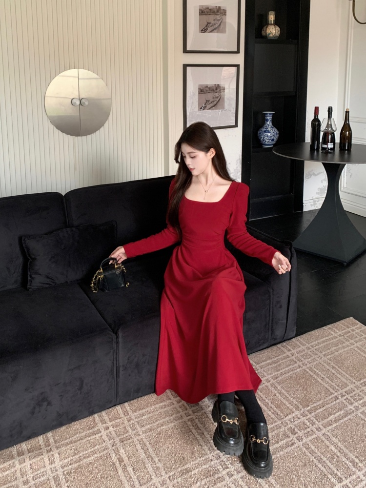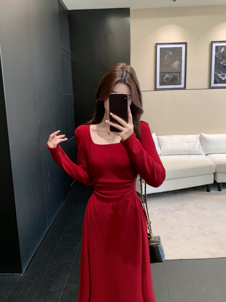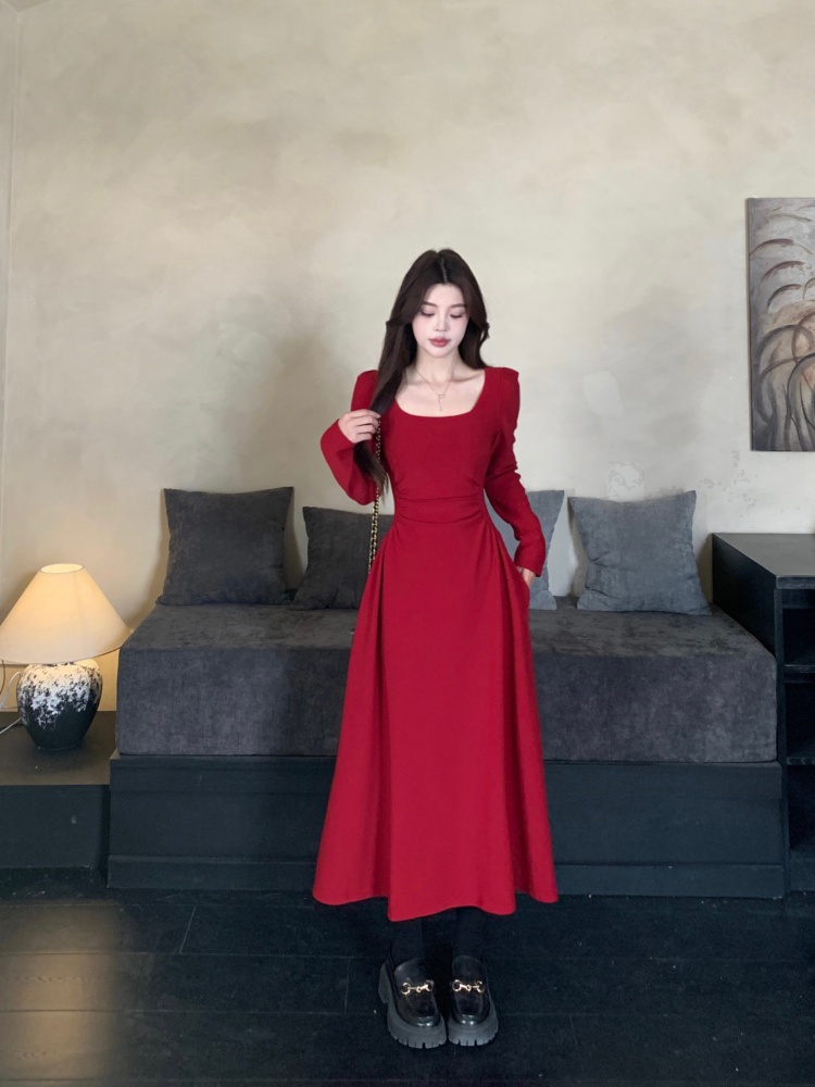 MY15613# 大码女装胖mm红色长袖连衣裙法式订婚礼服敬酒服平时可穿裙子女裝貨源服裝批發