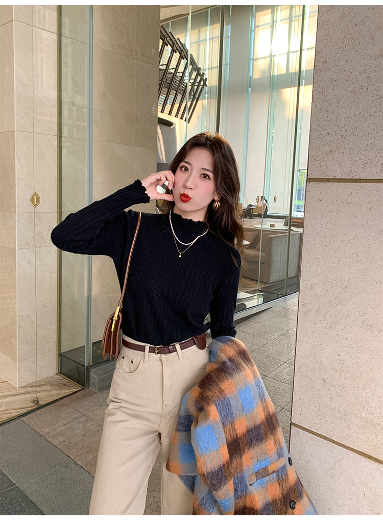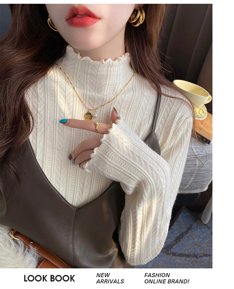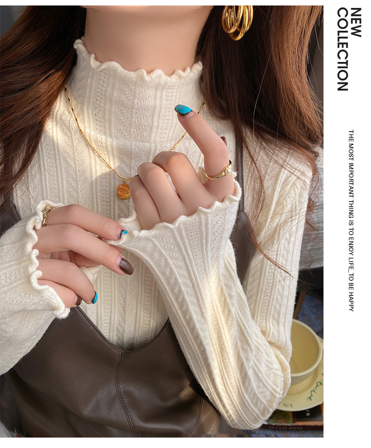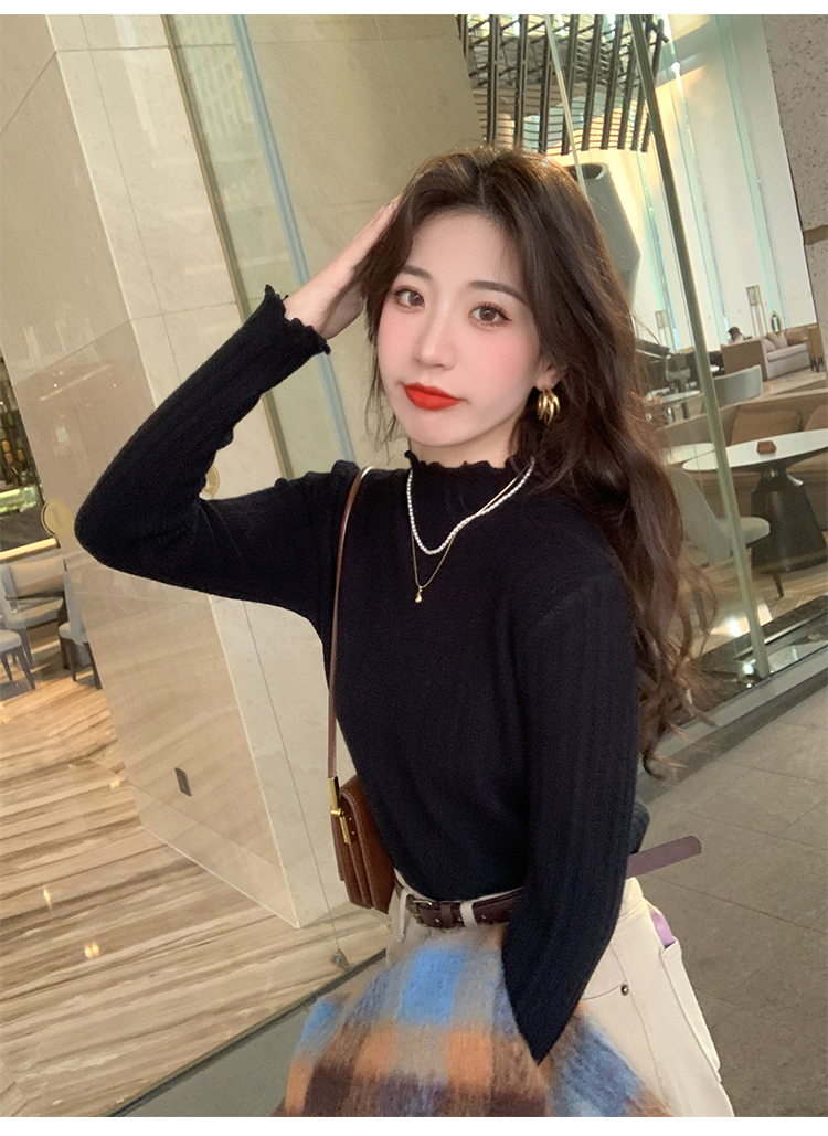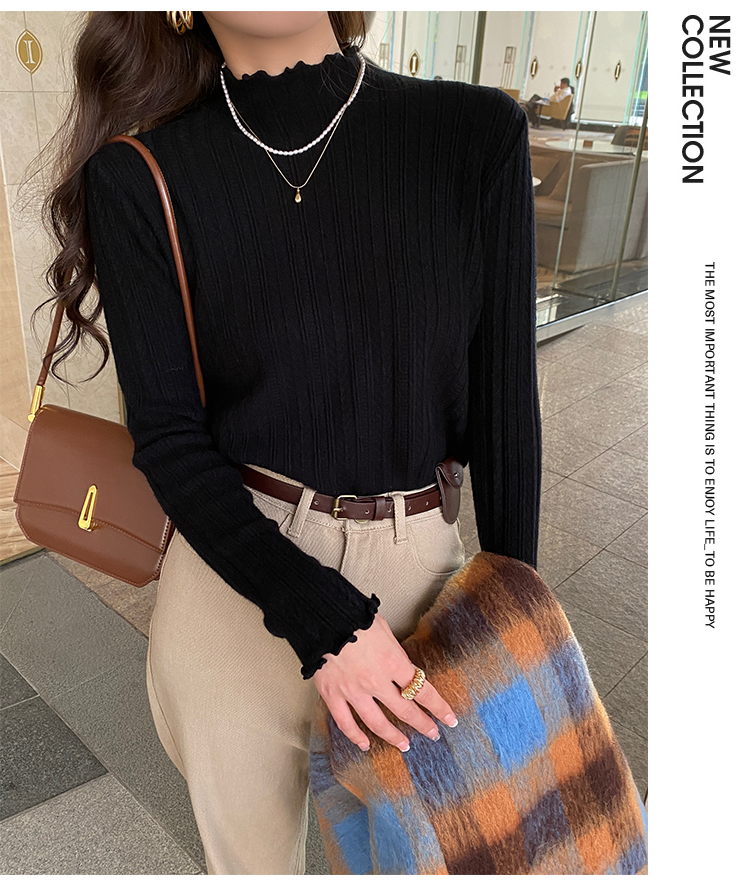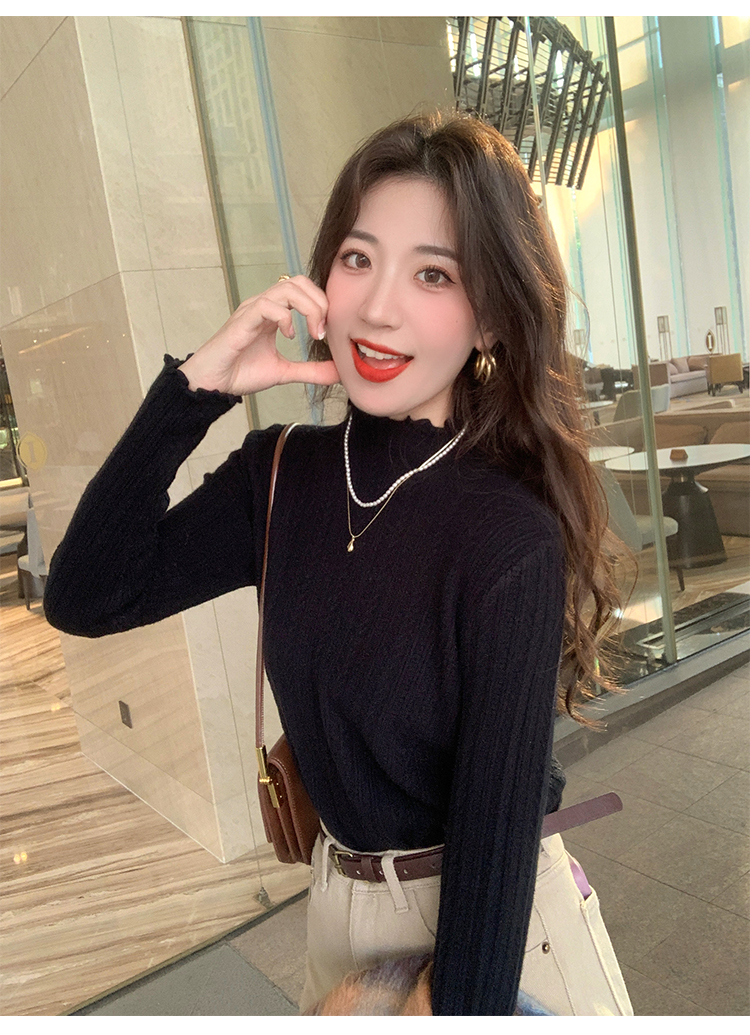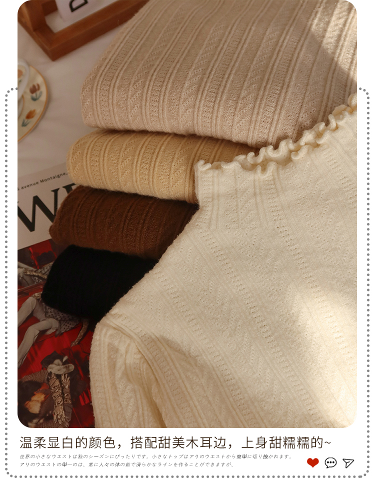 MY15631# 白色打底衫新款秋冬内搭高级感半高领毛衣木耳边针织衫上衣女裝貨源服裝批發
