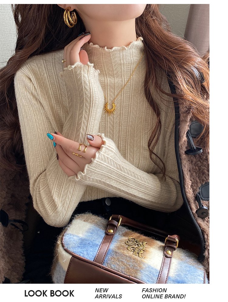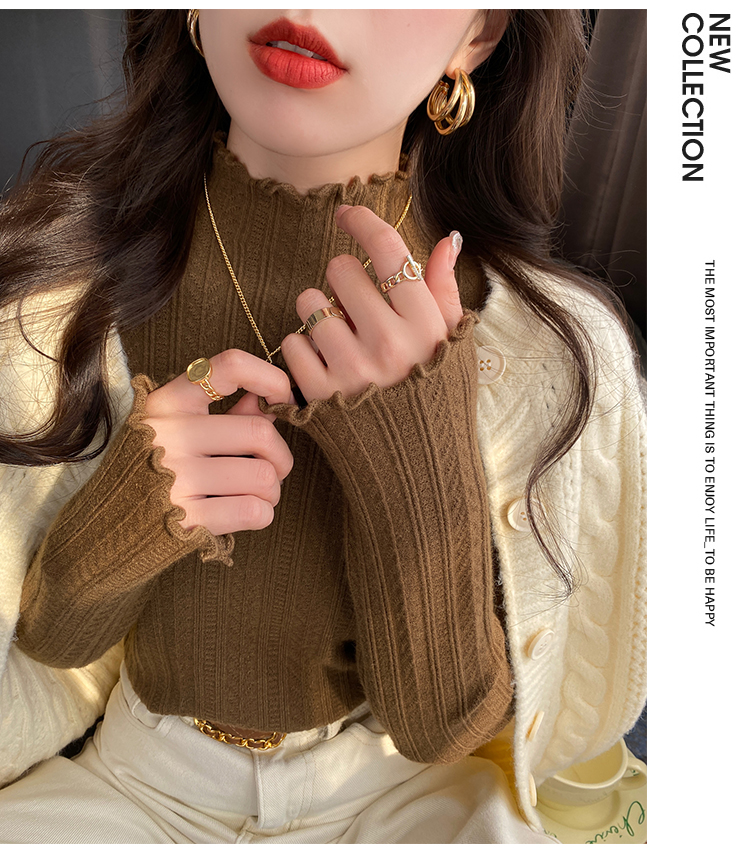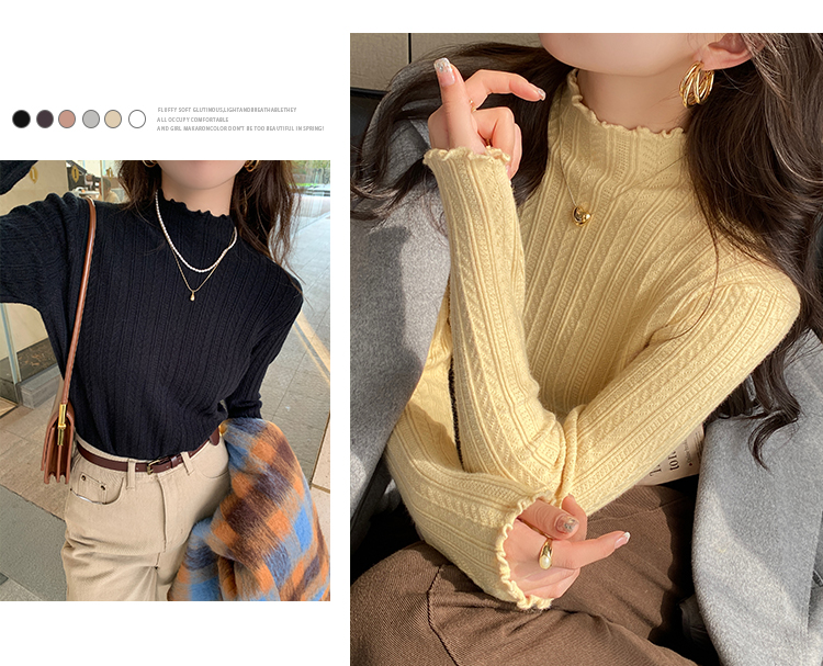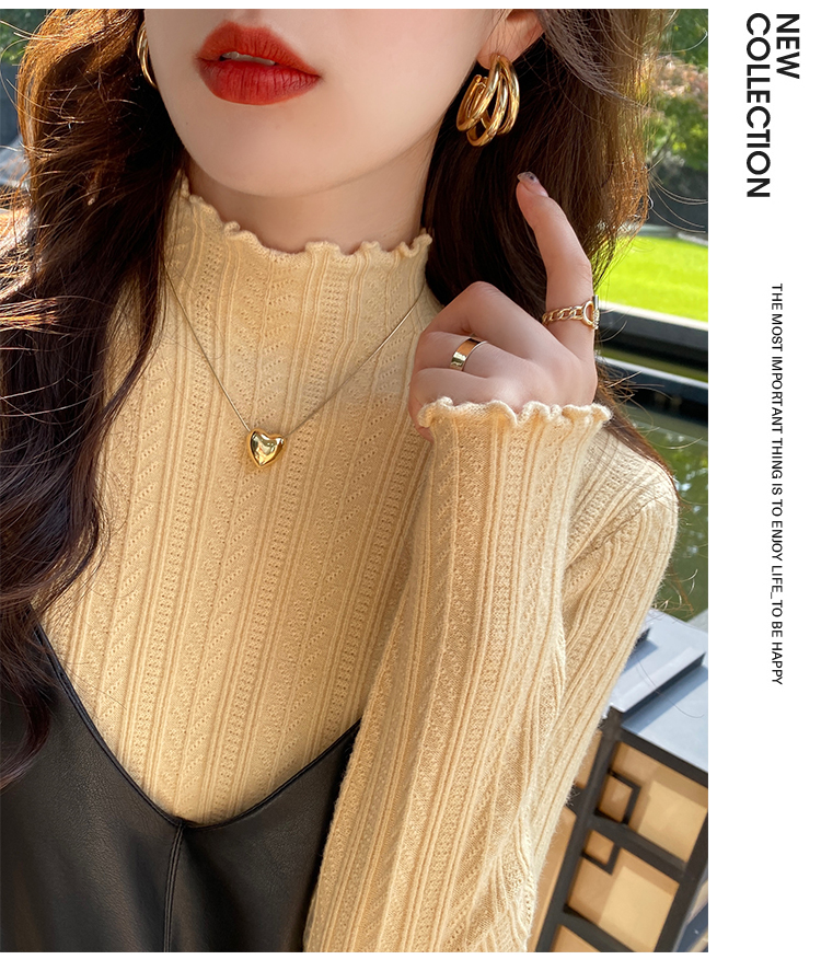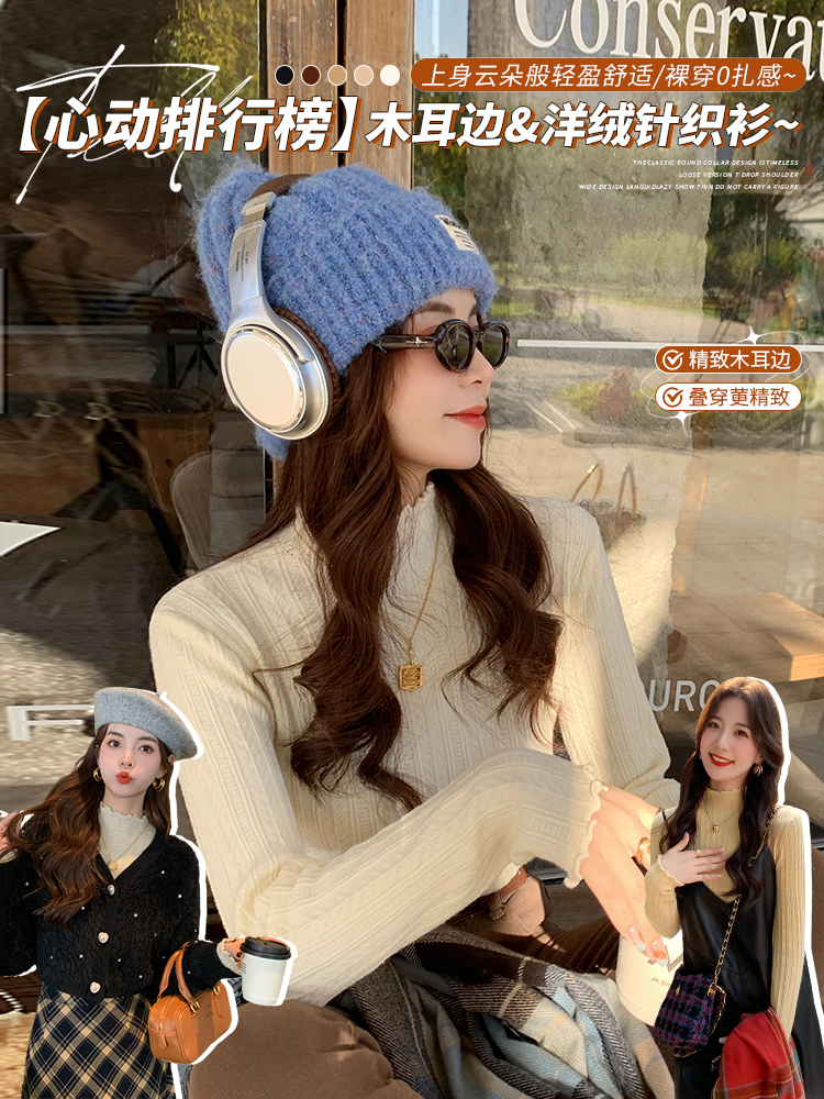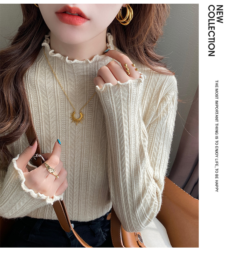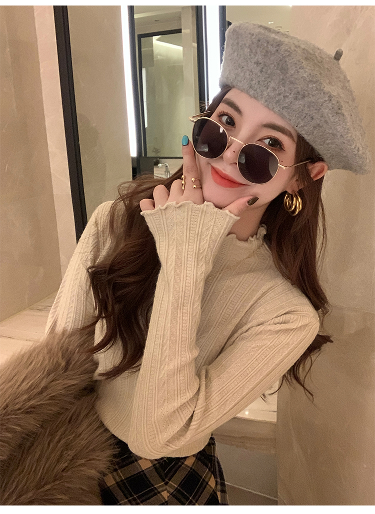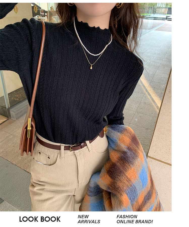 MY15631# 白色打底衫新款秋冬内搭高级感半高领毛衣木耳边针织衫上衣女裝貨源服裝批發