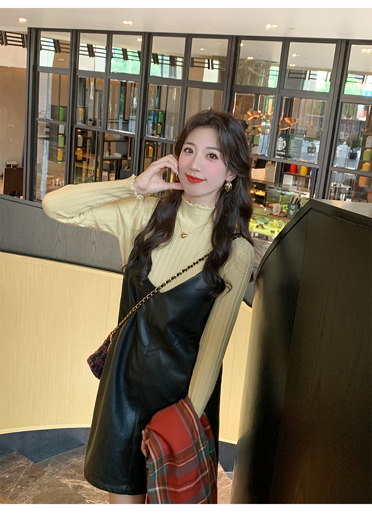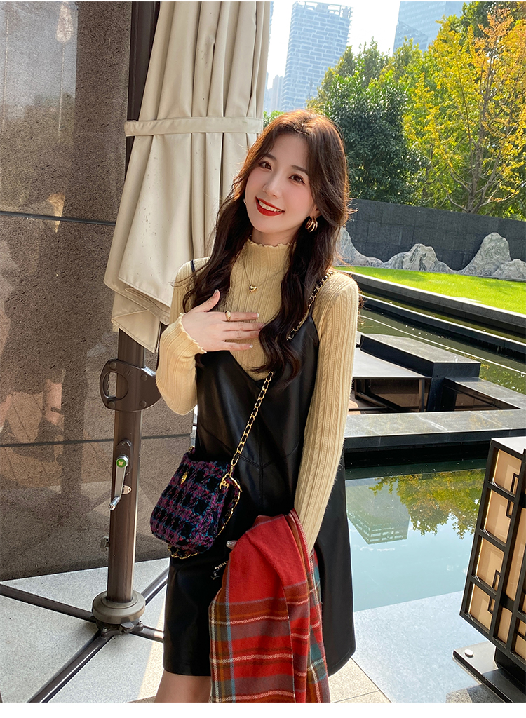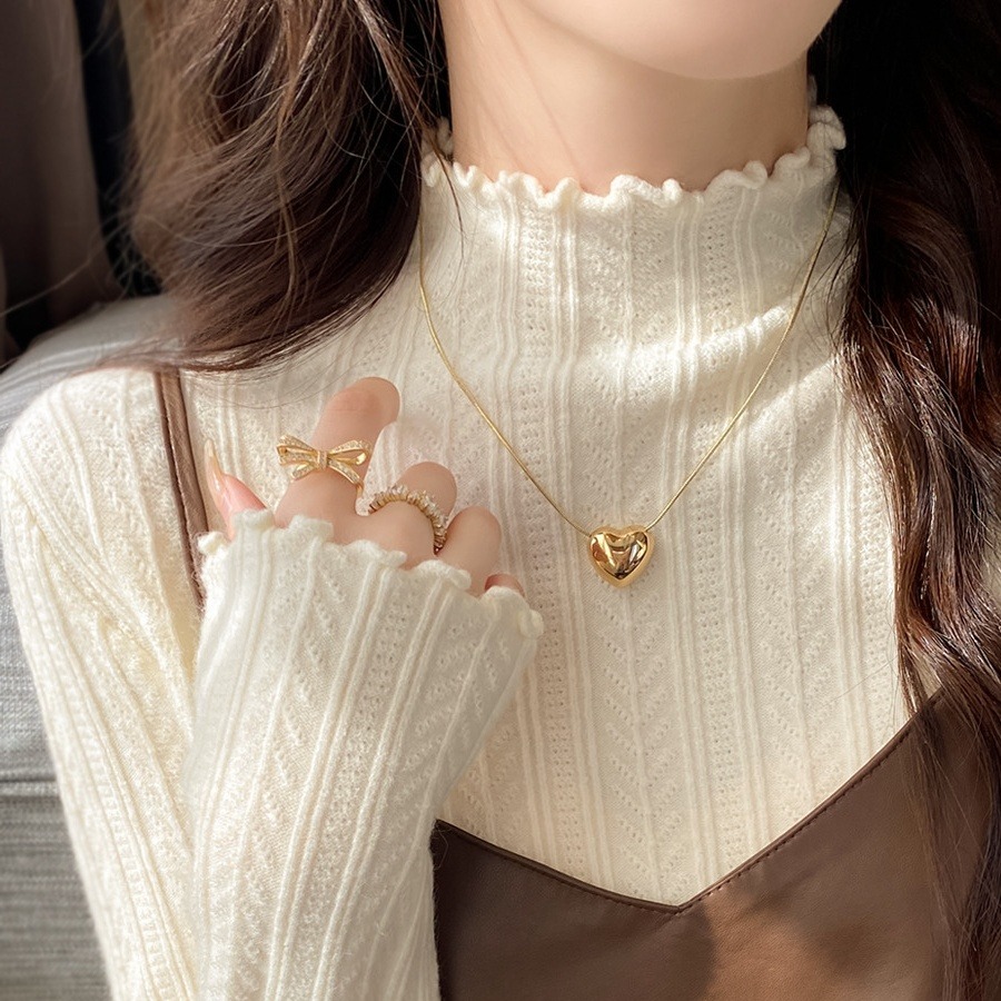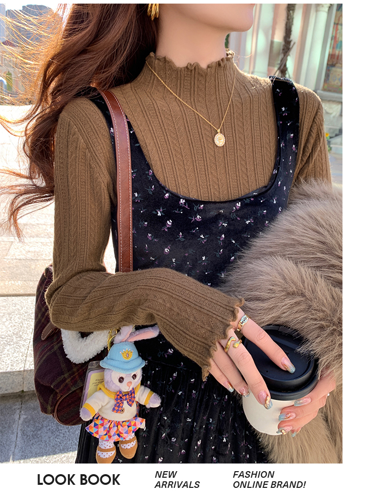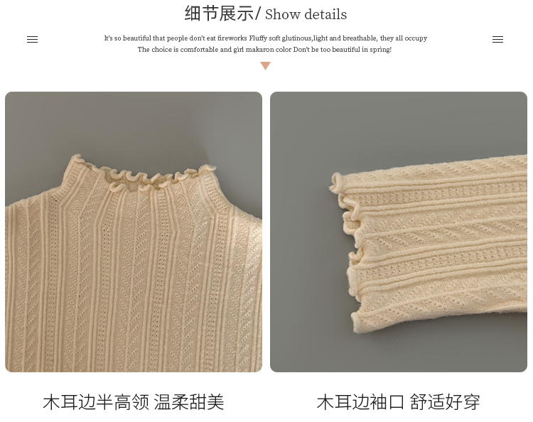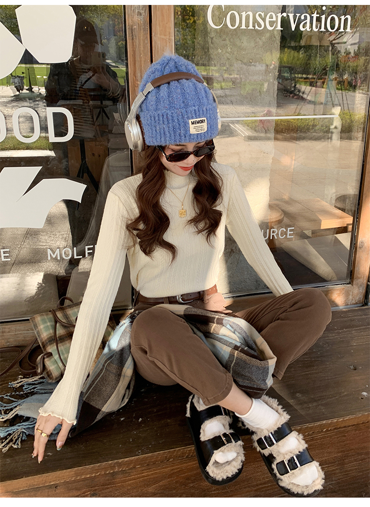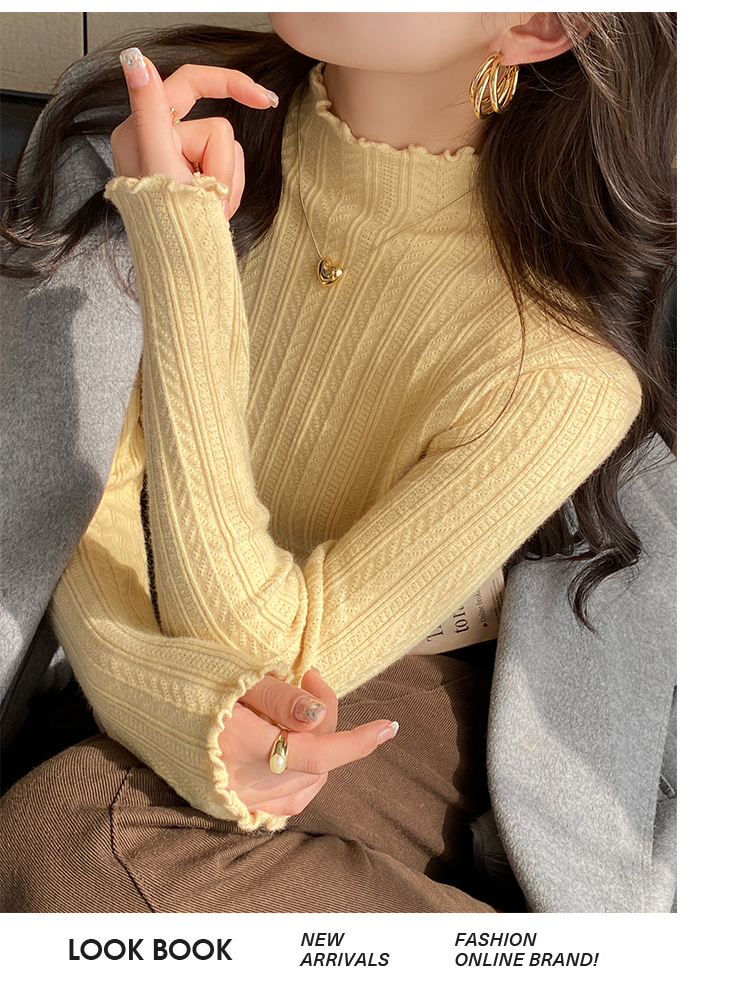 MY15631# 白色打底衫新款秋冬内搭高级感半高领毛衣木耳边针织衫上衣女裝貨源服裝批發