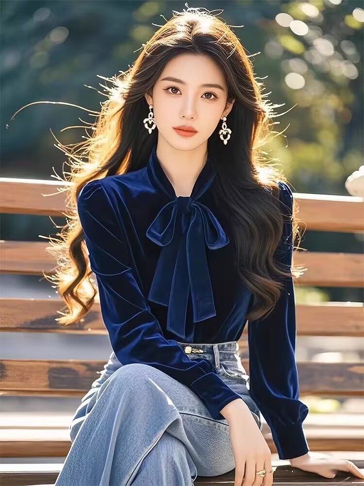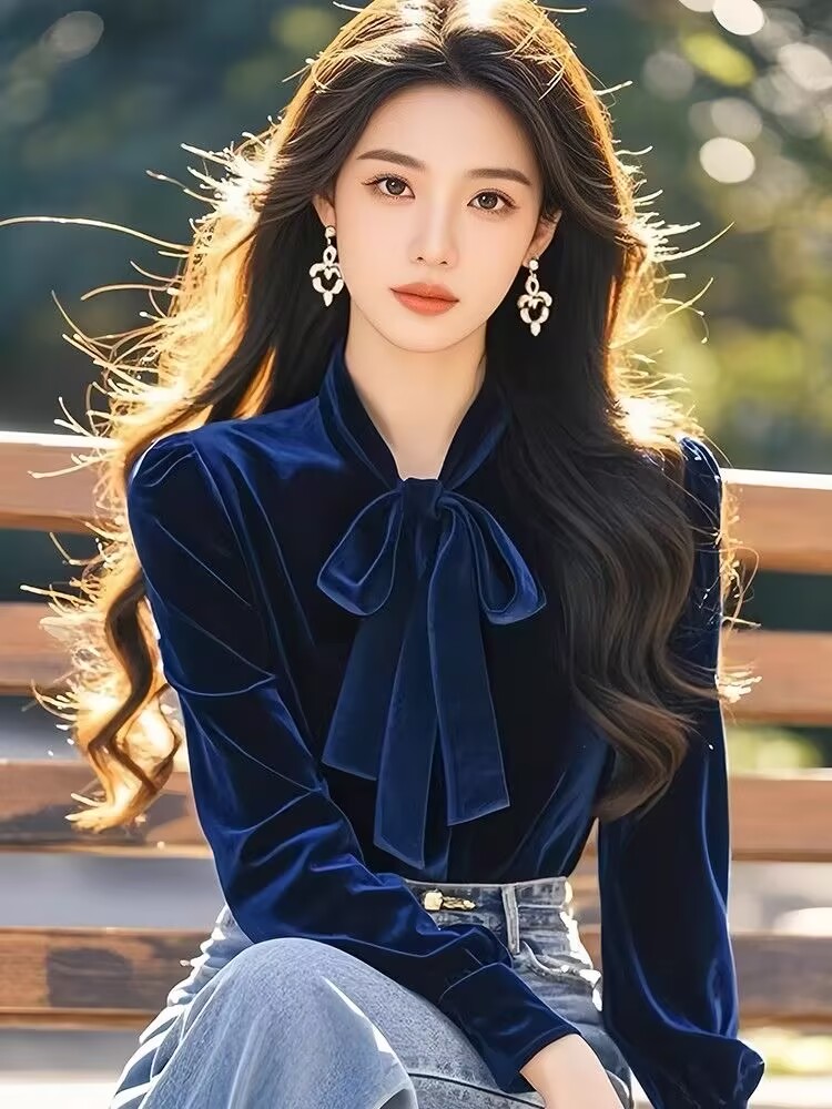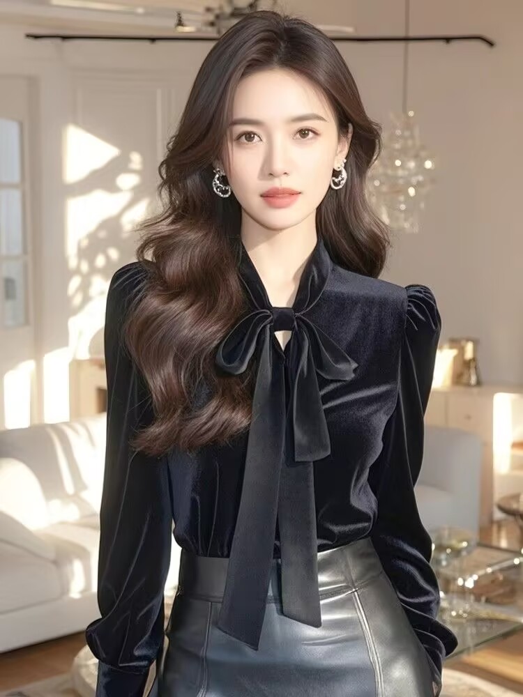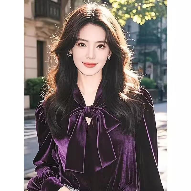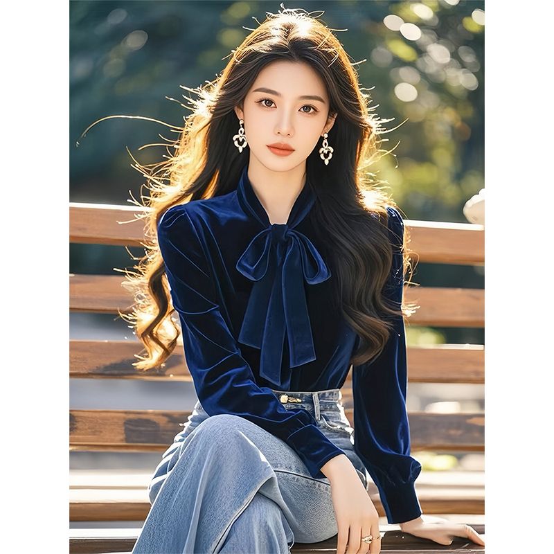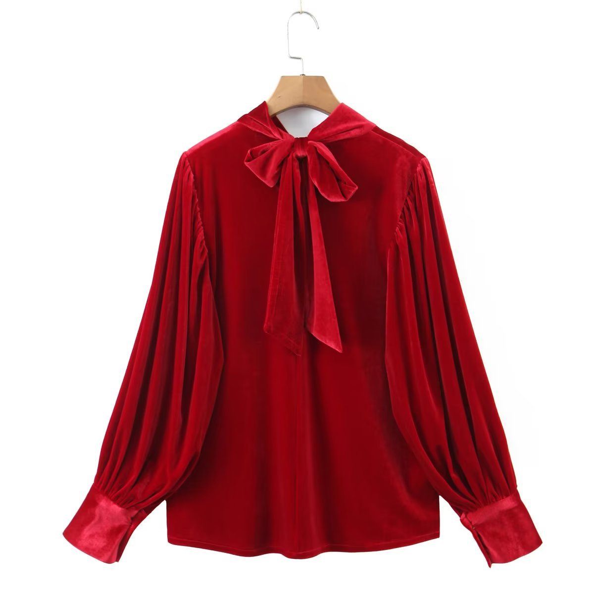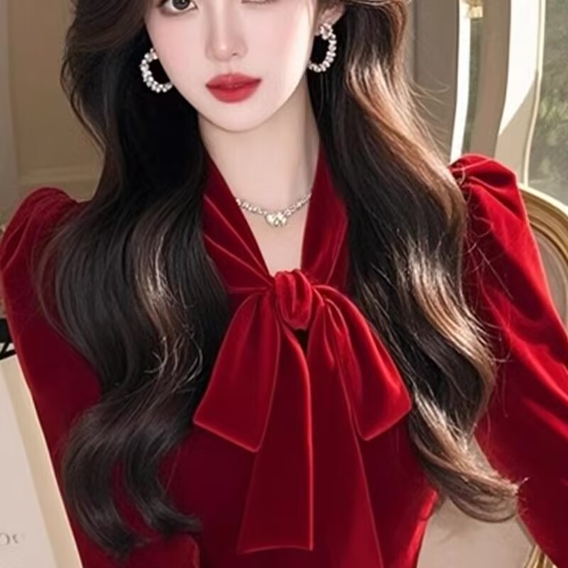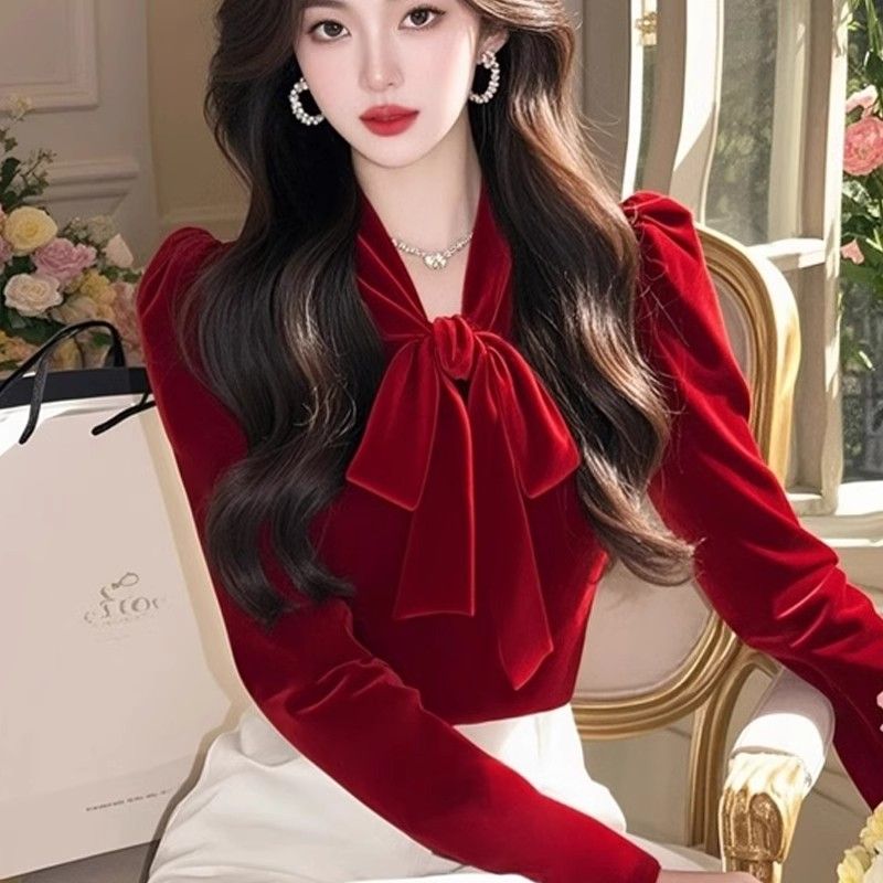 MY15652# 安可拉红丝绒上衣女设计感小众蝴蝶结打底内搭小香风叠穿上衣女裝貨源服裝批發