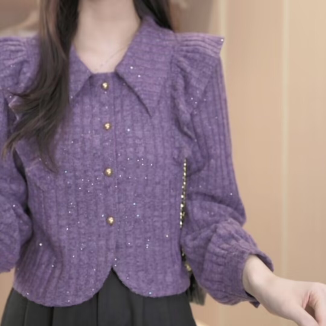 MY15654# 法式温柔时尚荷叶边polo领长袖衬衫新款小香风百搭上衣女裝貨源服裝批發