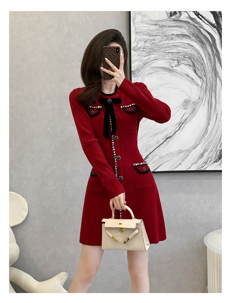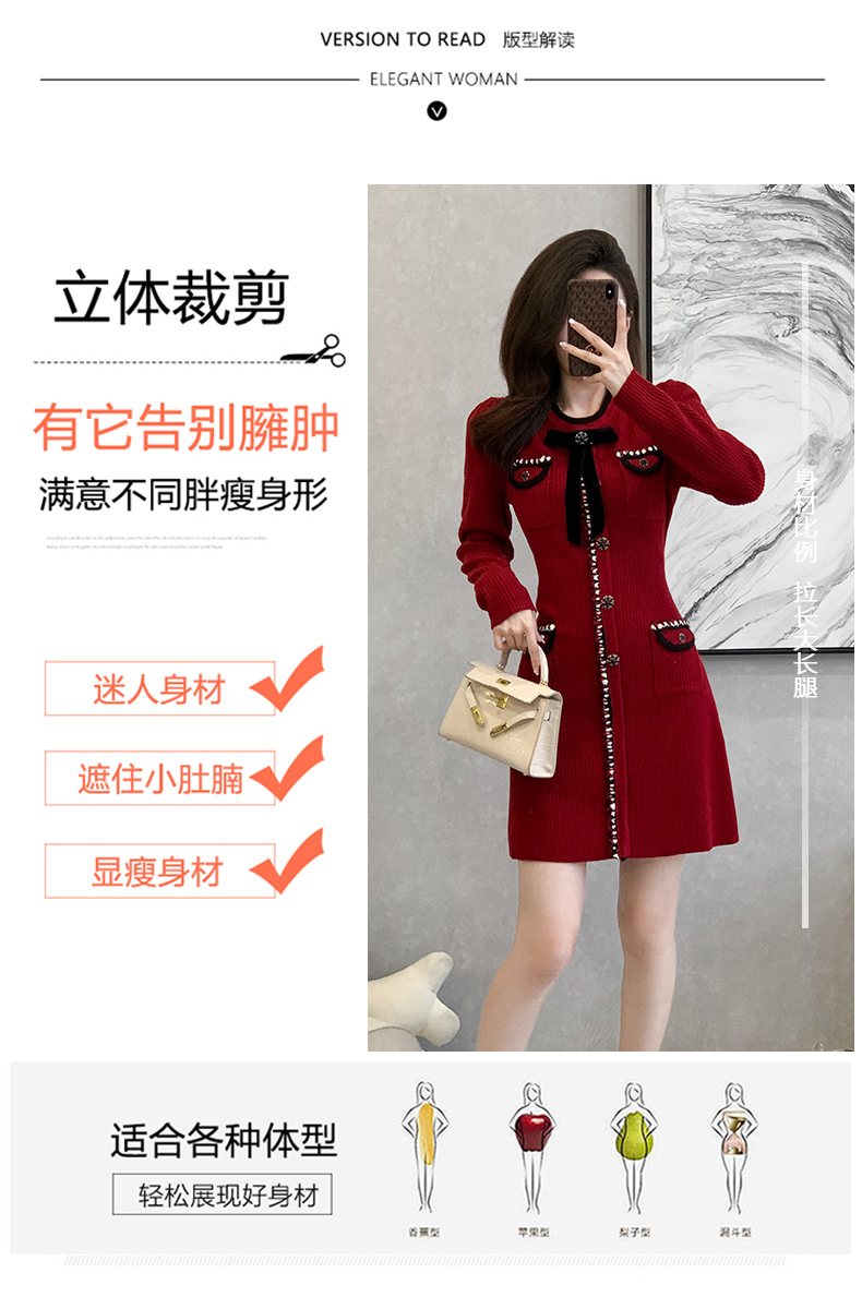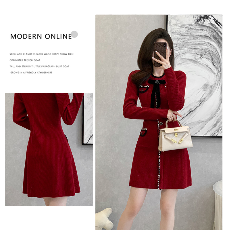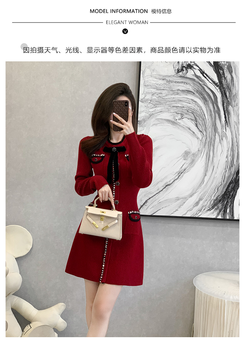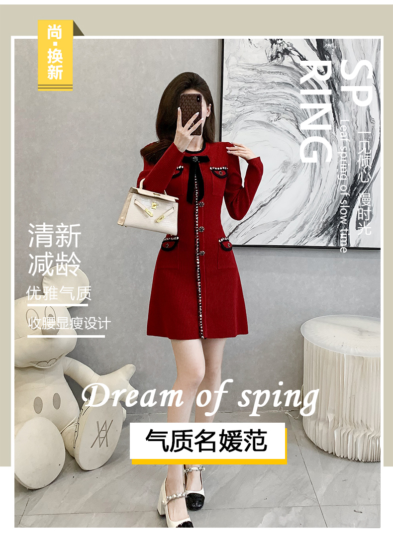 MY15656# 新款法式名媛赫本风高级感气质收腰显瘦黑色针织连衣裙女女裝貨源服裝批發