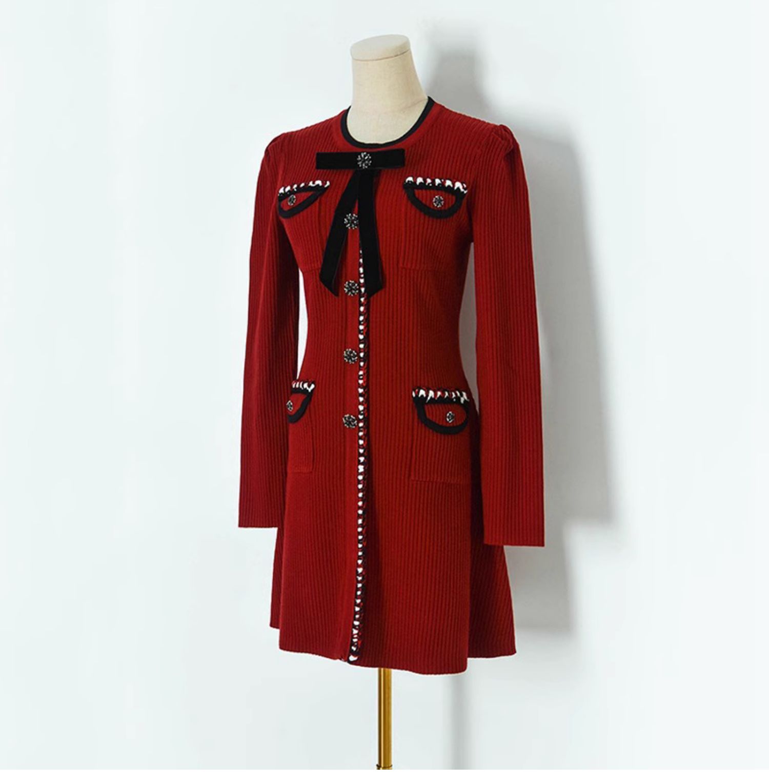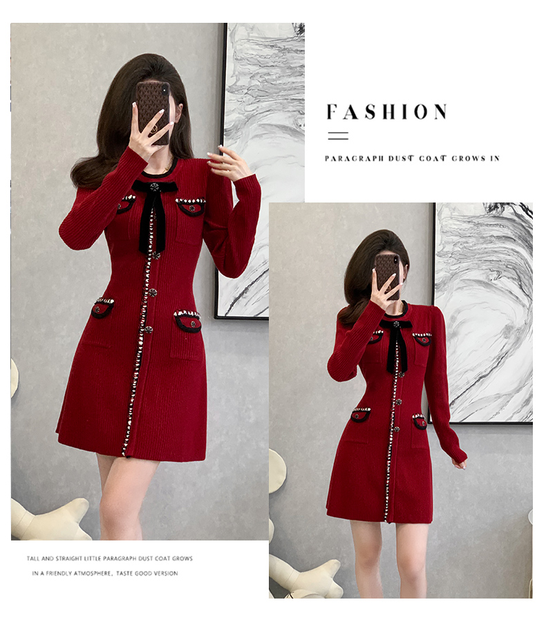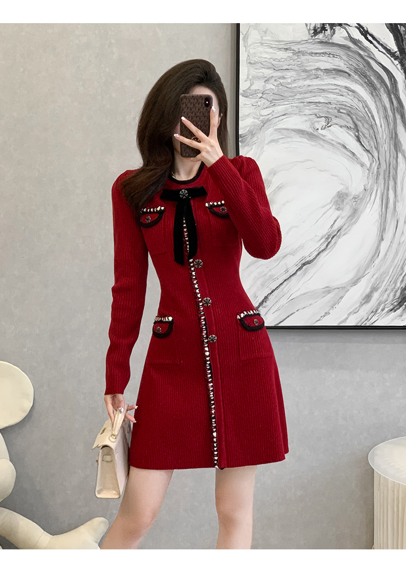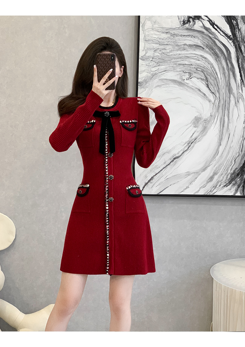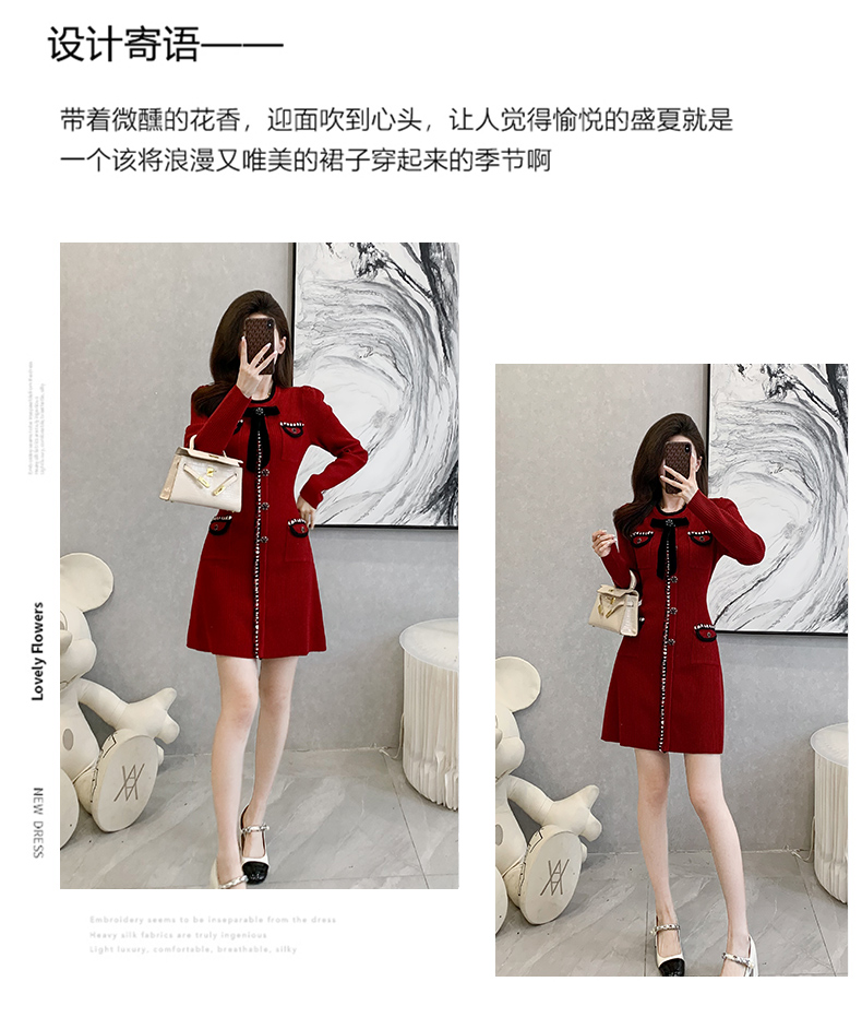 MY15656# 新款法式名媛赫本风高级感气质收腰显瘦黑色针织连衣裙女女裝貨源服裝批發