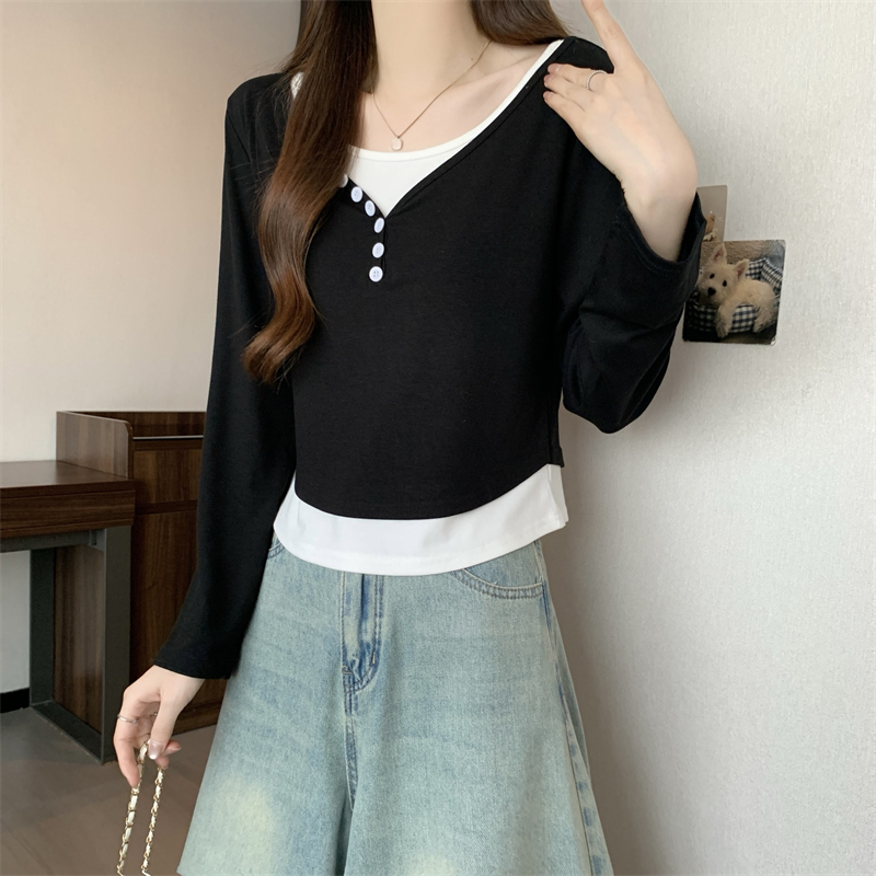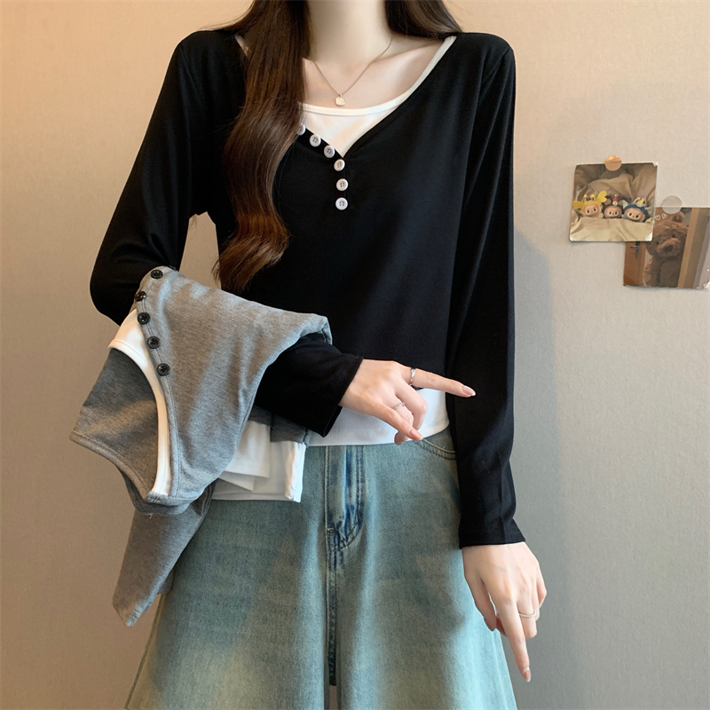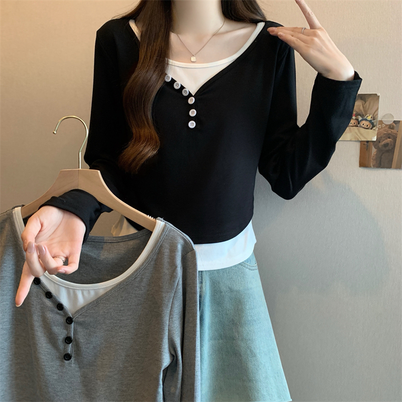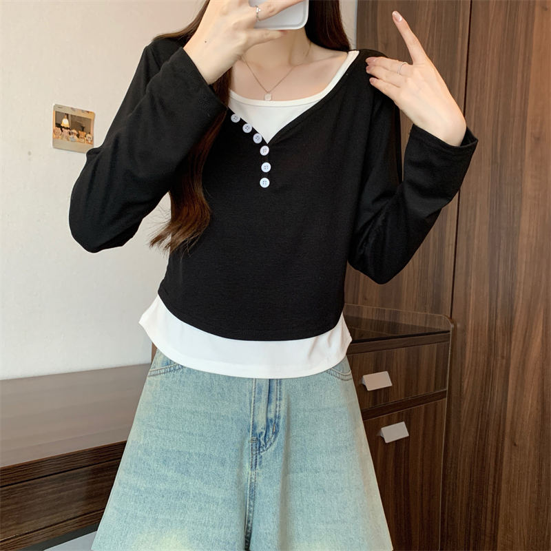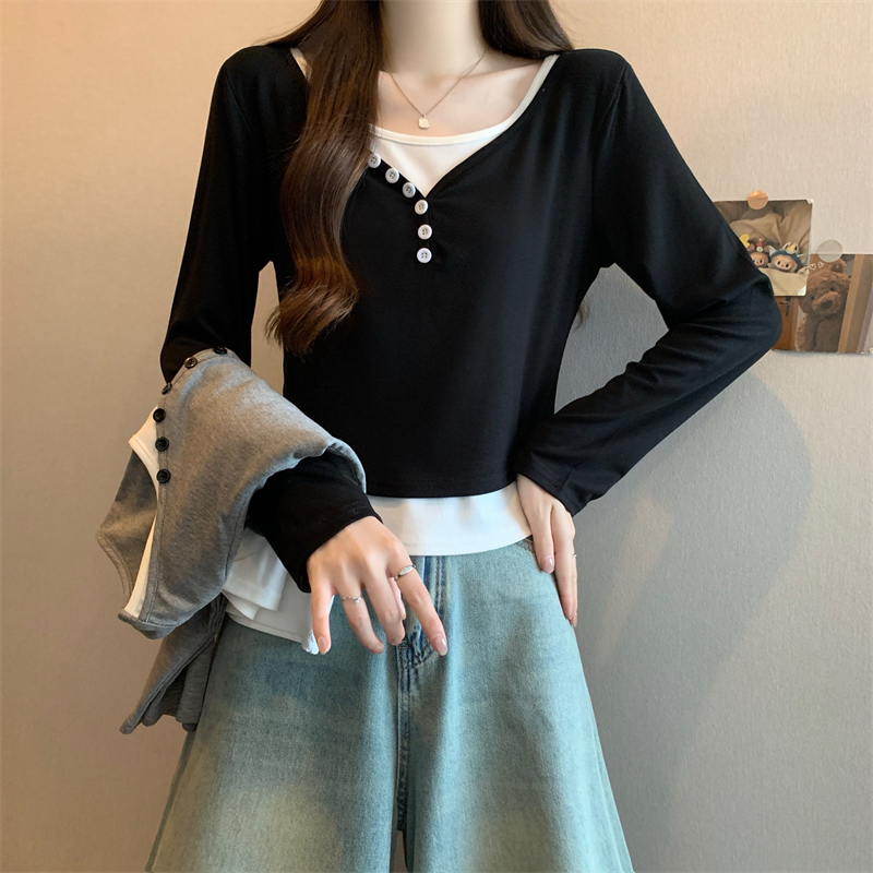 MY15665# 炸街抖音质量原版辅料纯棉长袖原版t恤女潮上衣大码女装女裝貨源服裝批發