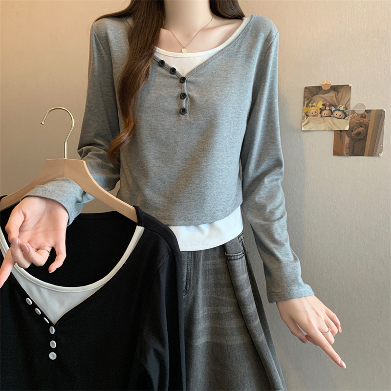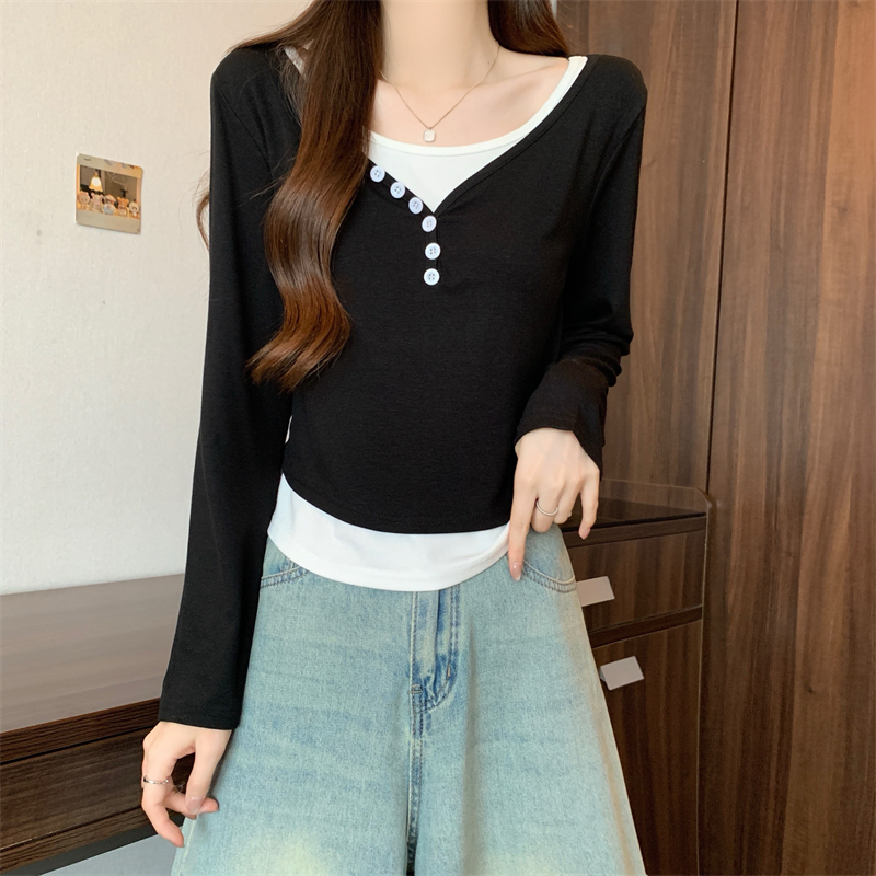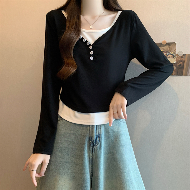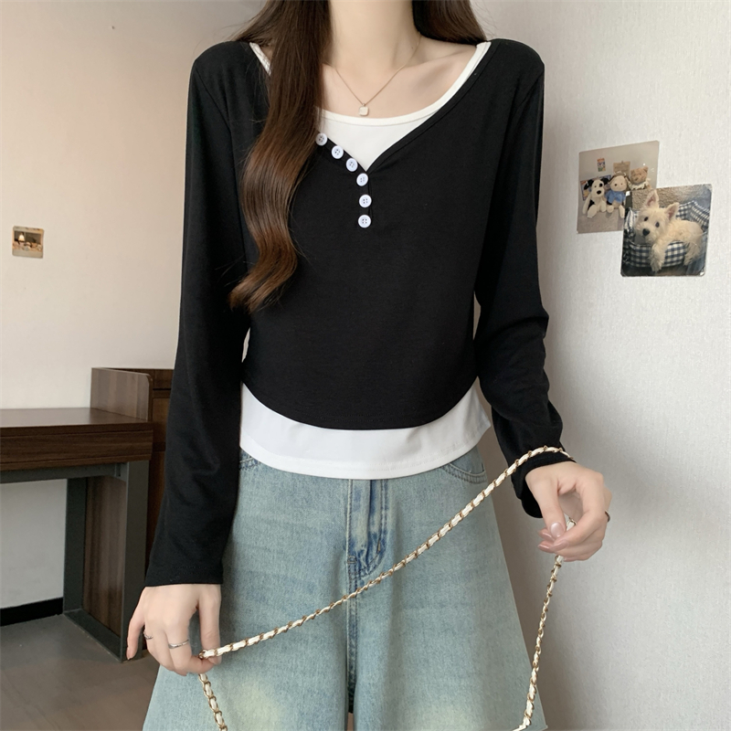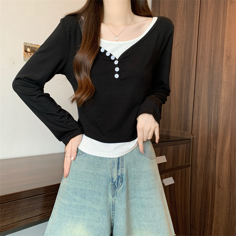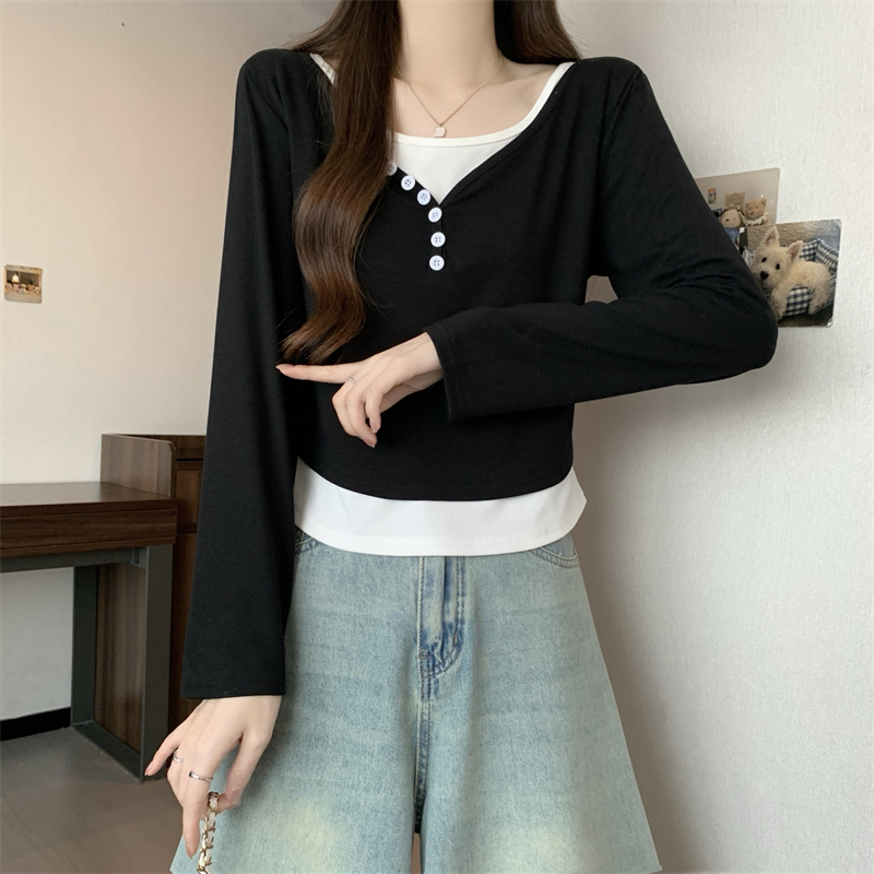 MY15665# 炸街抖音质量原版辅料纯棉长袖原版t恤女潮上衣大码女装女裝貨源服裝批發