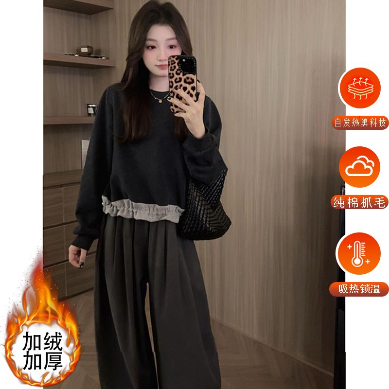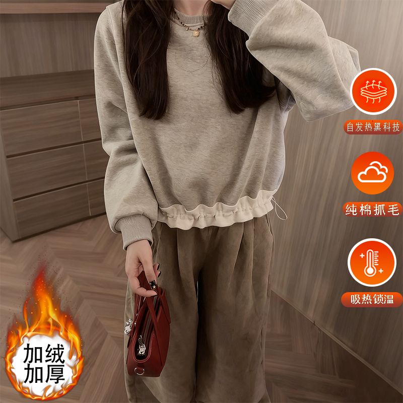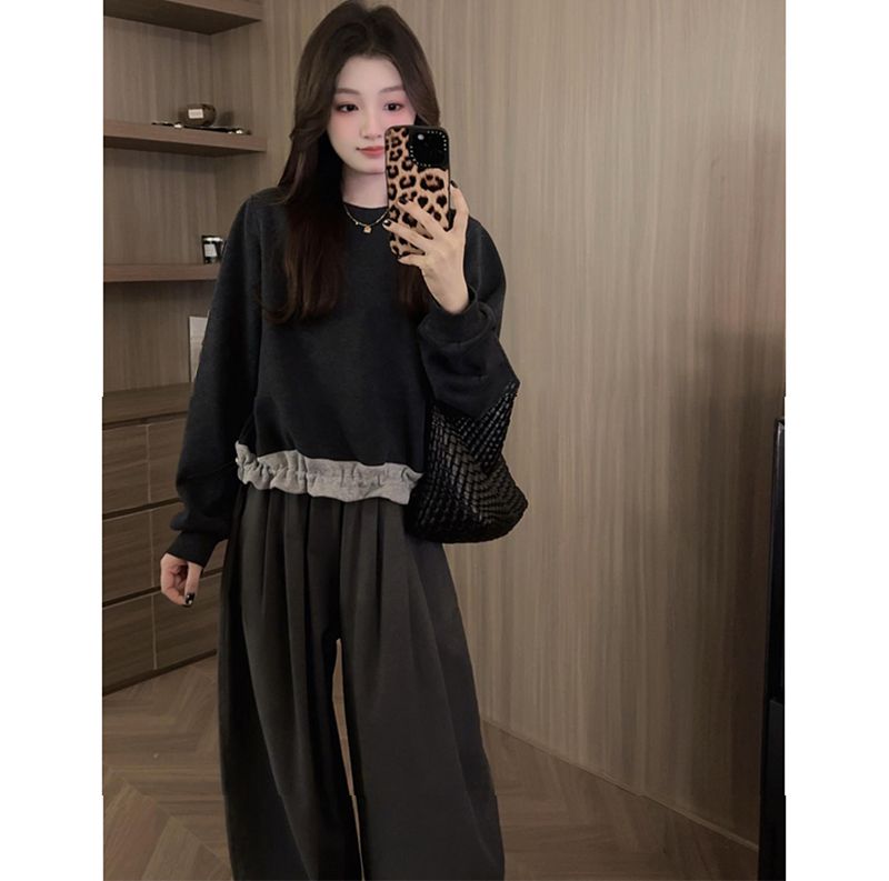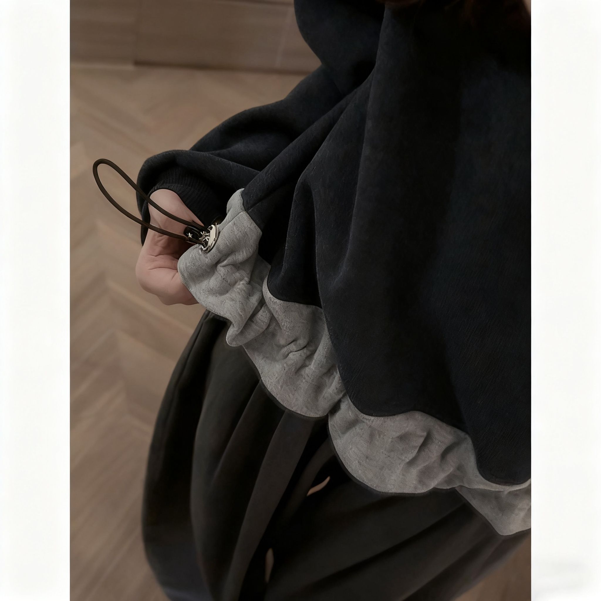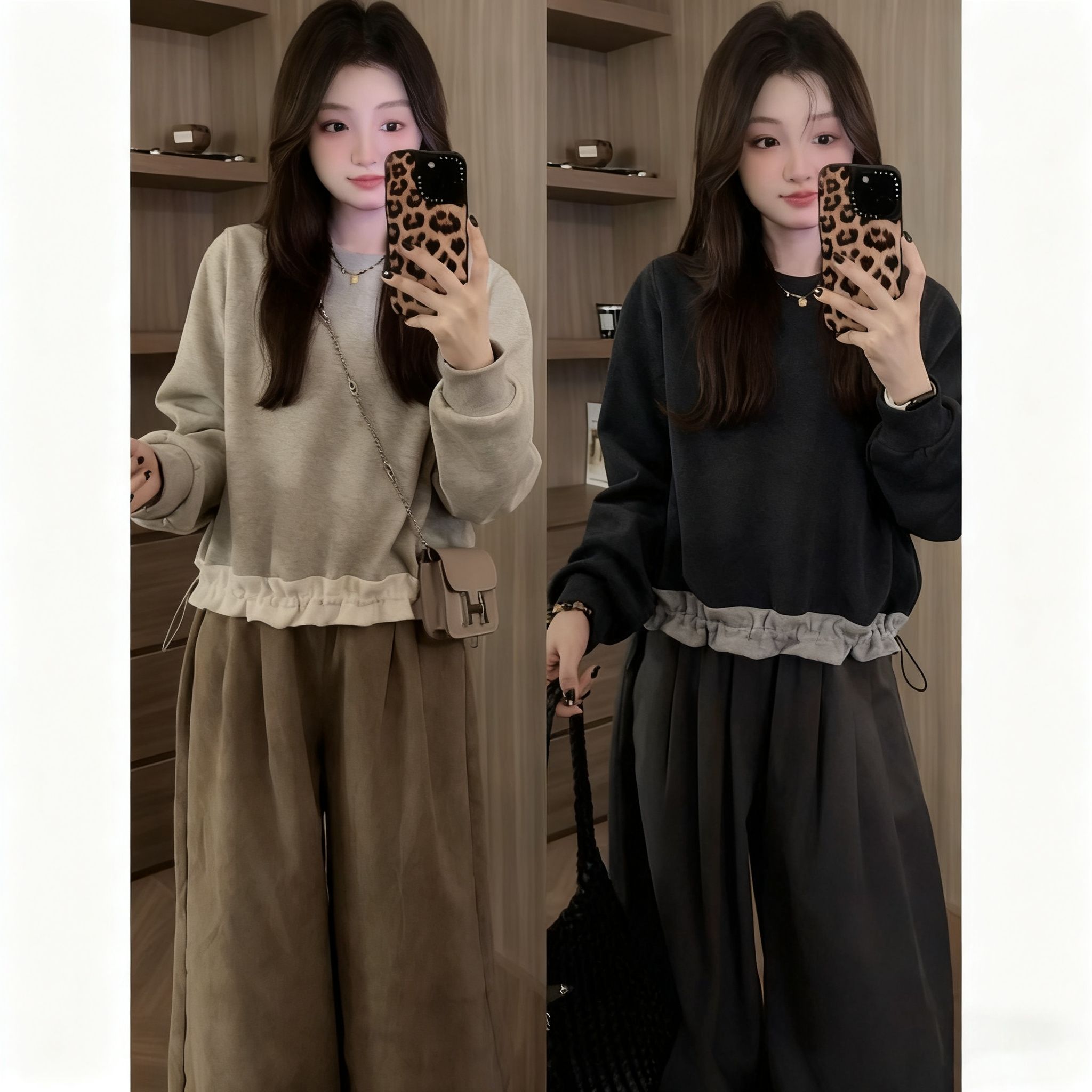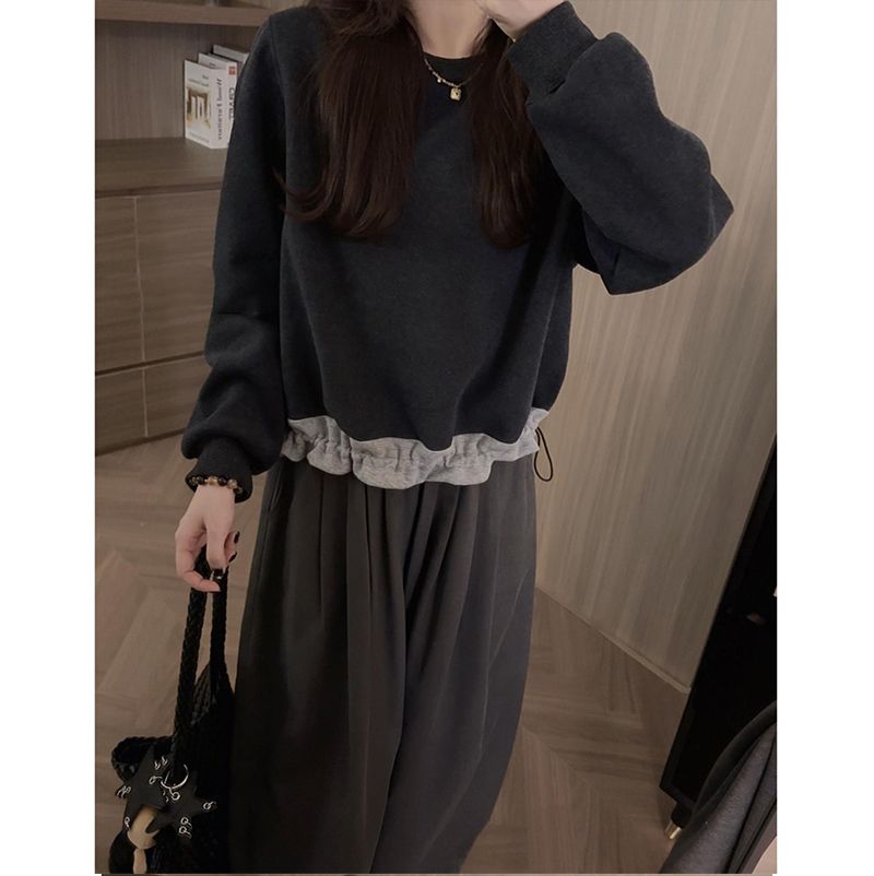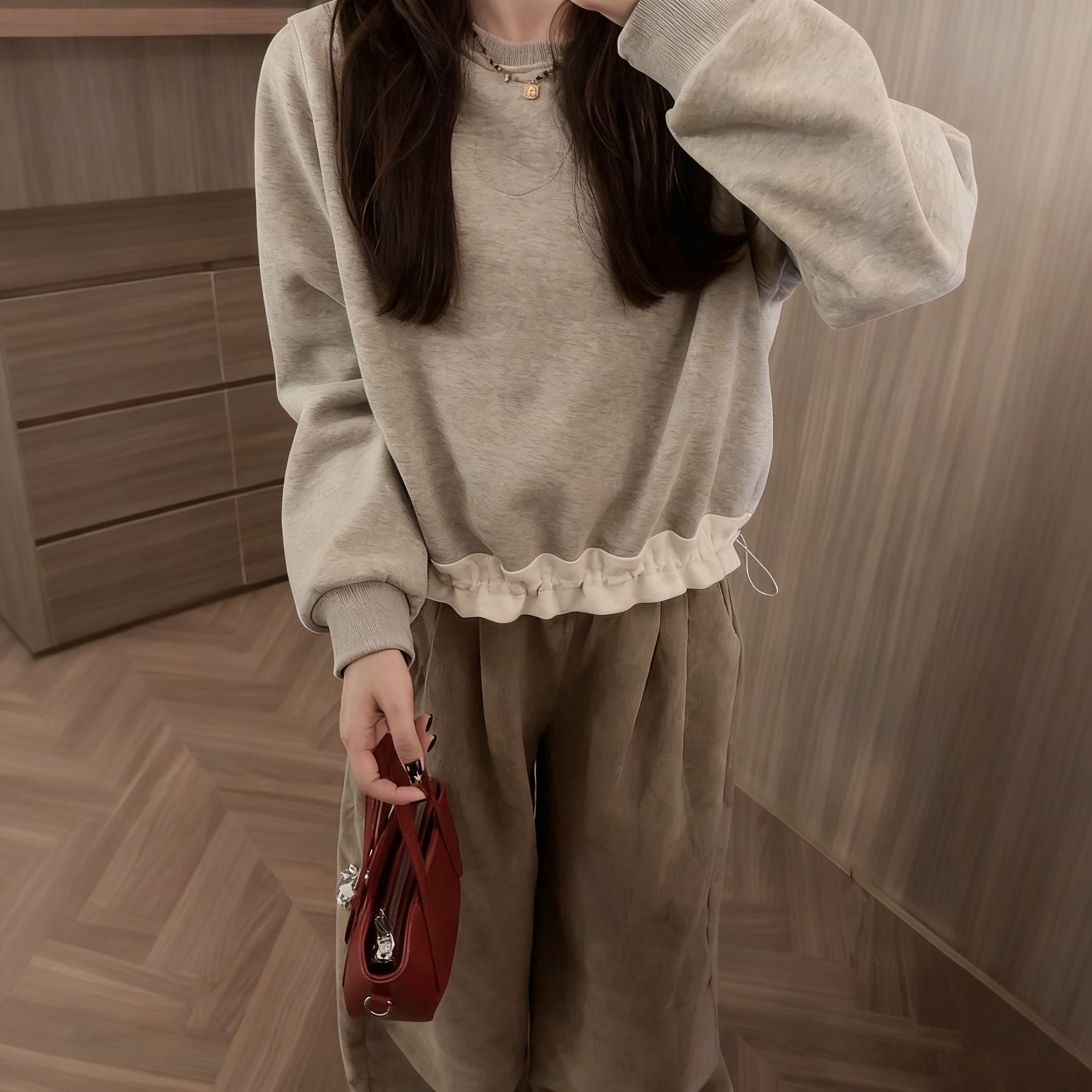 MY15670# 纯棉华棉秋冬韩系拼接设计下摆抽绳显瘦百搭加厚卫衣女女裝貨源服裝批發