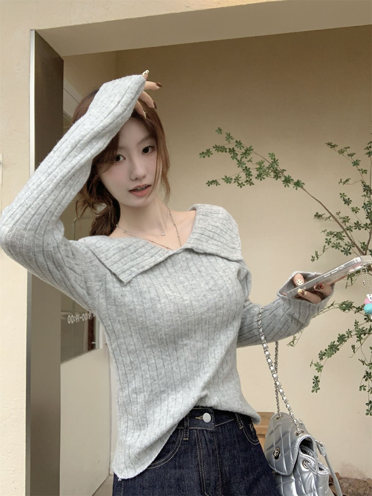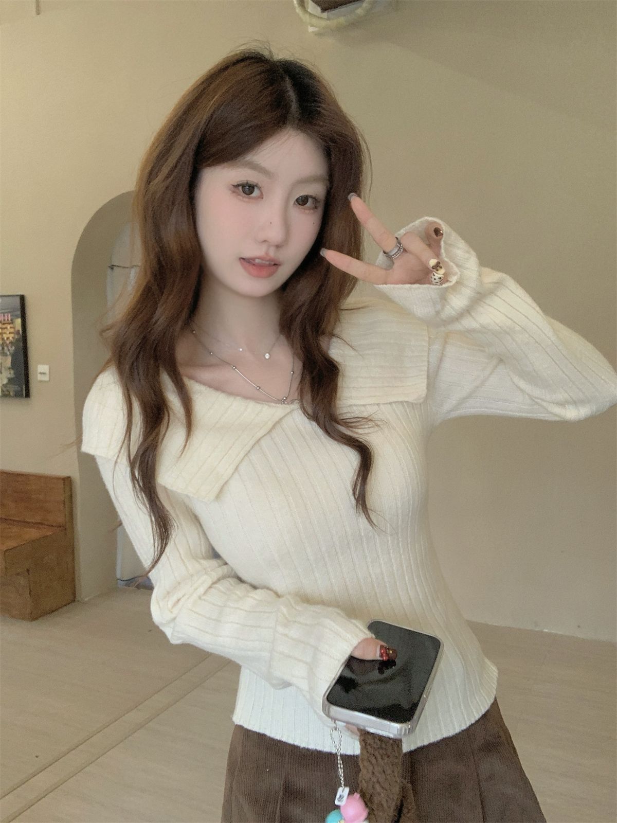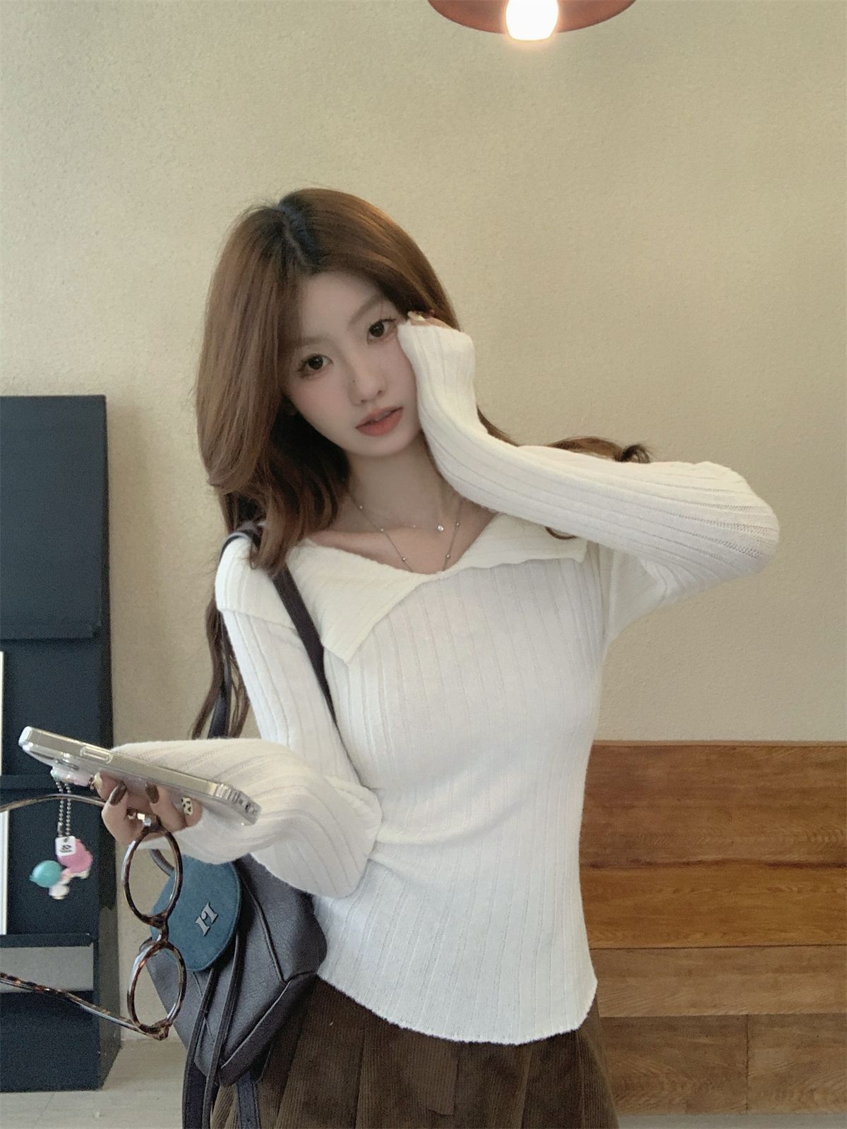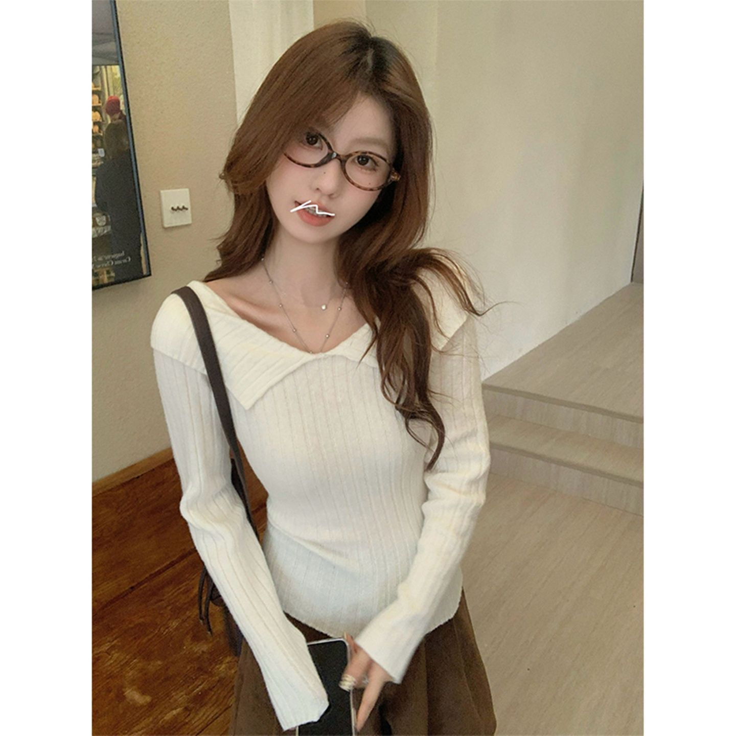 MY15673# 包芯纱 设计感翻领内搭针织打底毛衣女女裝貨源服裝批發