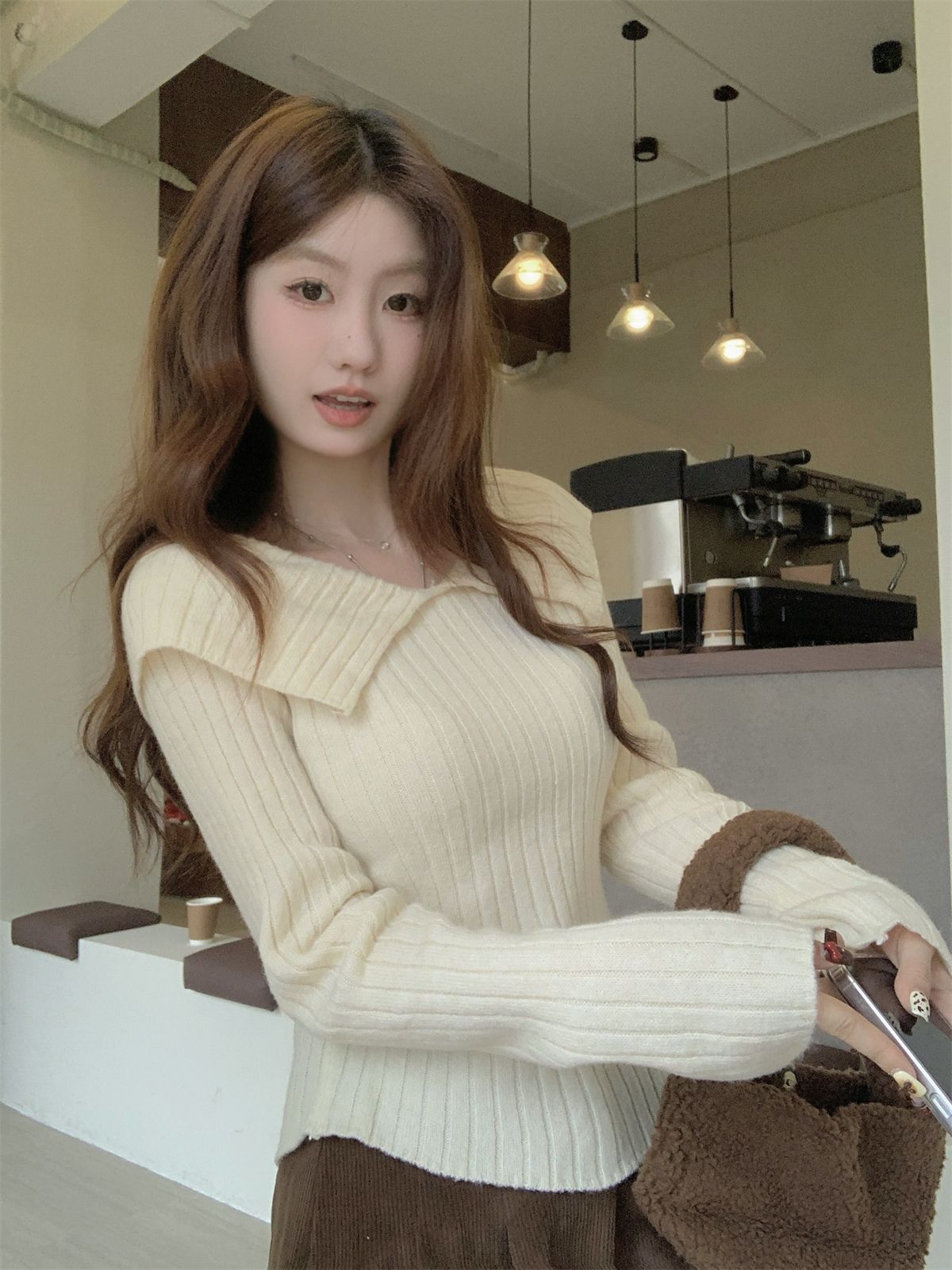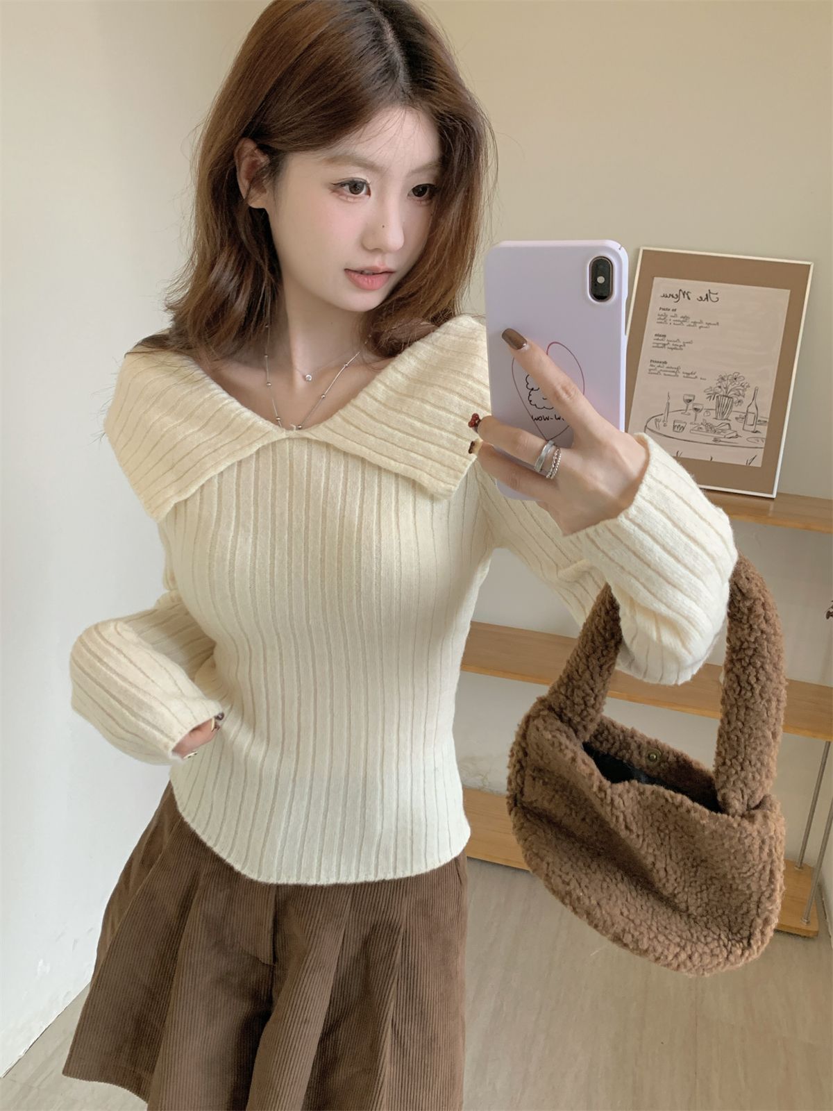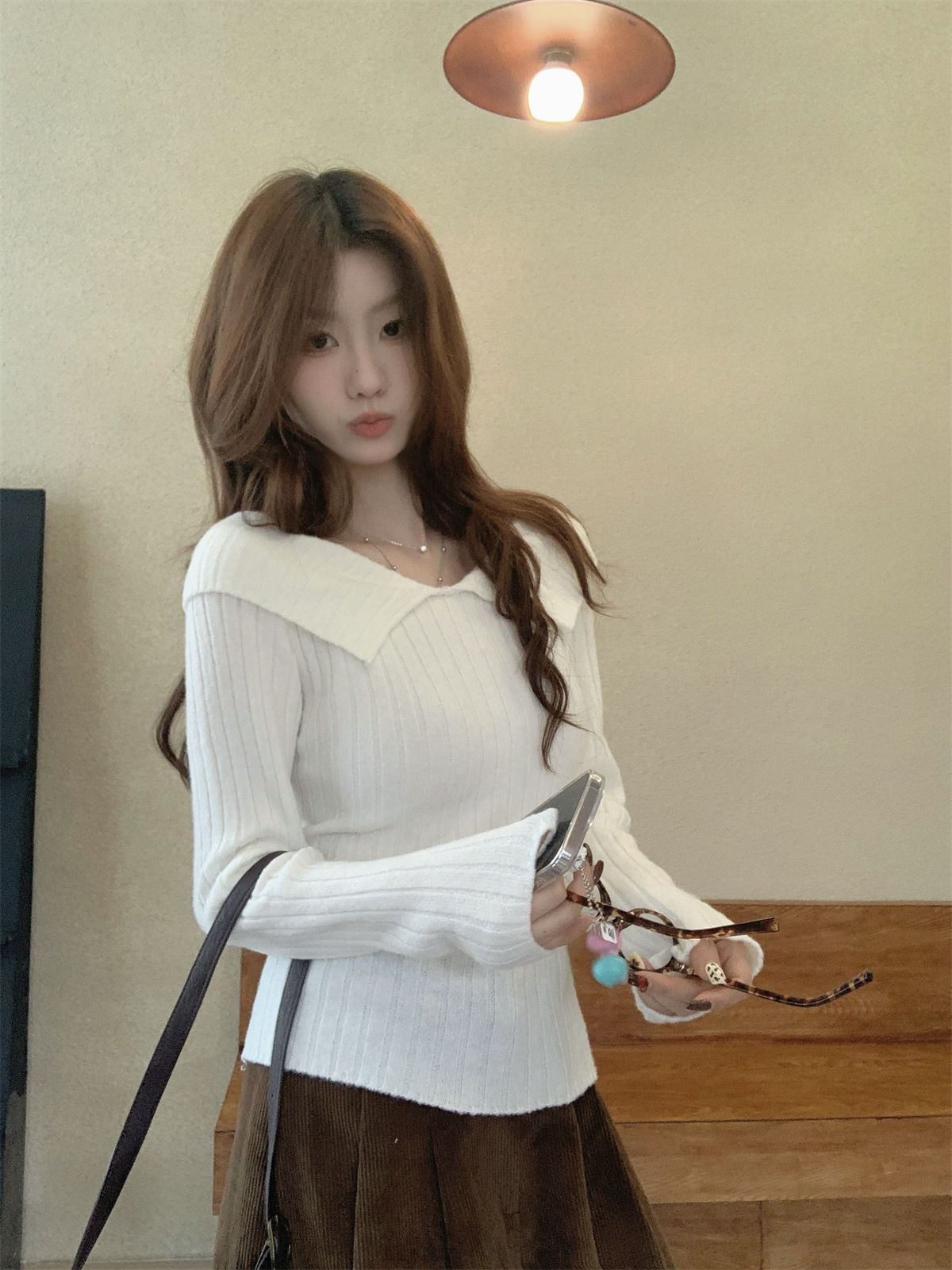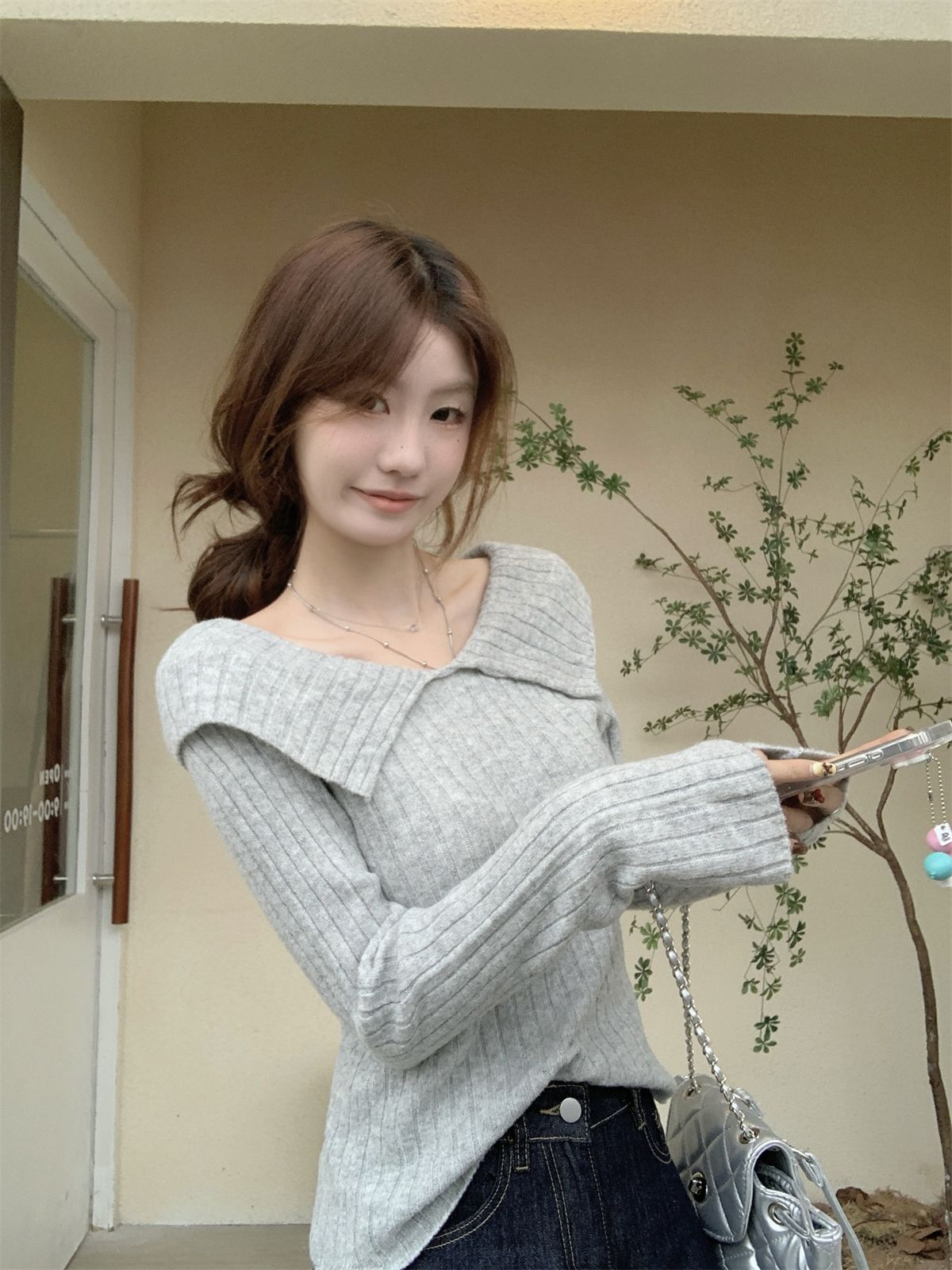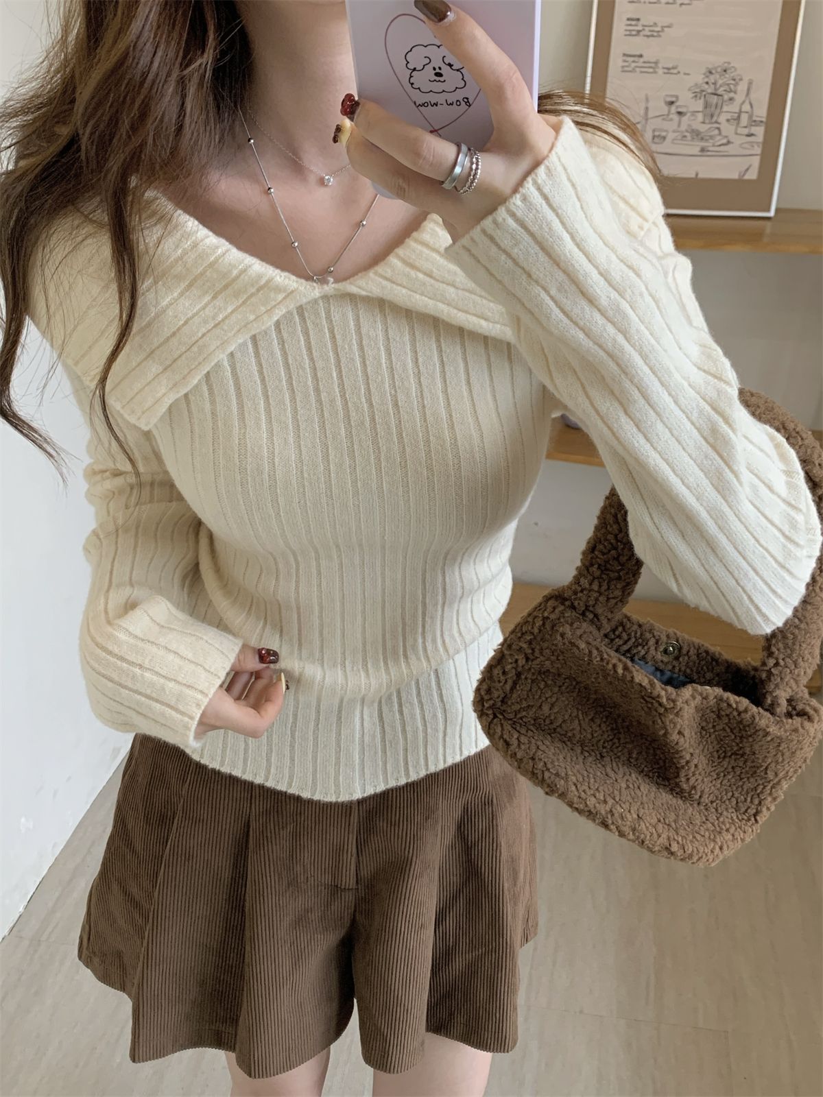 MY15673# 包芯纱 设计感翻领内搭针织打底毛衣女女裝貨源服裝批發