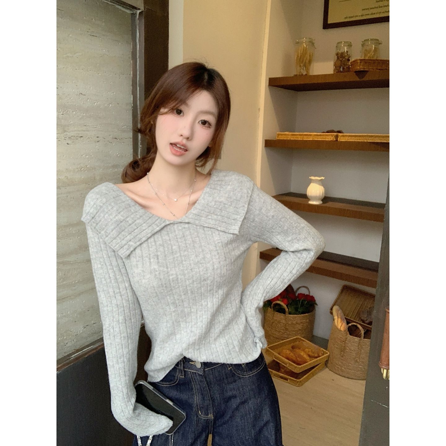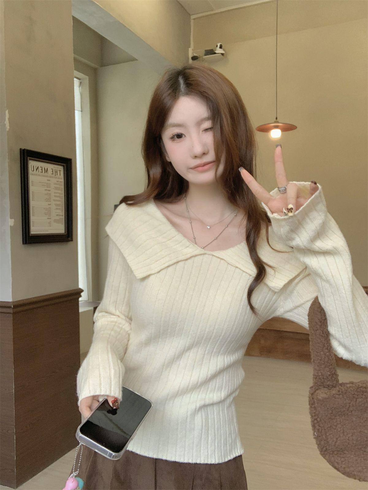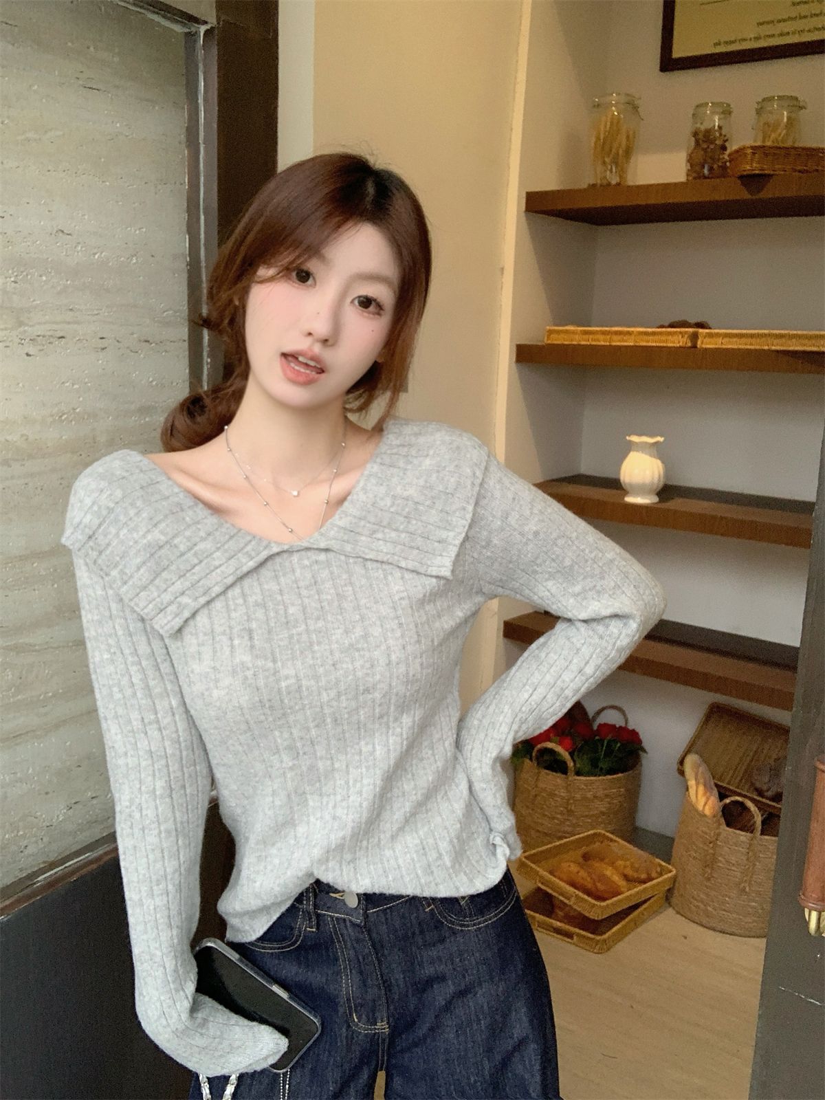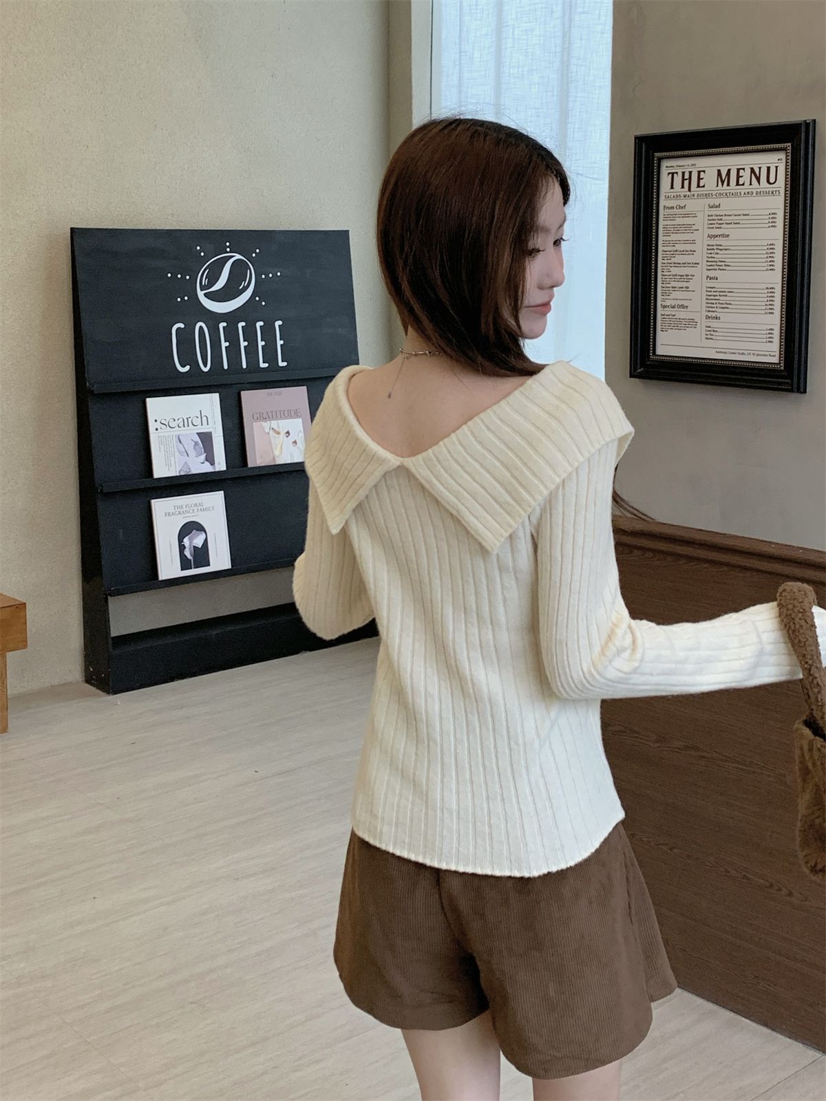 MY15673# 包芯纱 设计感翻领内搭针织打底毛衣女女裝貨源服裝批發
