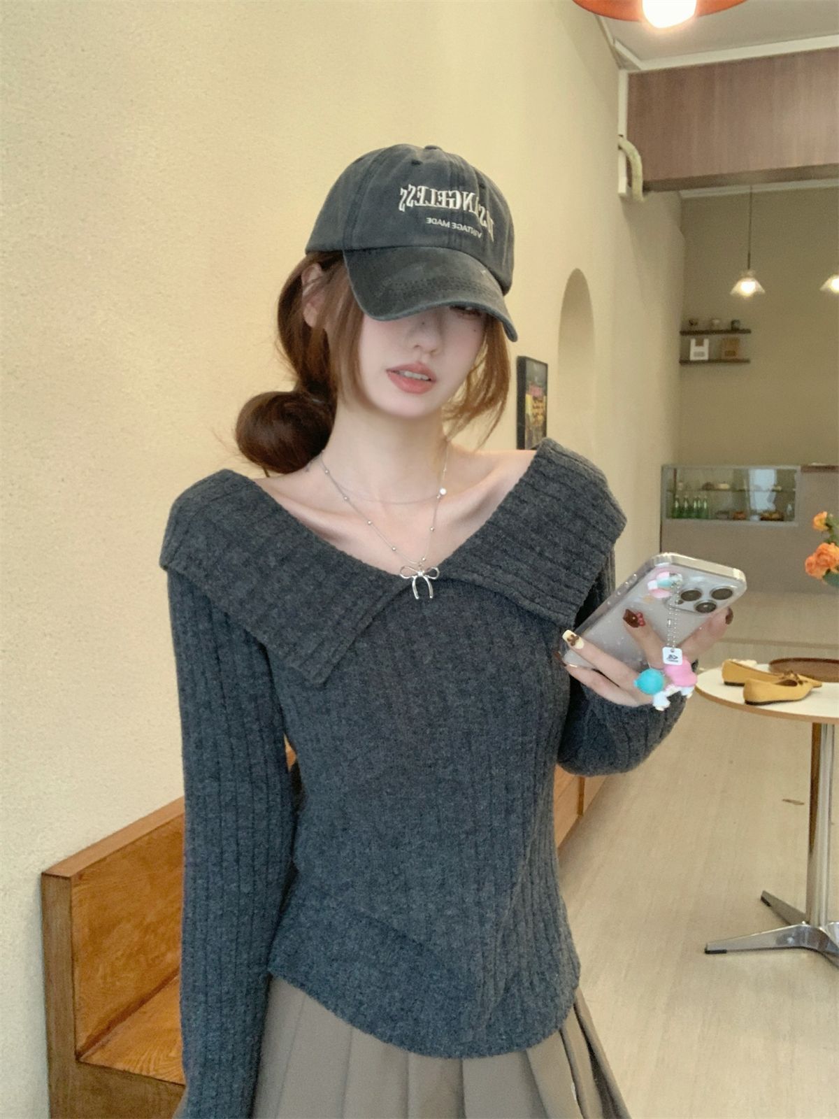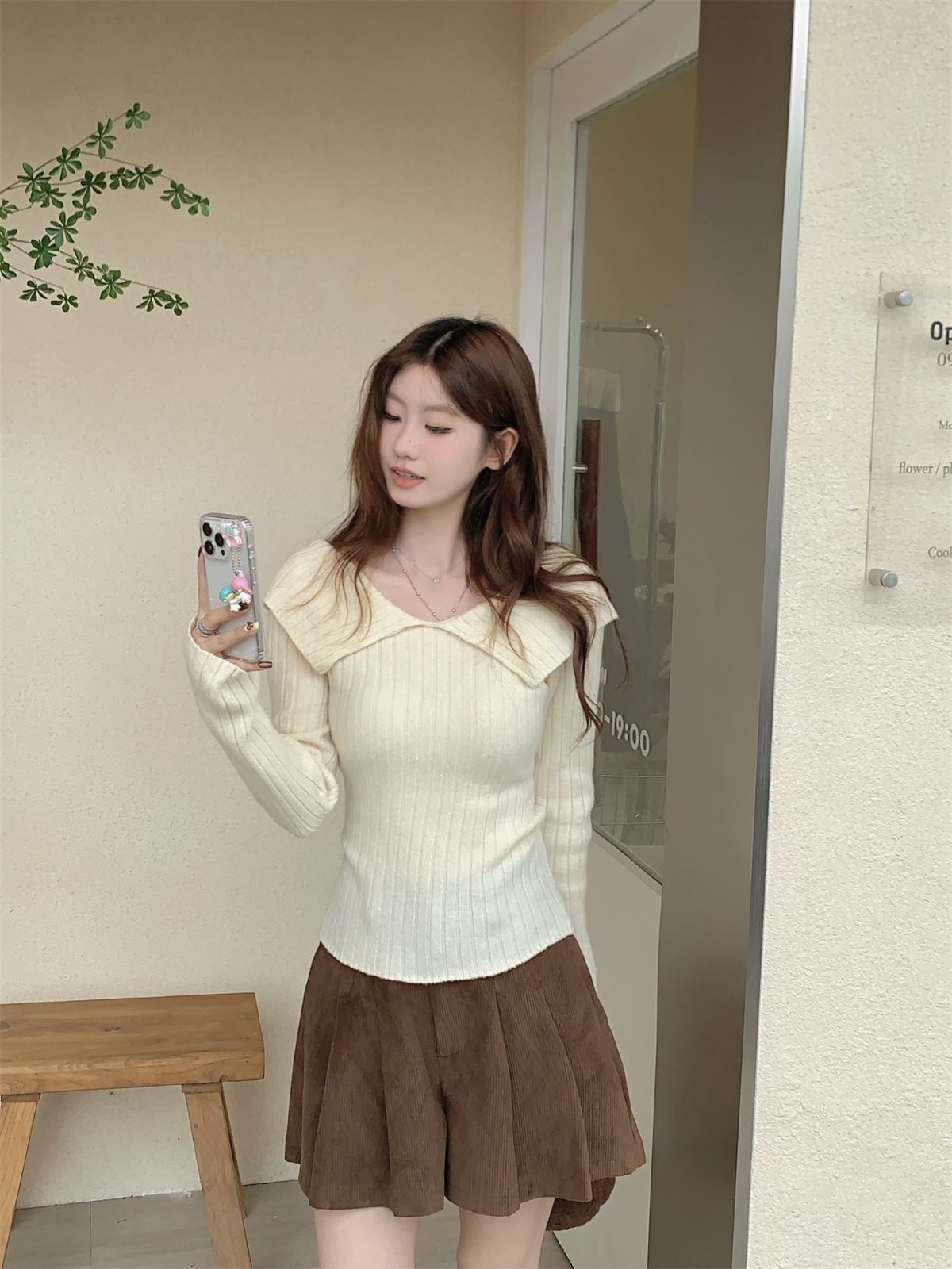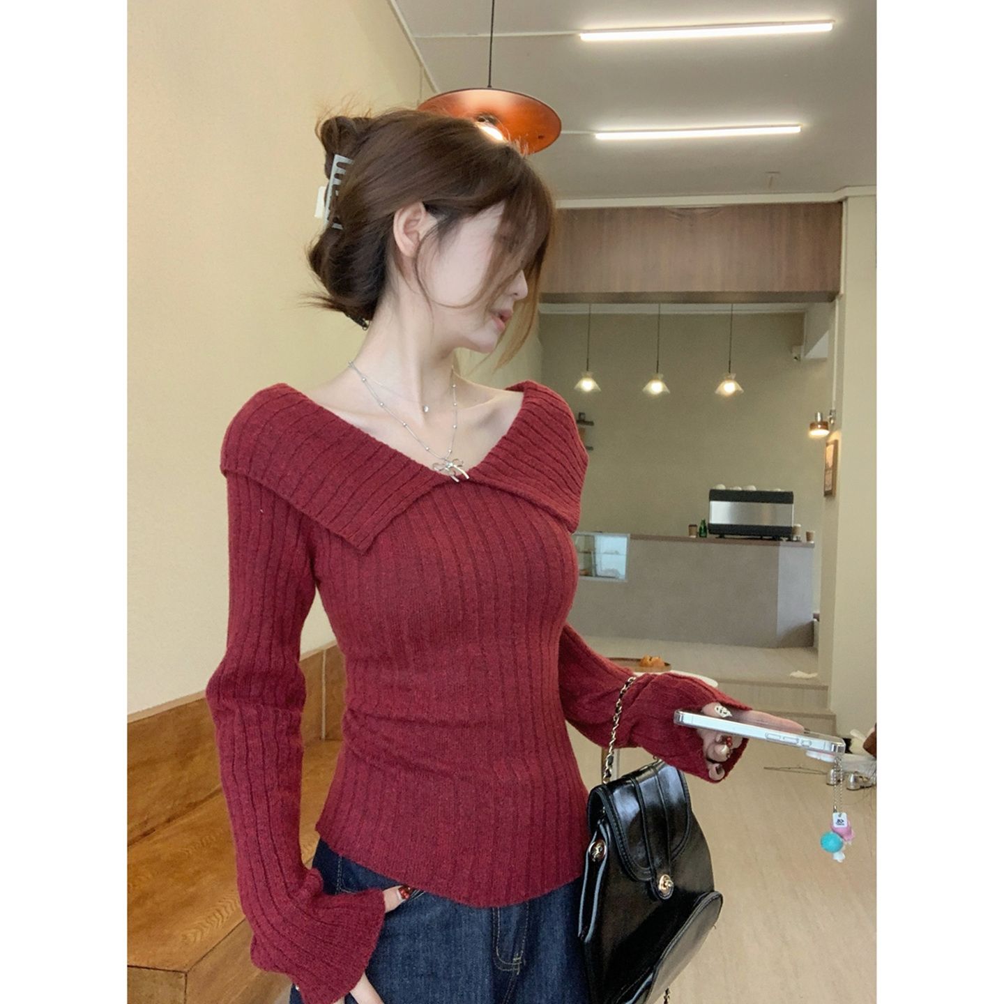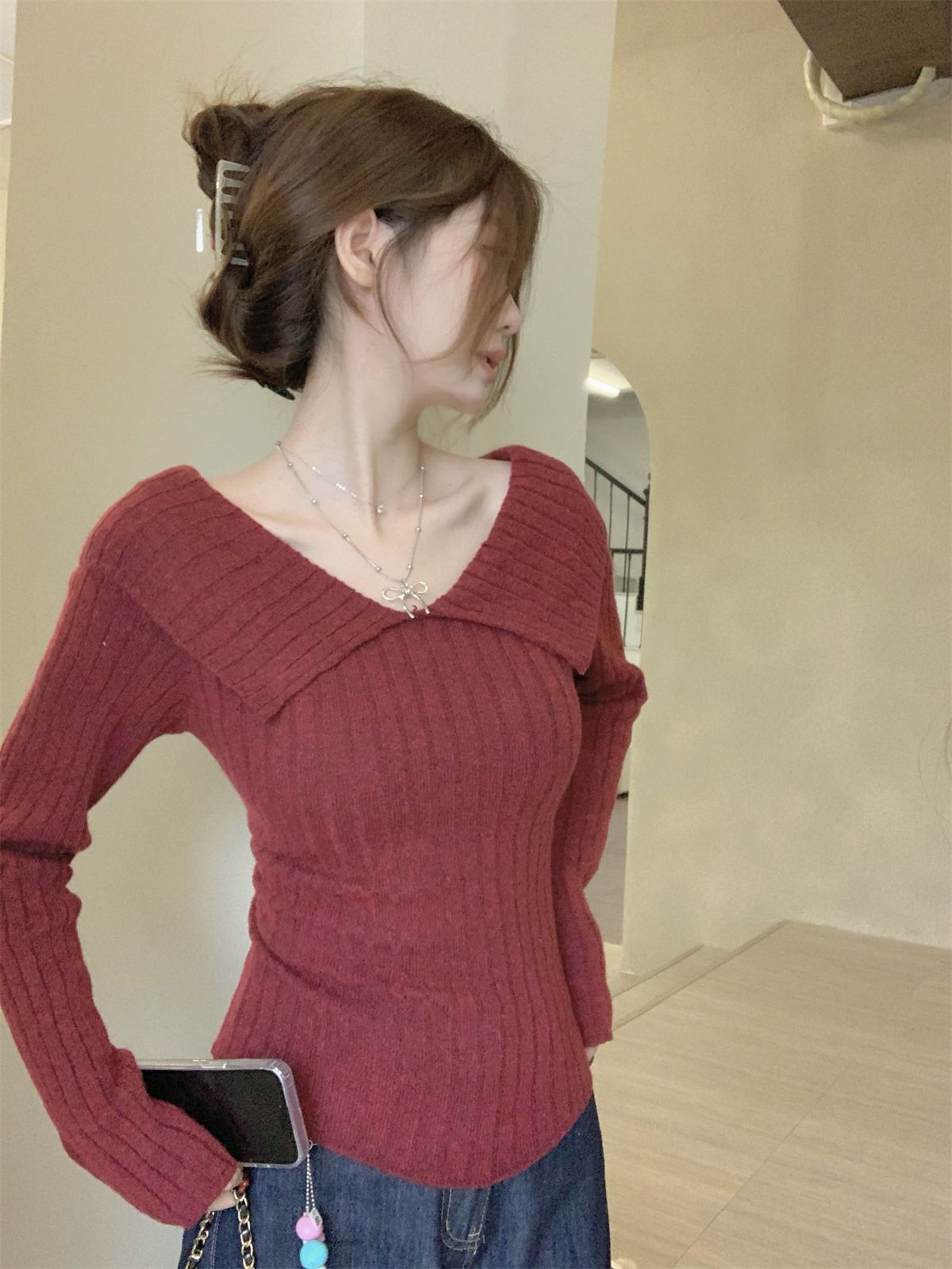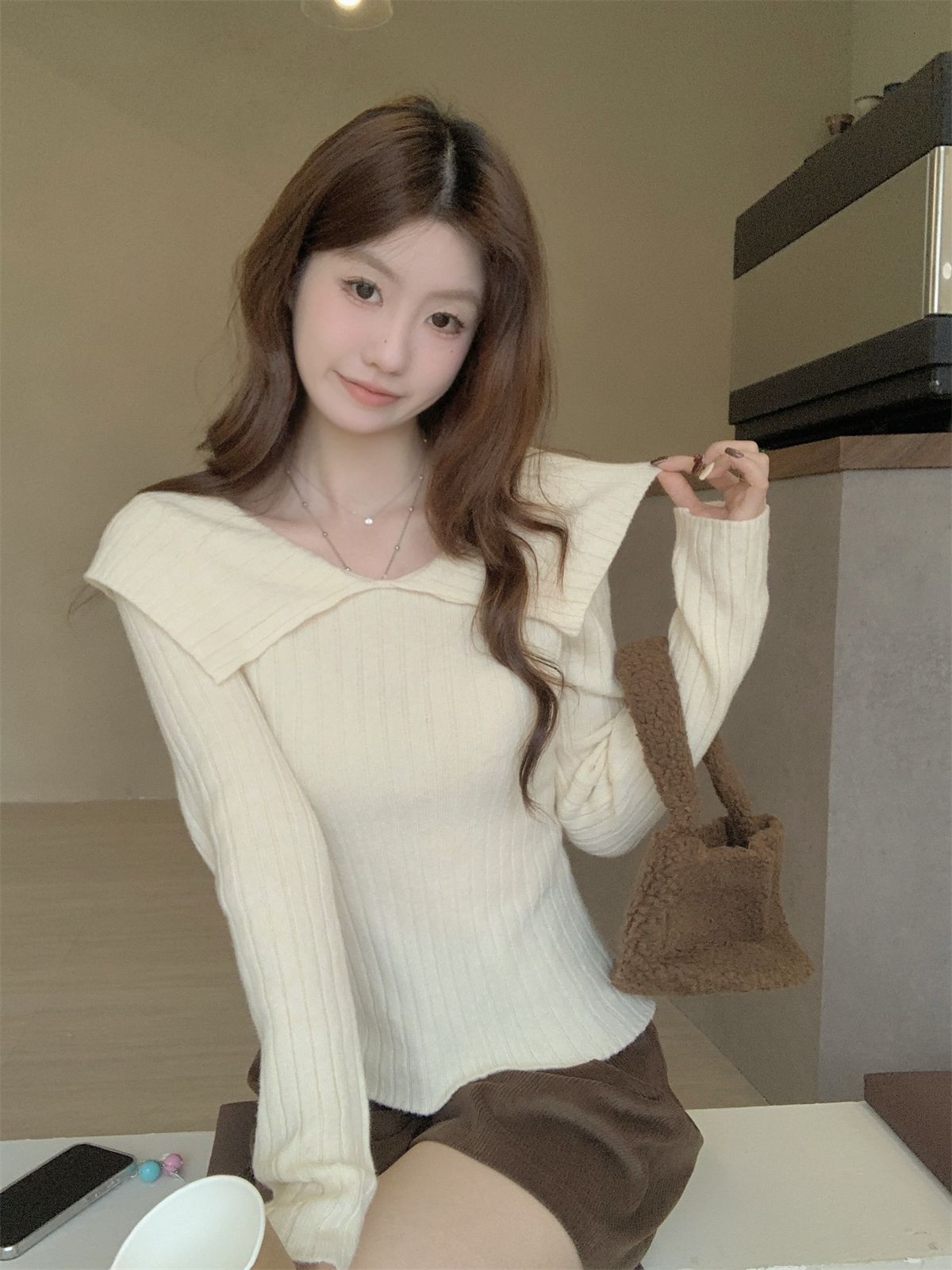 MY15673# 包芯纱 设计感翻领内搭针织打底毛衣女女裝貨源服裝批發