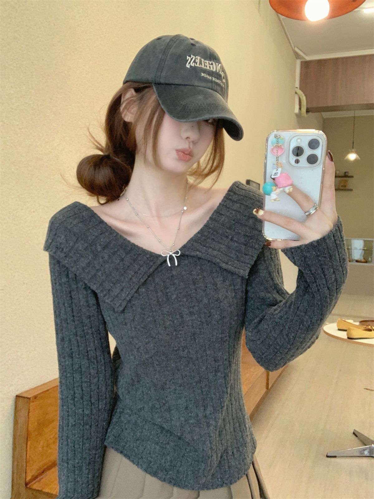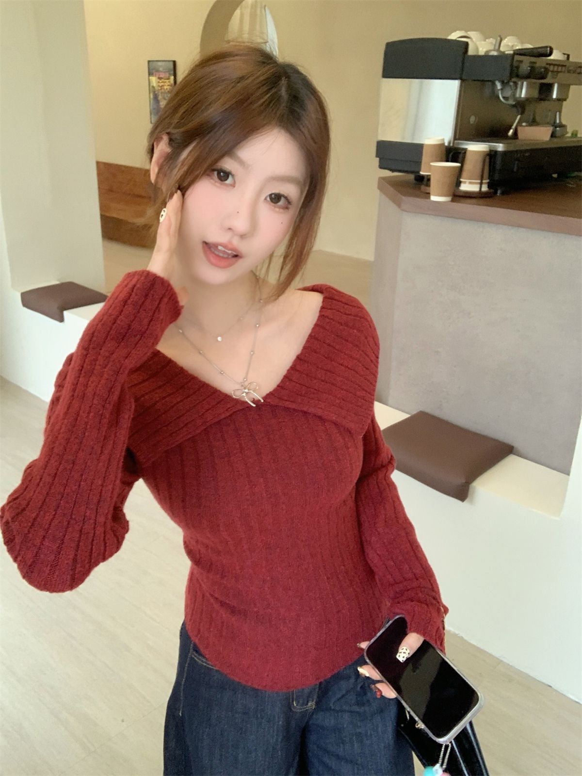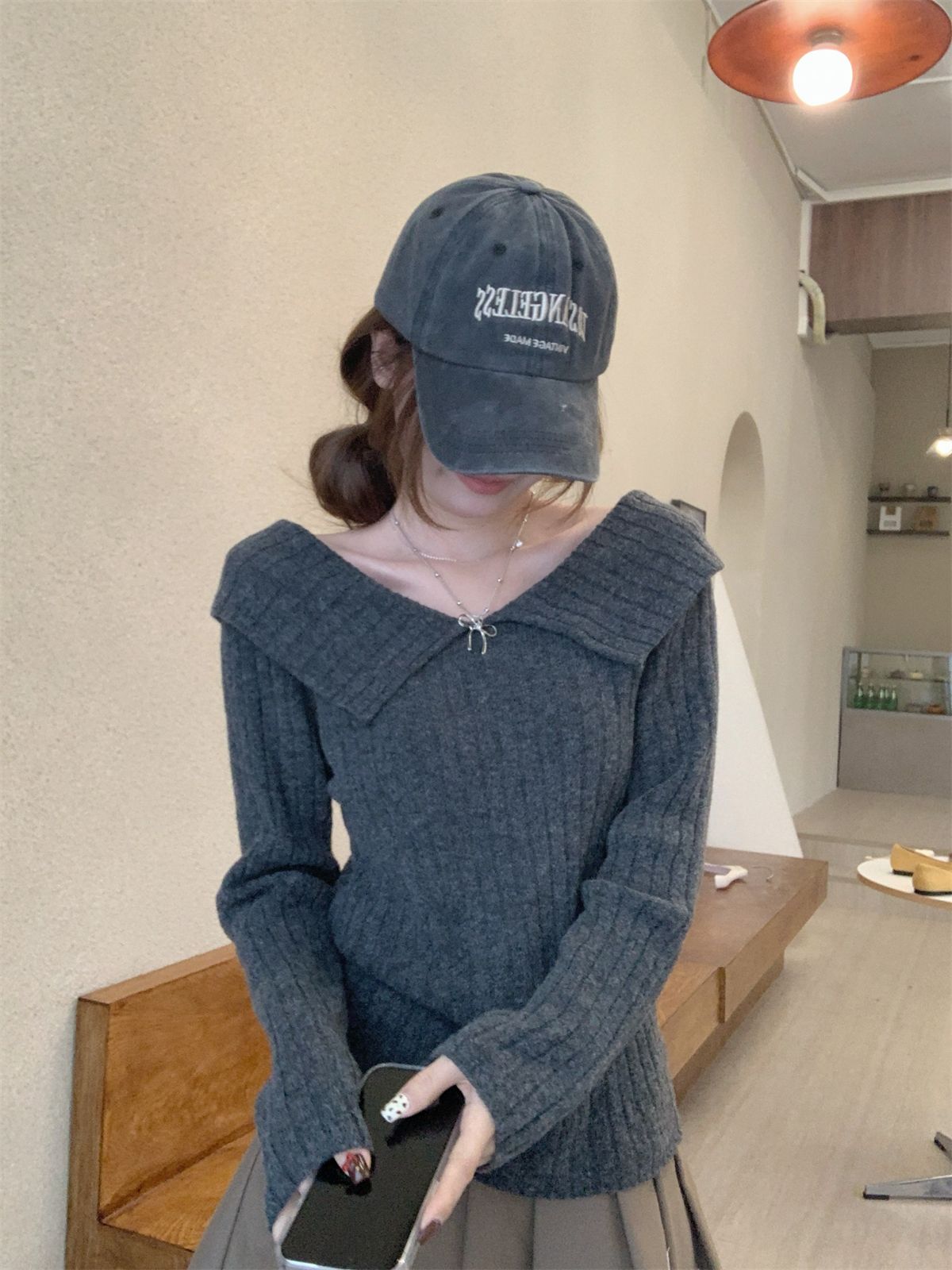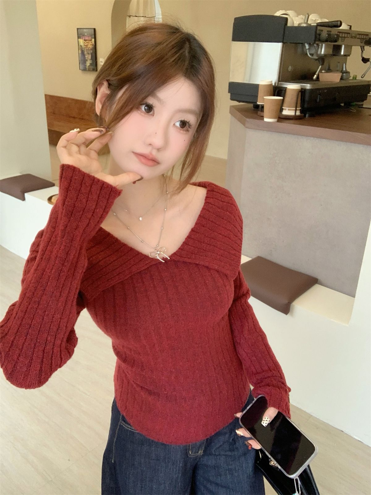 MY15673# 包芯纱 设计感翻领内搭针织打底毛衣女女裝貨源服裝批發