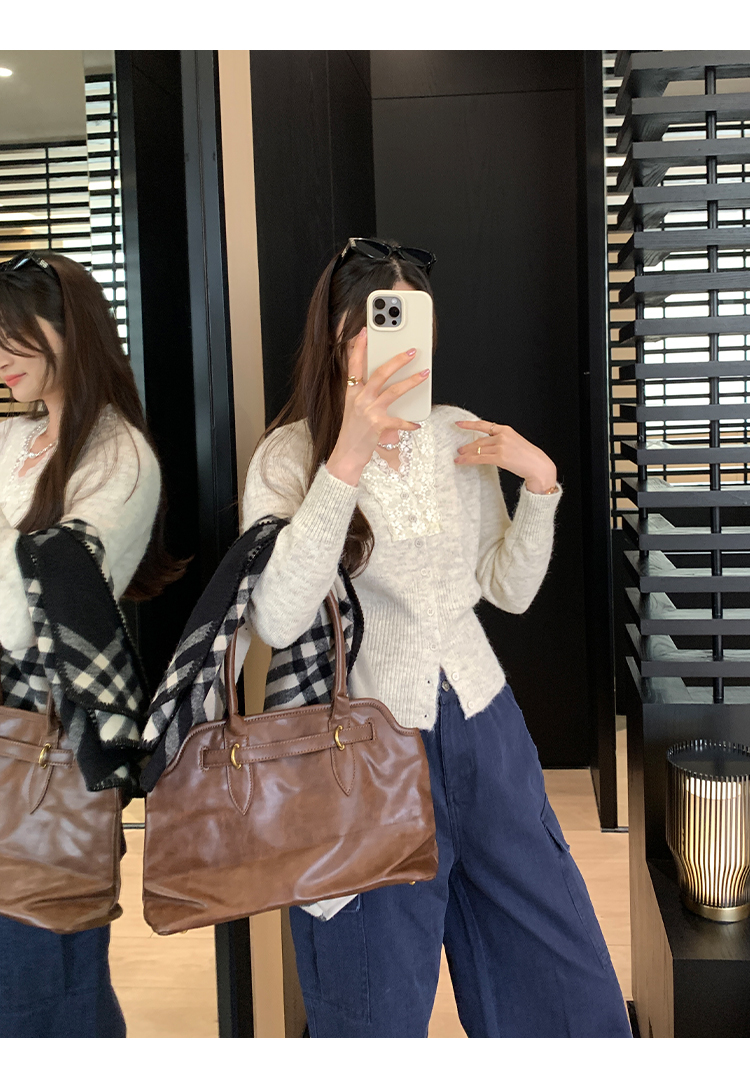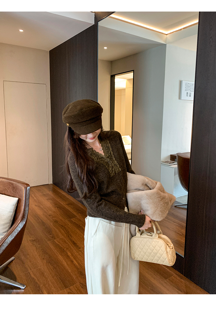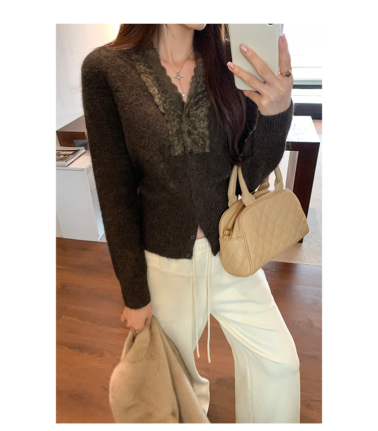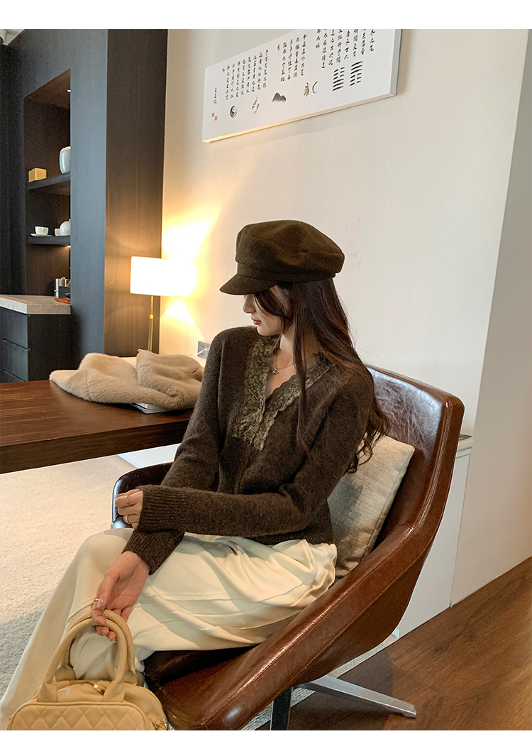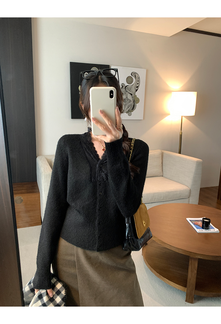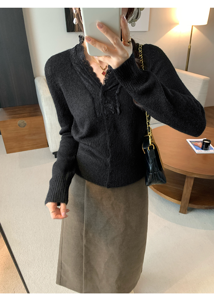 MY15681# 高知miu系蕾丝花边V领羊毛针织毛衣开衫外套女秋新款上衣女裝貨源服裝批發