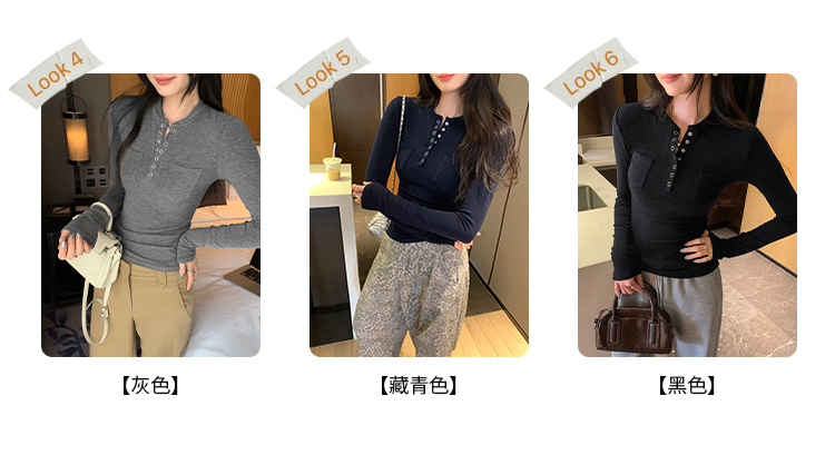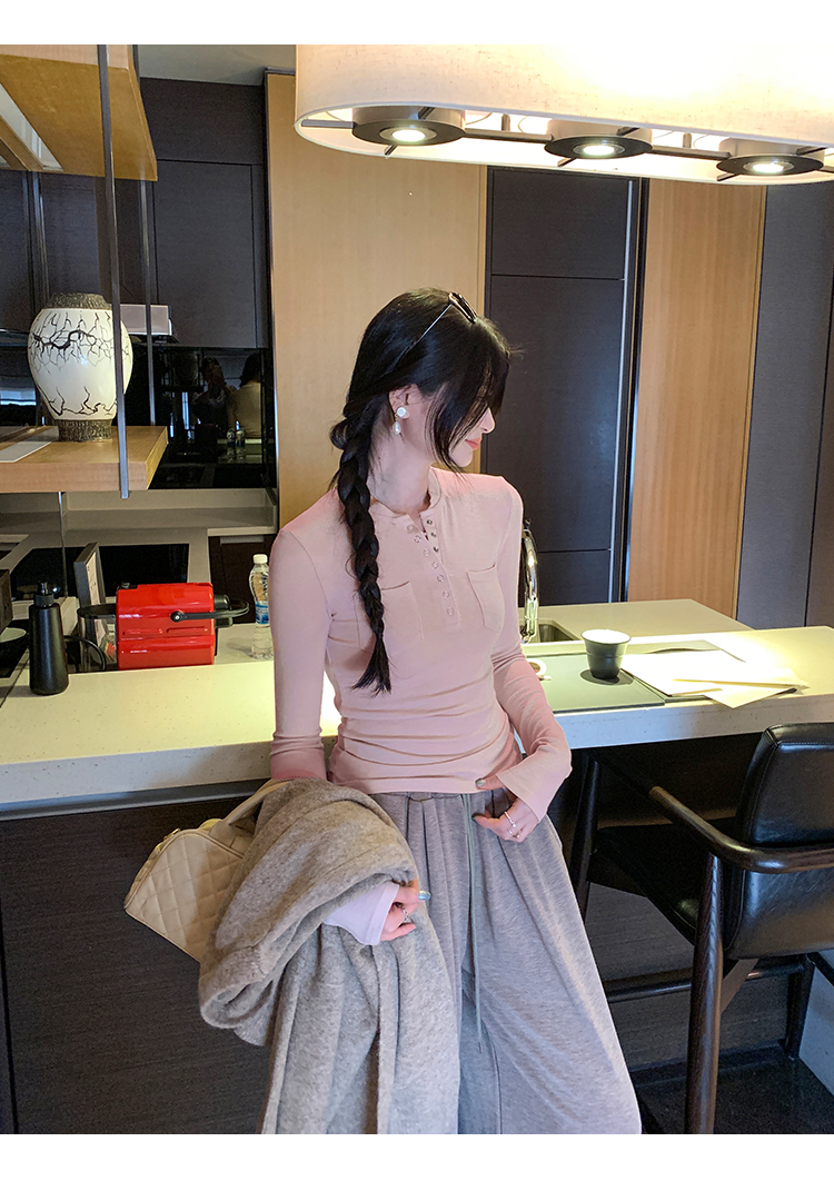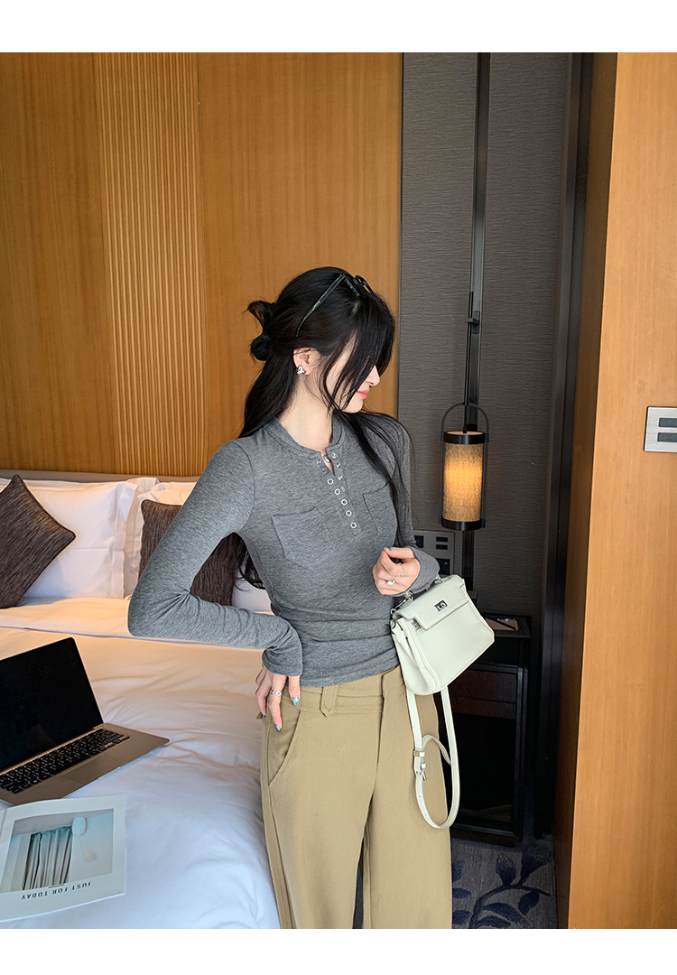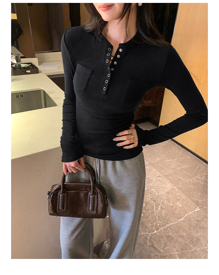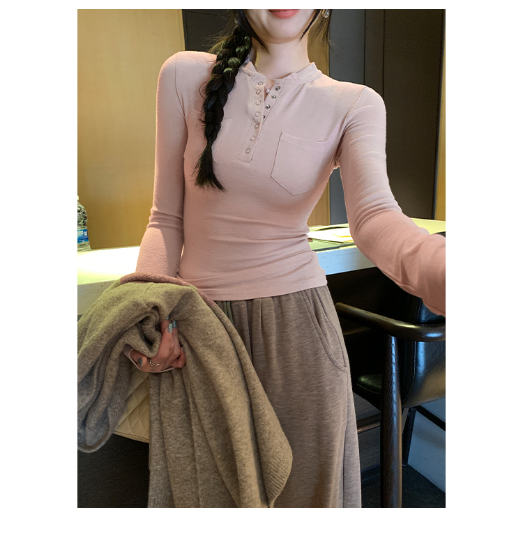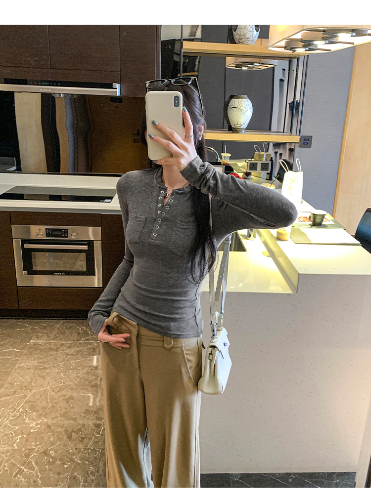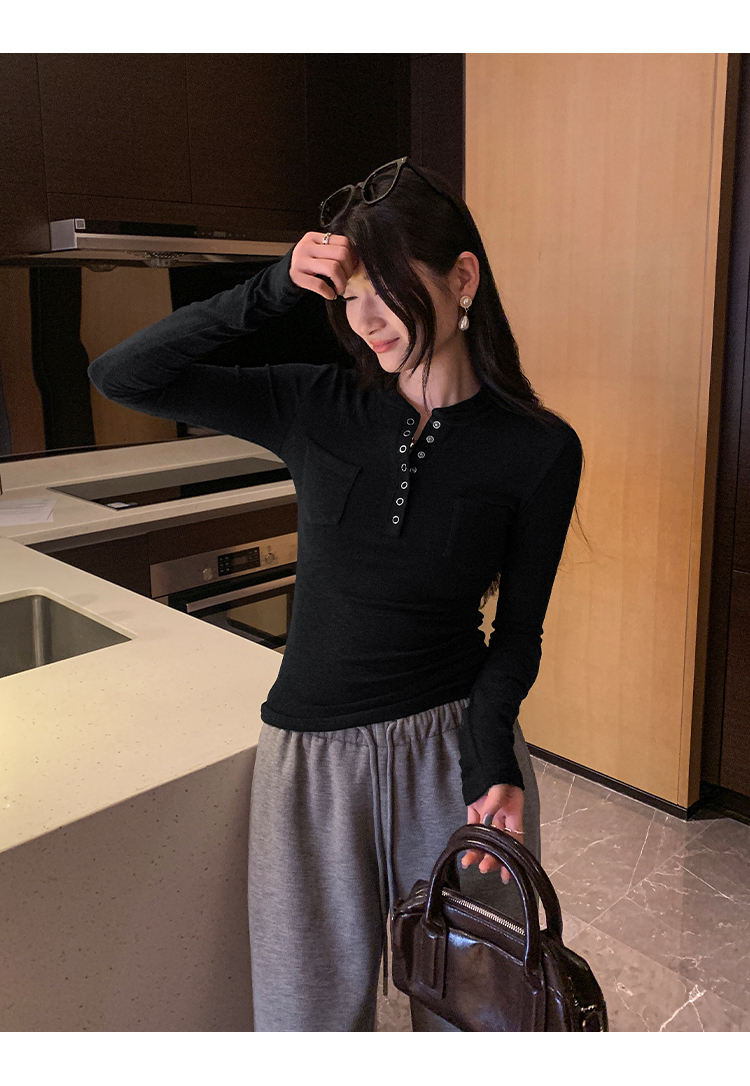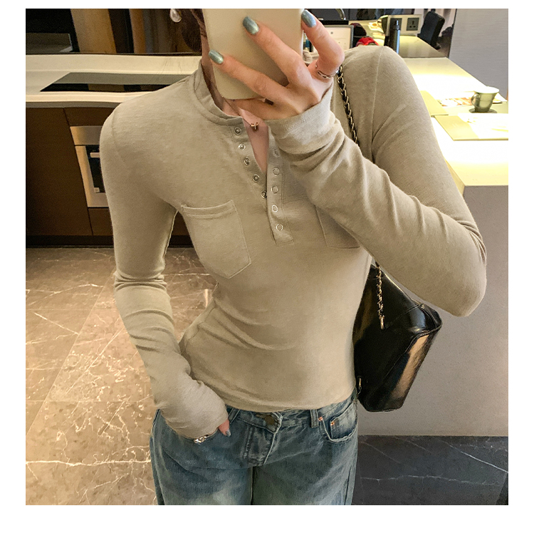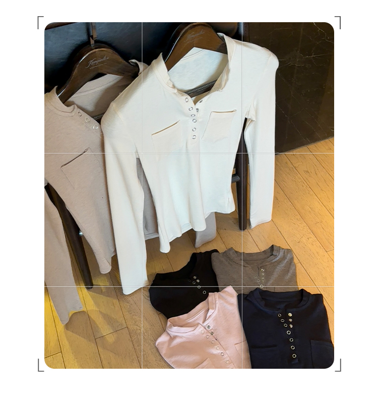 MY15682# 亨利领长袖内搭打底衫T恤女新款高级感修身上衣女裝貨源服裝批發