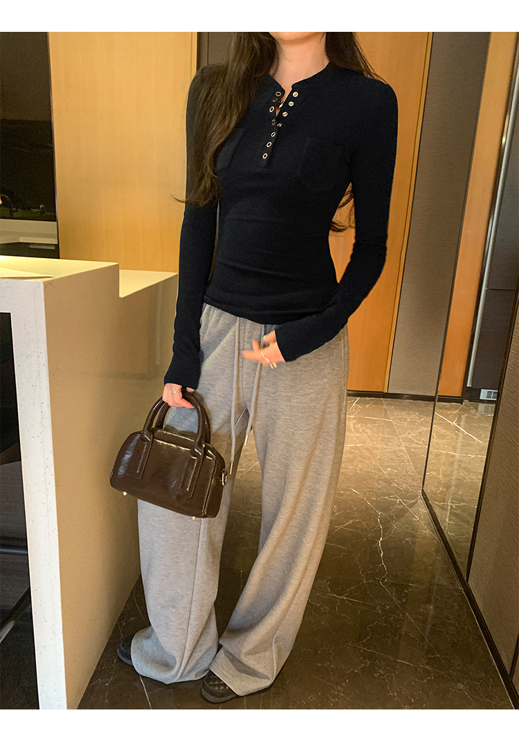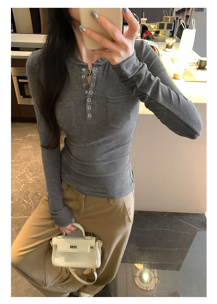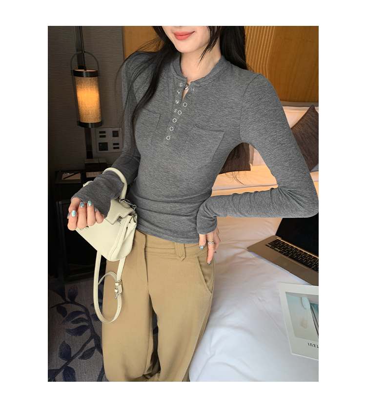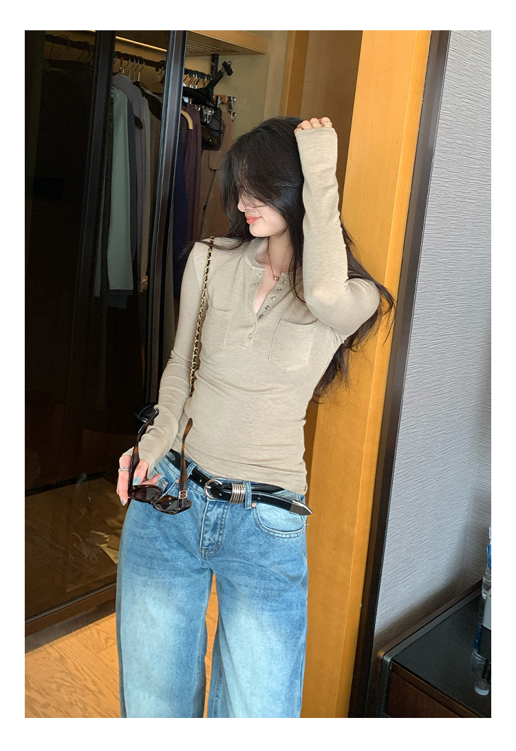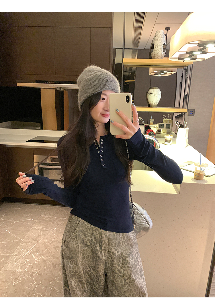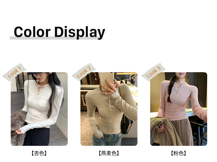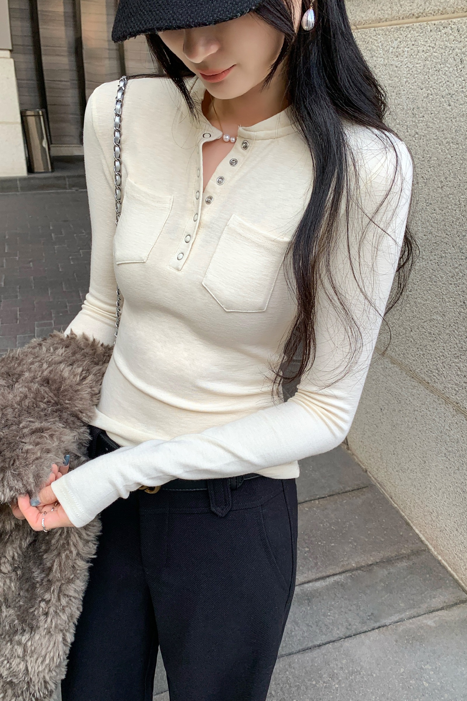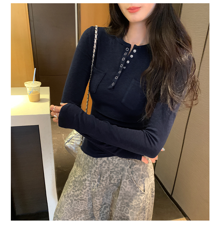 MY15682# 亨利领长袖内搭打底衫T恤女新款高级感修身上衣女裝貨源服裝批發