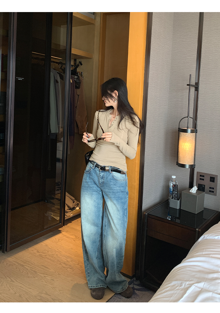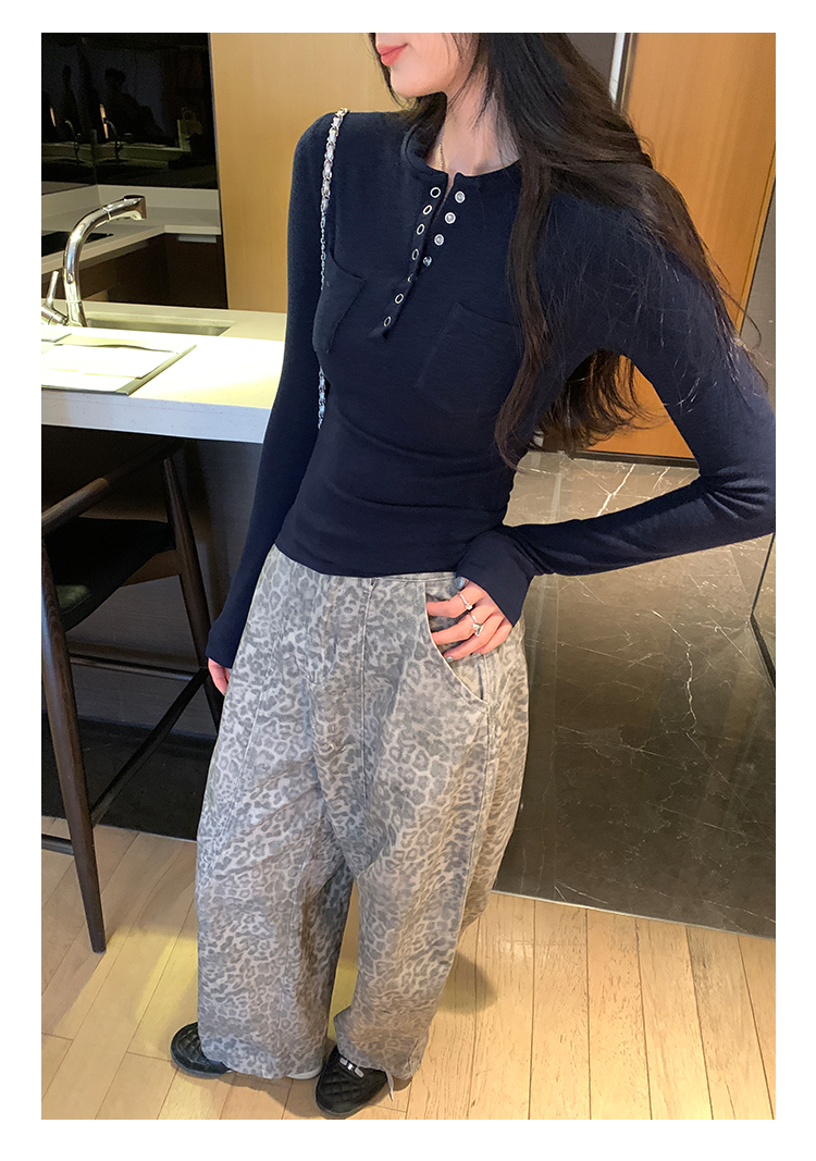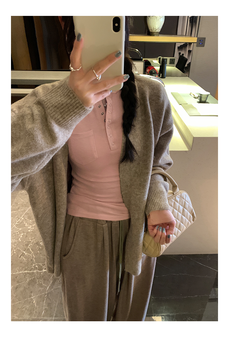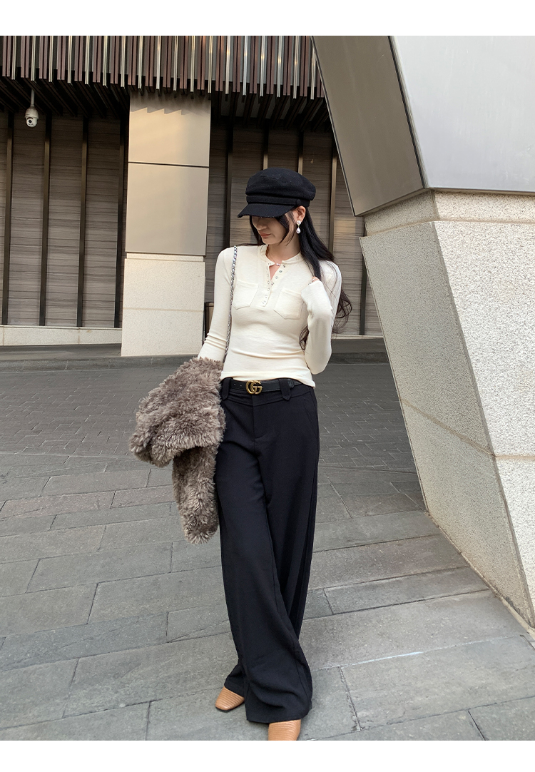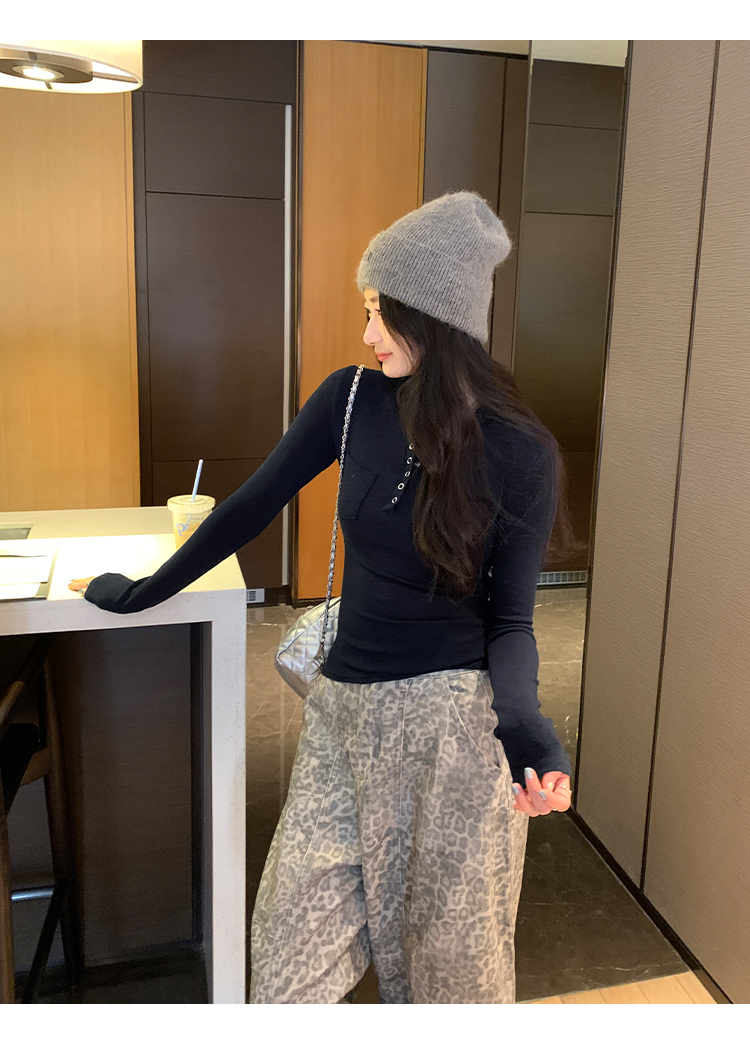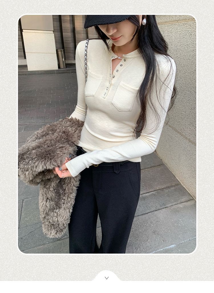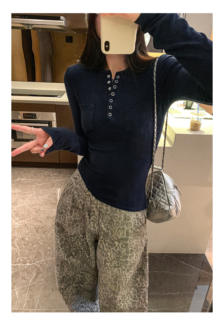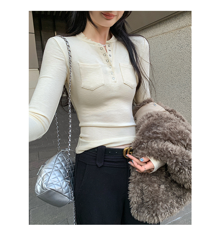 MY15682# 亨利领长袖内搭打底衫T恤女新款高级感修身上衣女裝貨源服裝批發