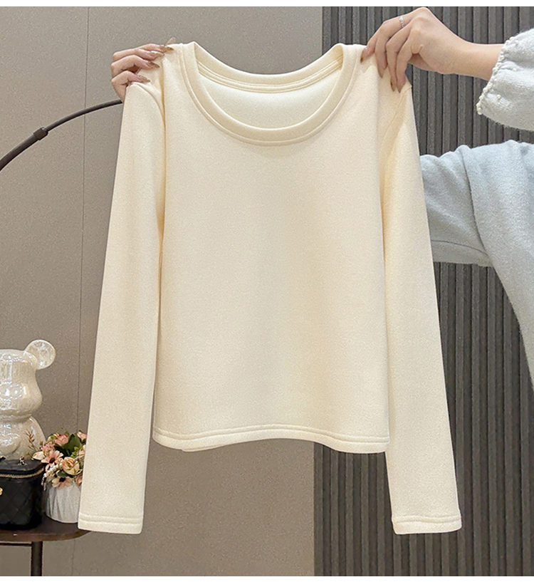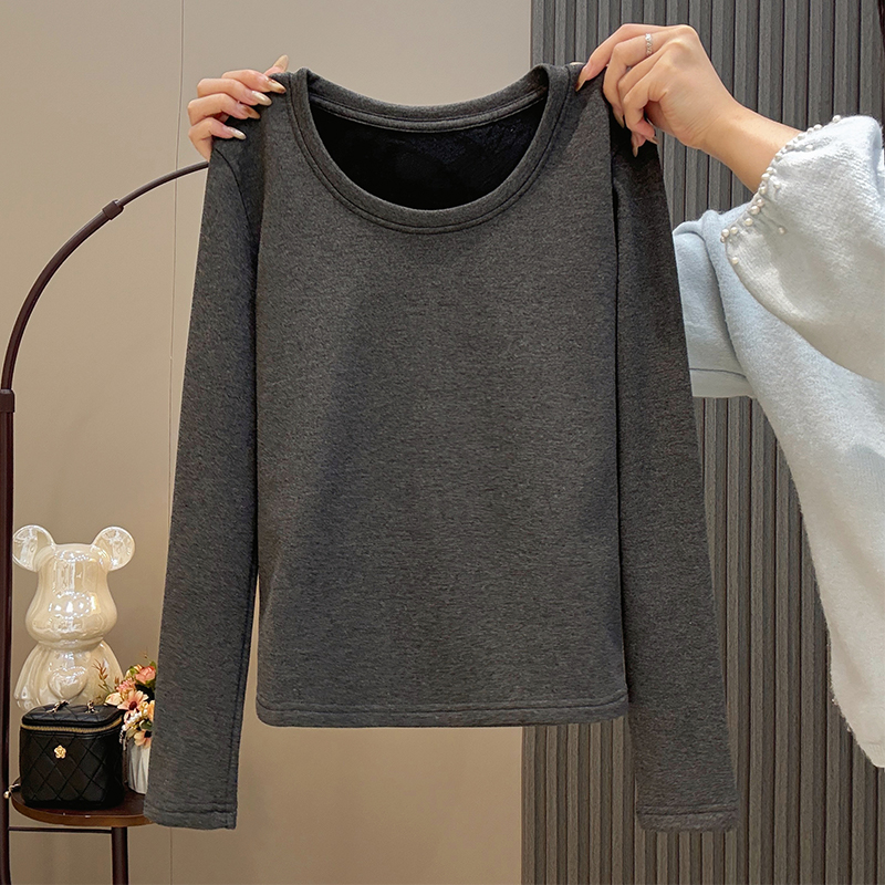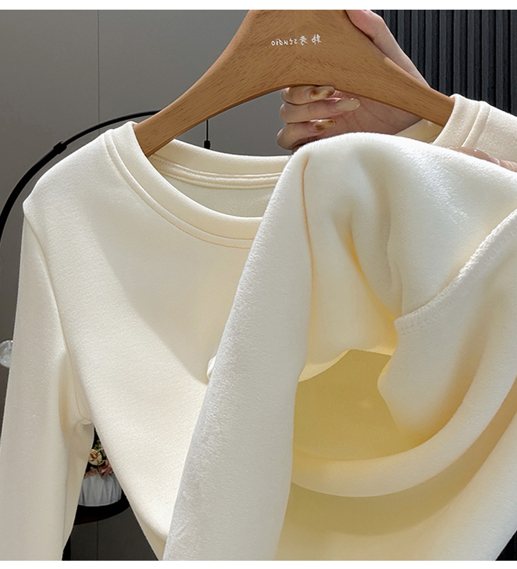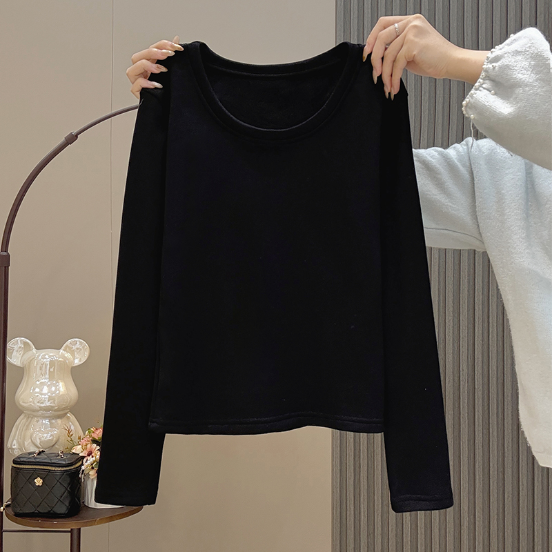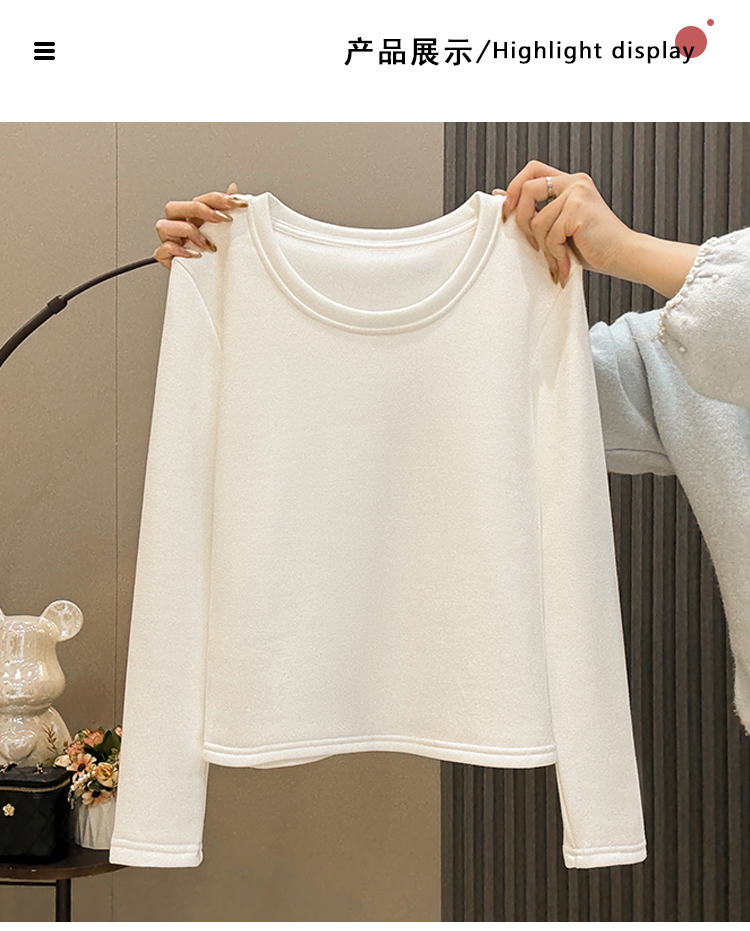 MY15690# 加绒加厚保暖打底衫新款白色修身长袖T恤内搭上衣女裝貨源服裝批發