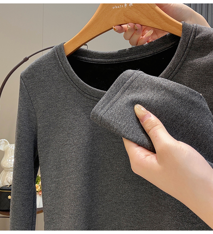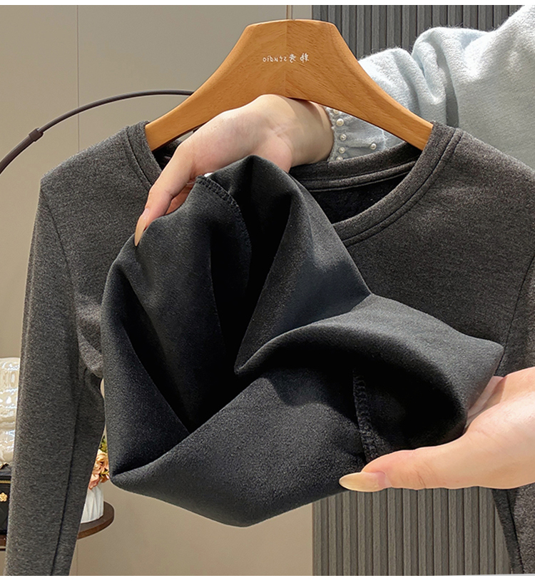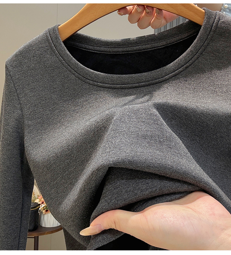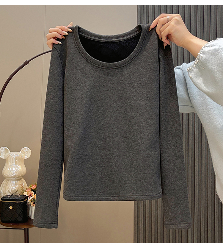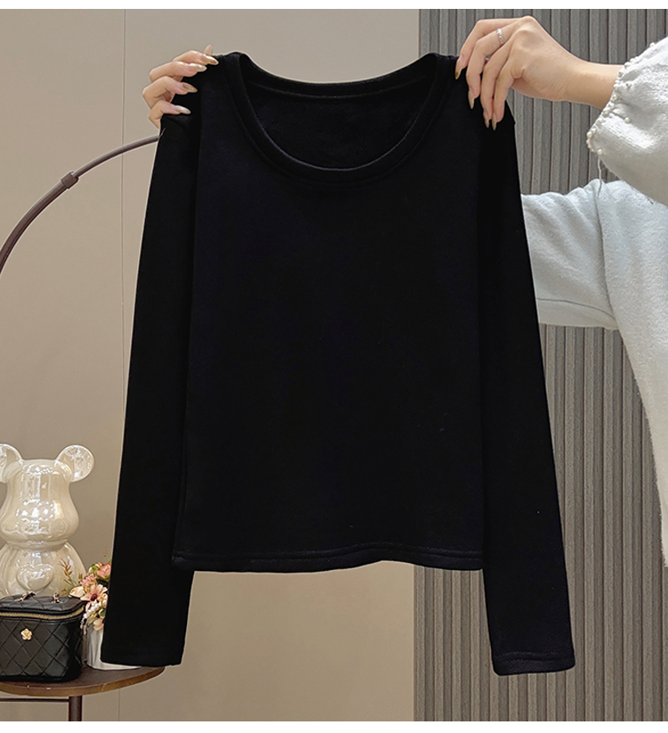 MY15690# 加绒加厚保暖打底衫新款白色修身长袖T恤内搭上衣女裝貨源服裝批發