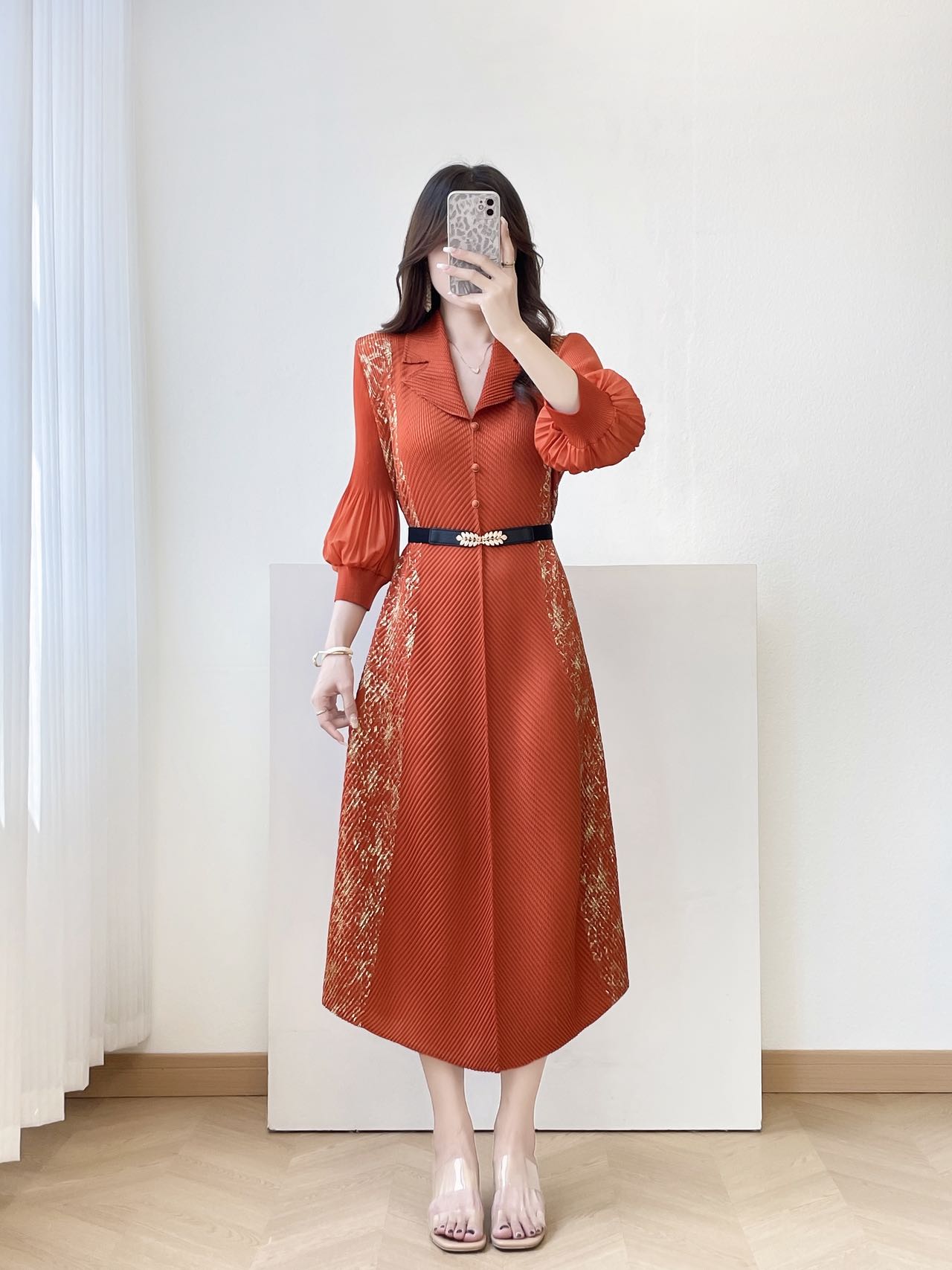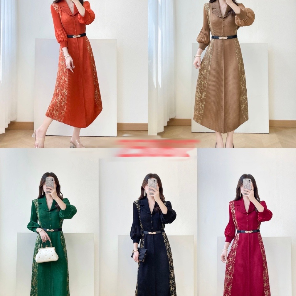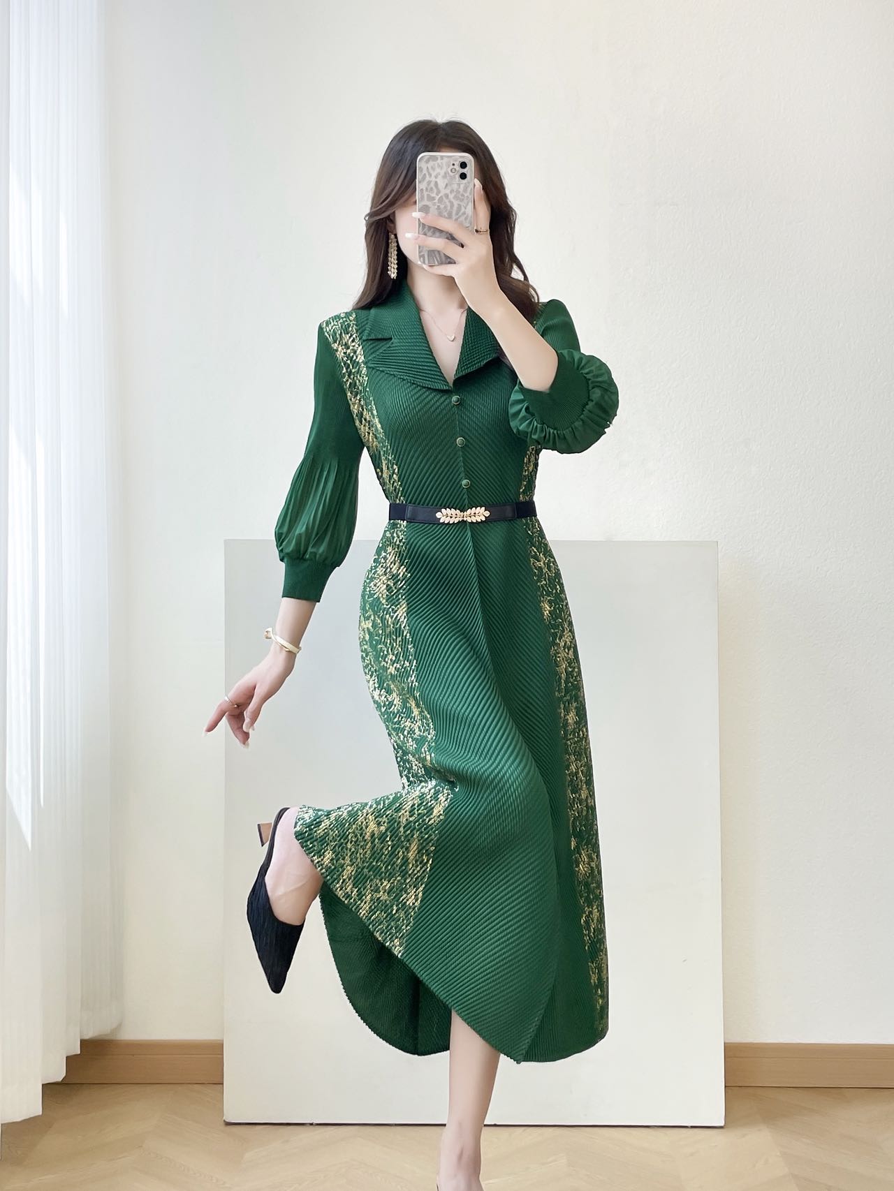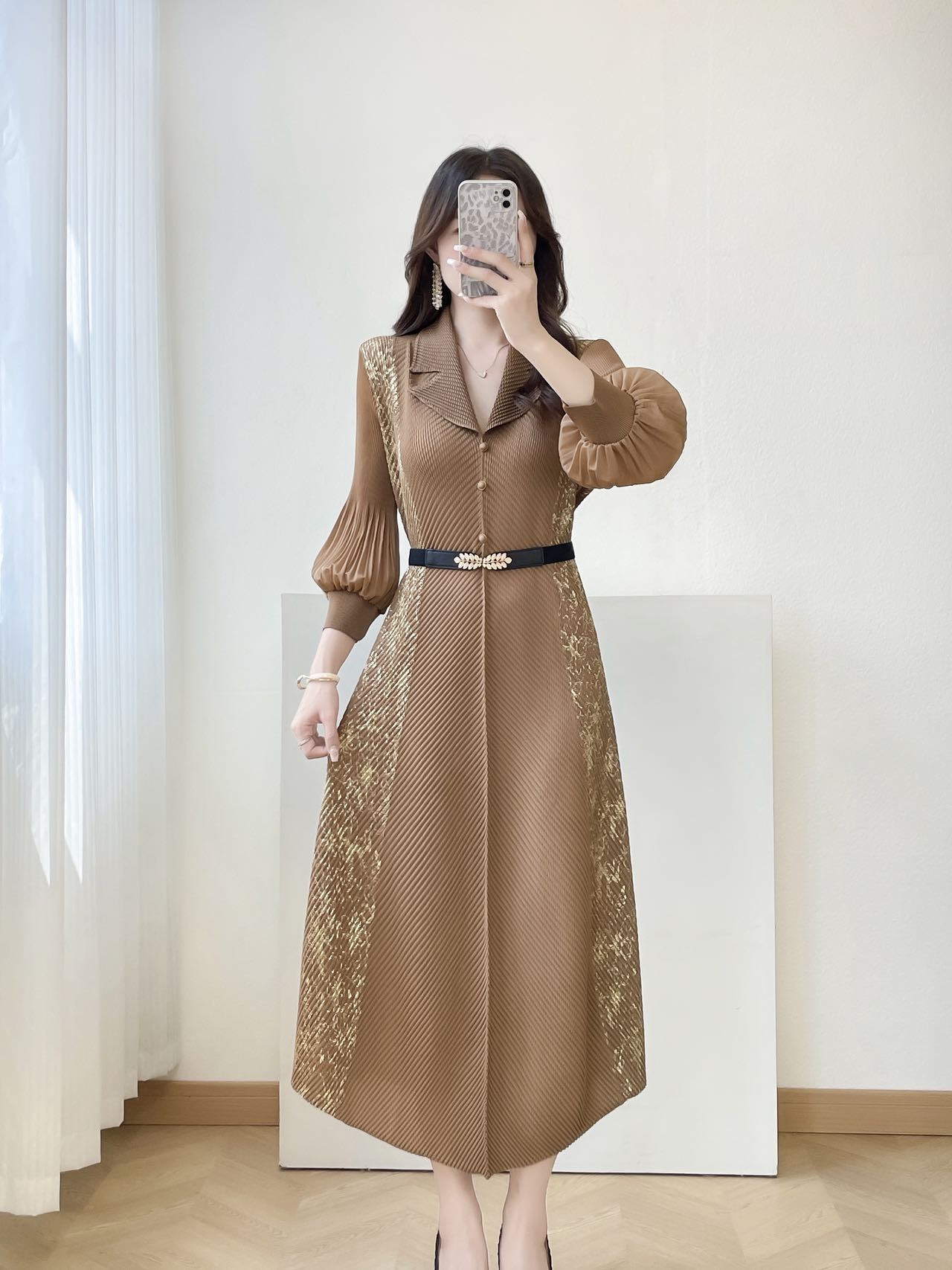MY15697# 三宅褶皱新款轻奢高端妈妈连衣裙鱼鳞褶大码时尚显瘦长裙女裝貨源服裝批發
