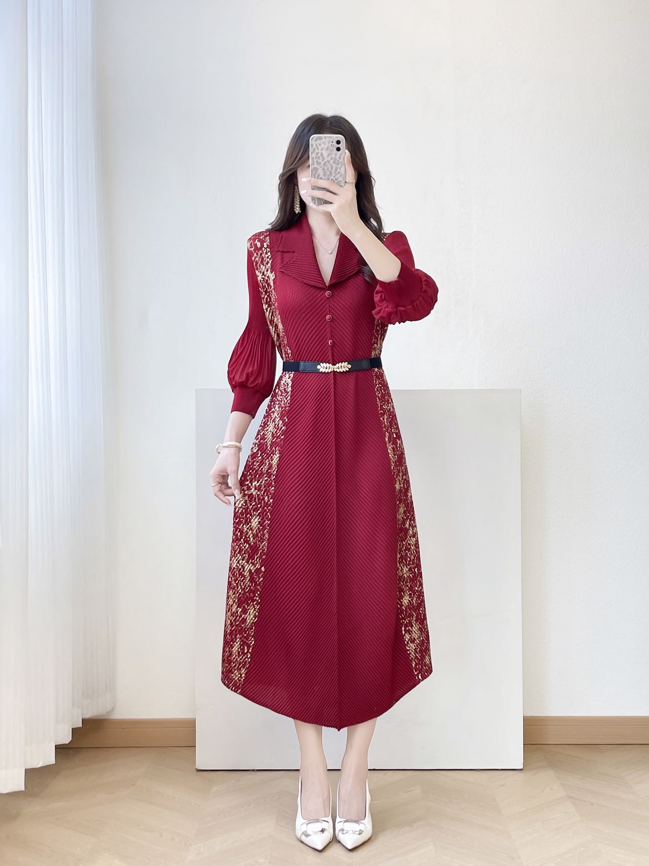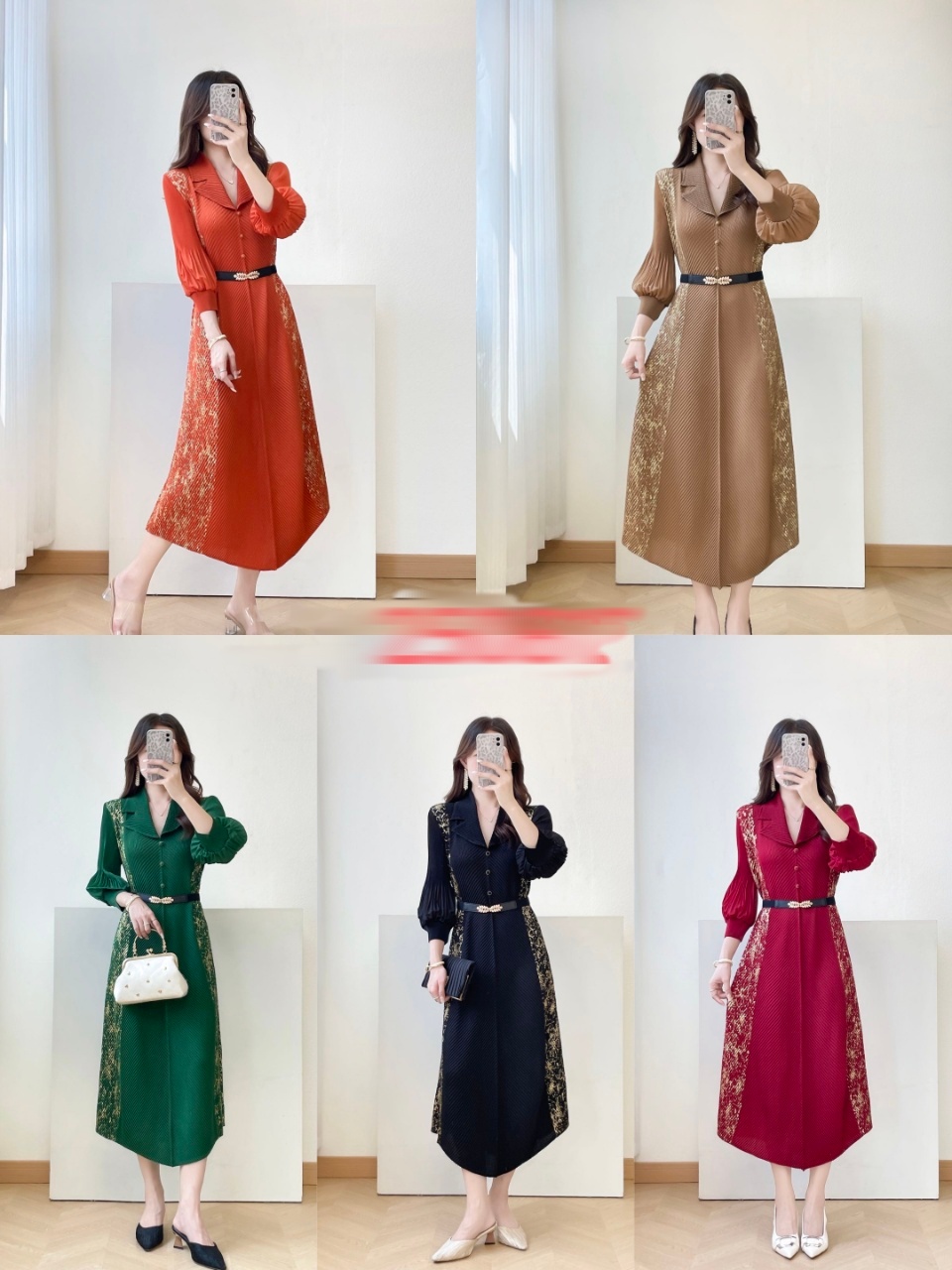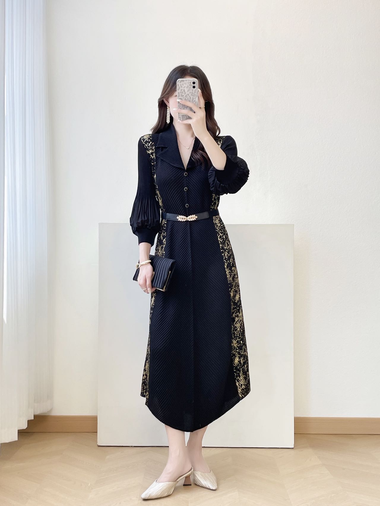 MY15697# 三宅褶皱新款轻奢高端妈妈连衣裙鱼鳞褶大码时尚显瘦长裙女裝貨源服裝批發