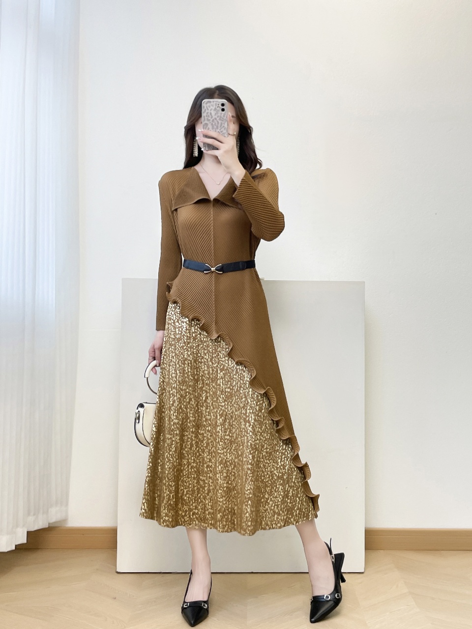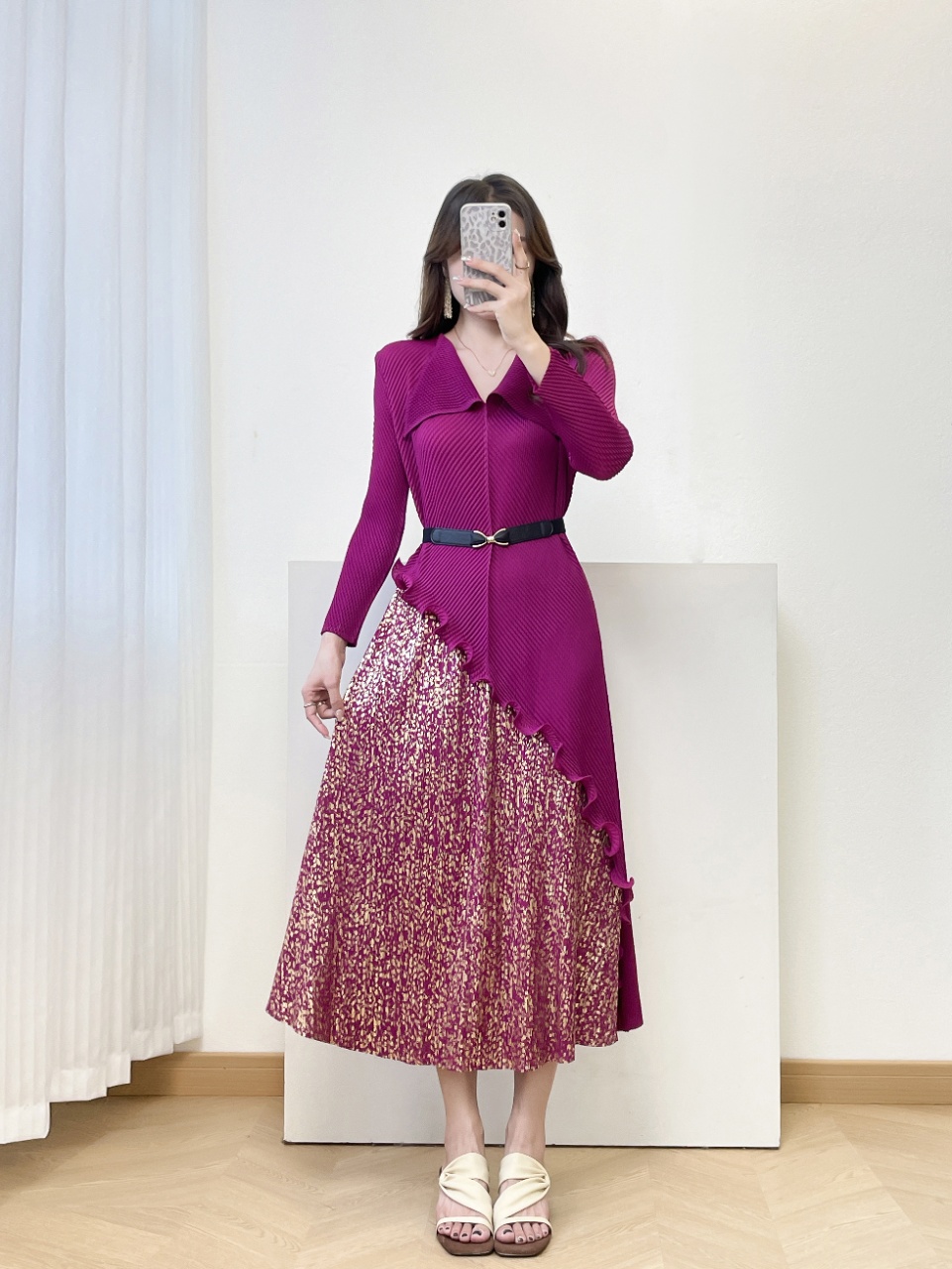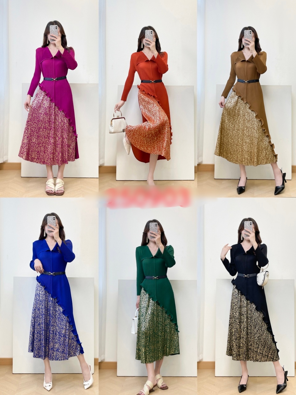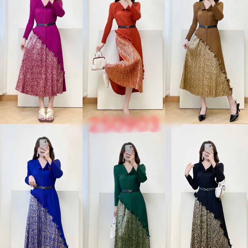 MY15698# 三宅褶皱新款轻奢高端妈妈连衣裙鱼鳞褶大码时尚显瘦长裙女裝貨源服裝批發