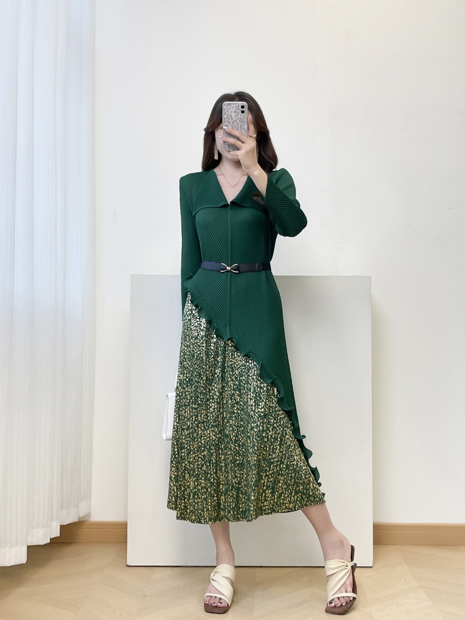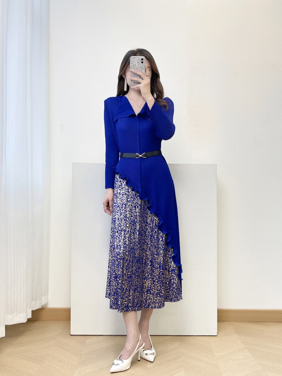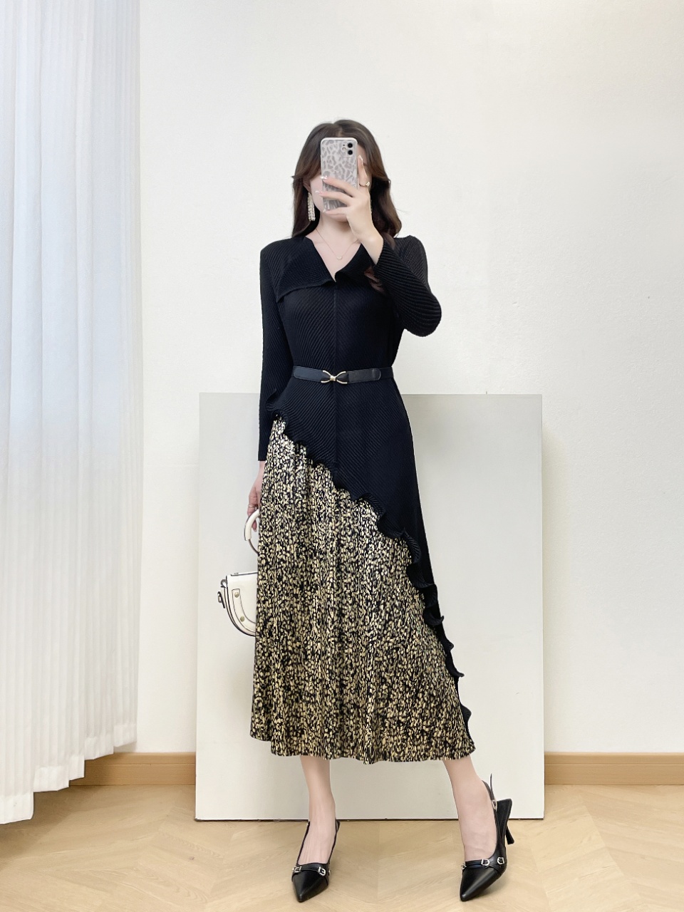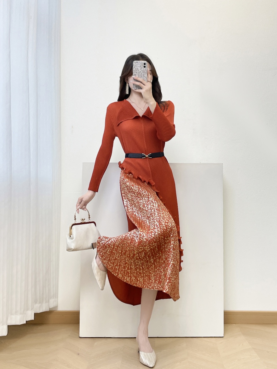 MY15698# 三宅褶皱新款轻奢高端妈妈连衣裙鱼鳞褶大码时尚显瘦长裙女裝貨源服裝批發