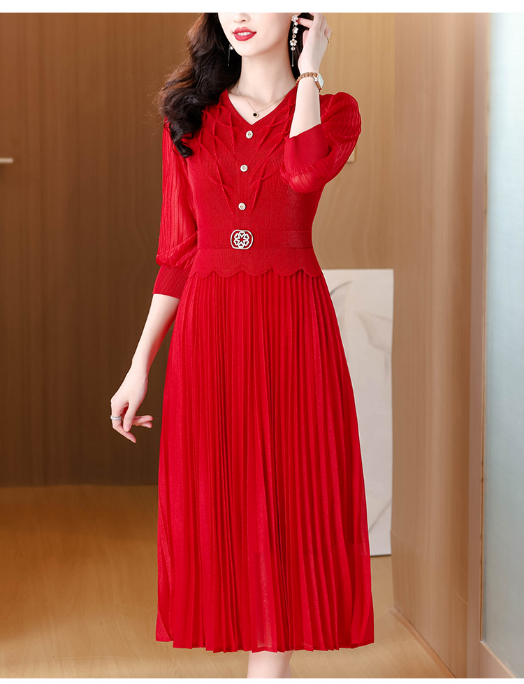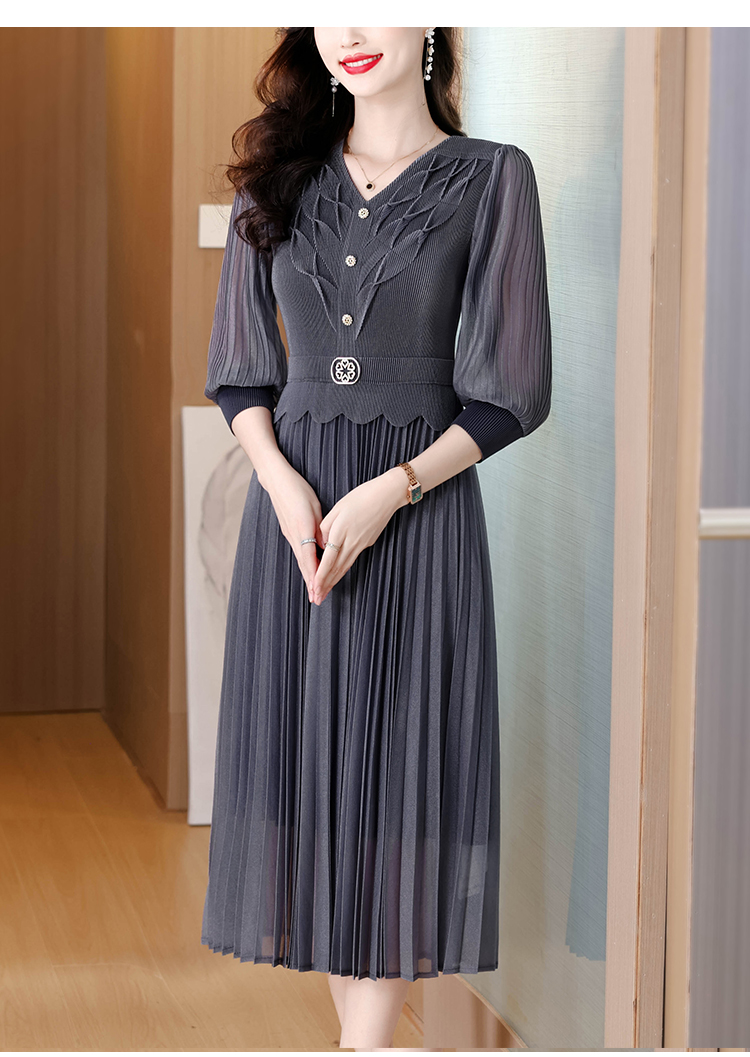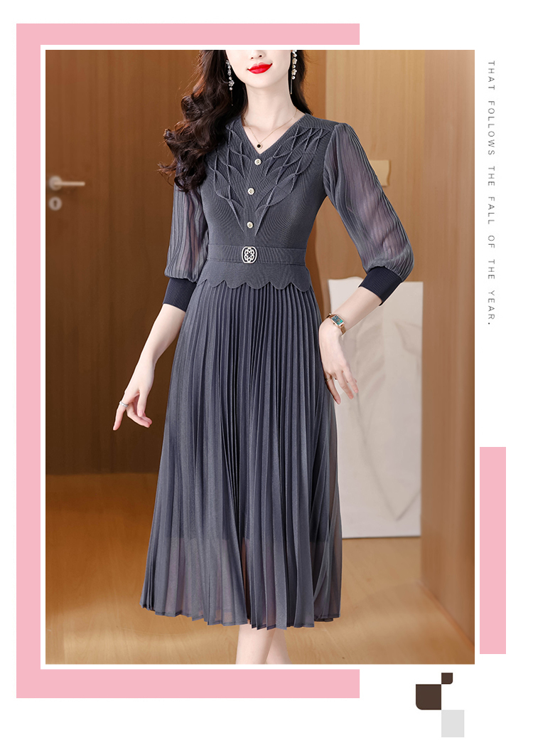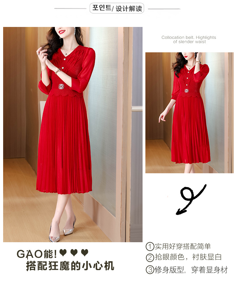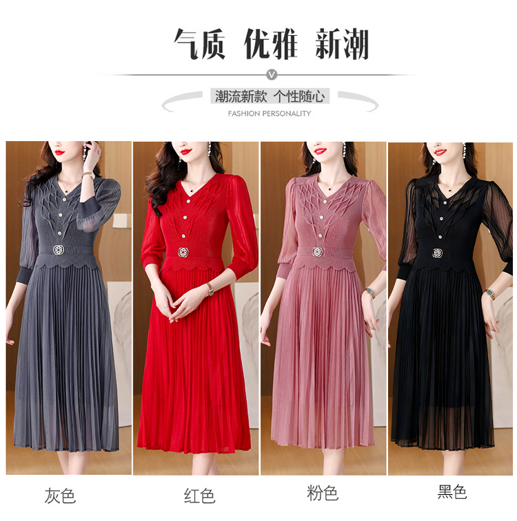 MY15701# 三宅褶皱连衣裙新款大码时尚气质遮肚收腰显瘦高端百褶裙女裝貨源服裝批發