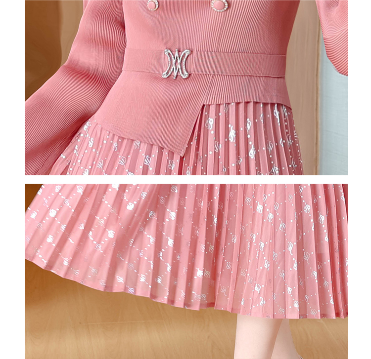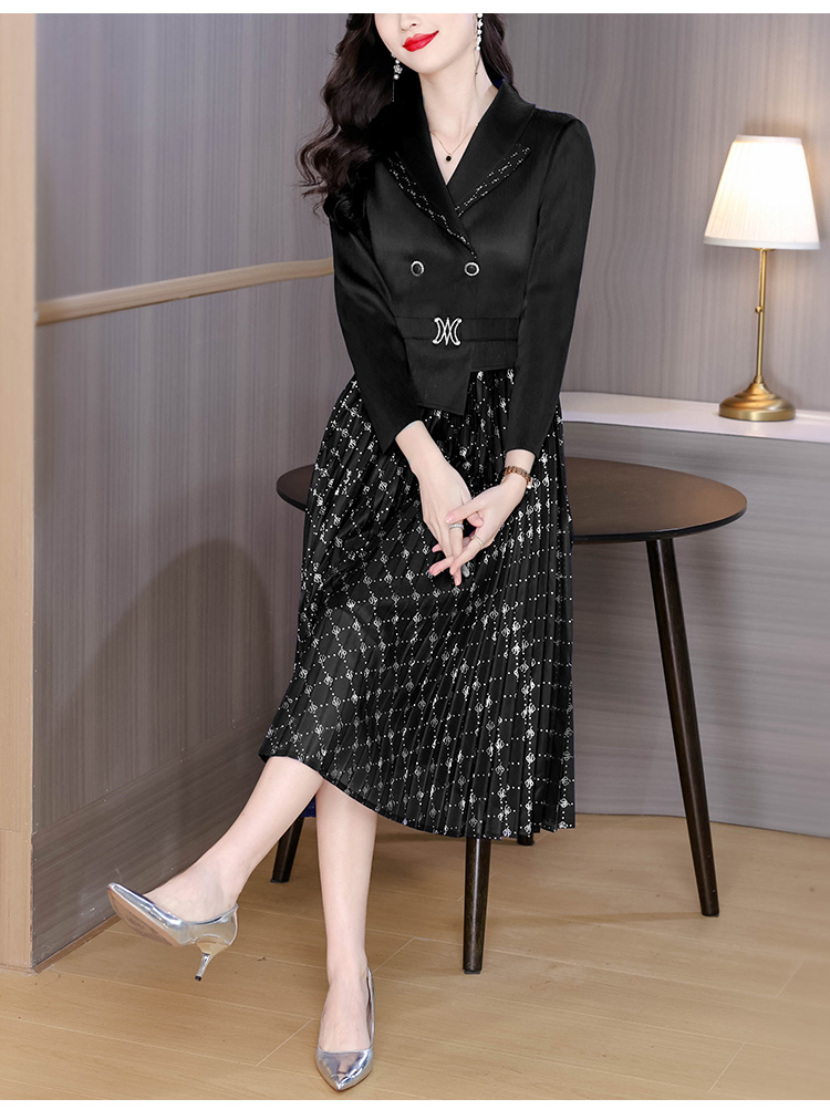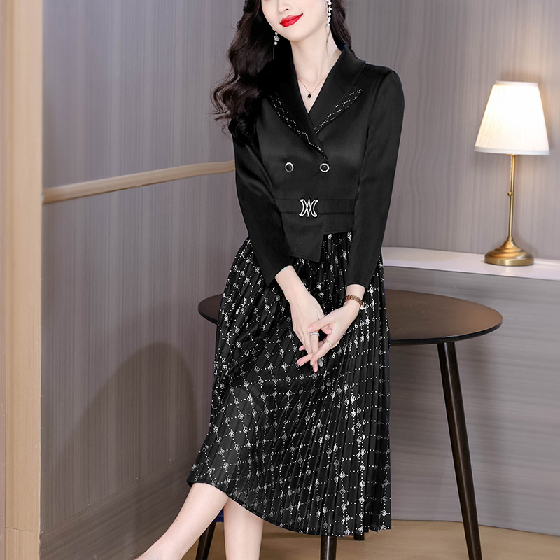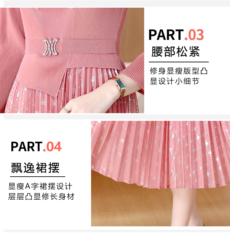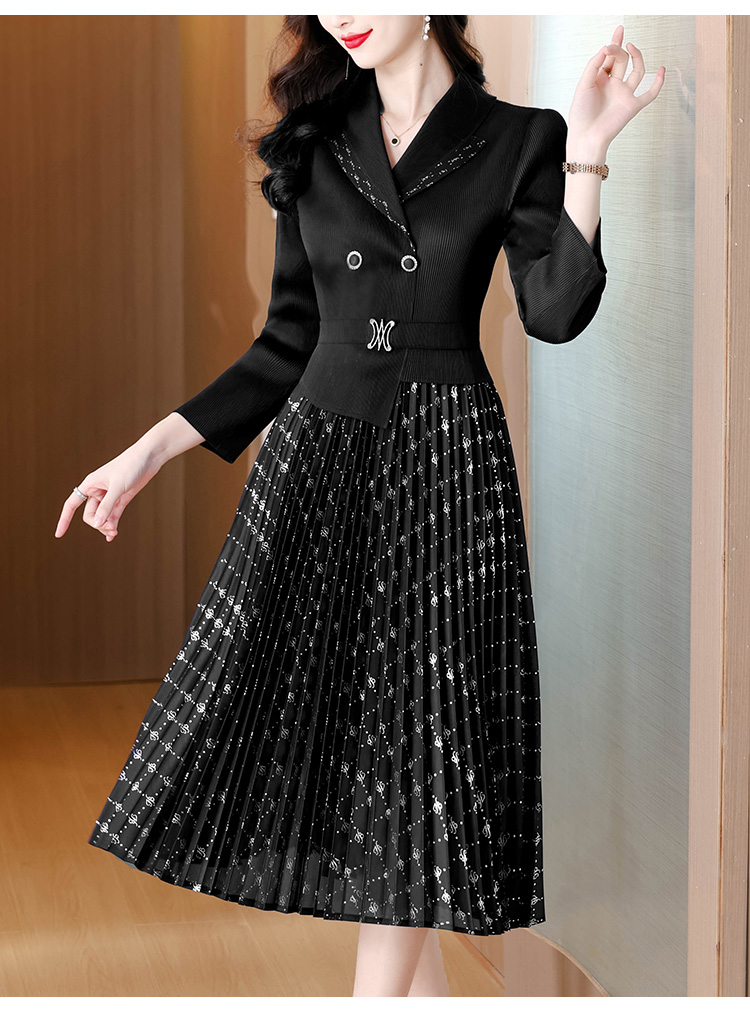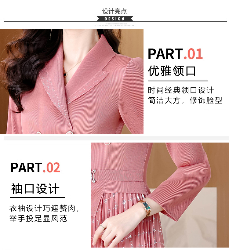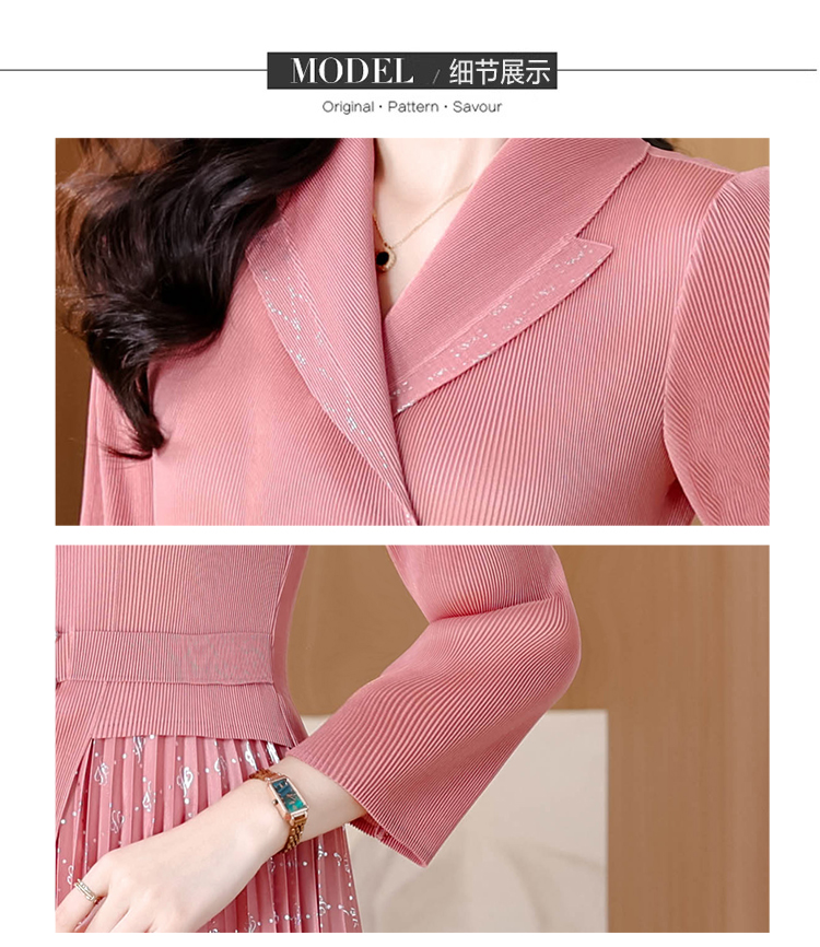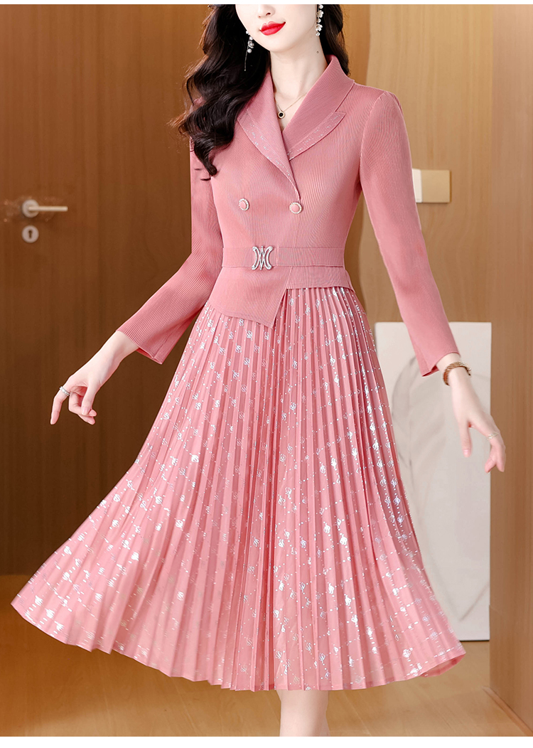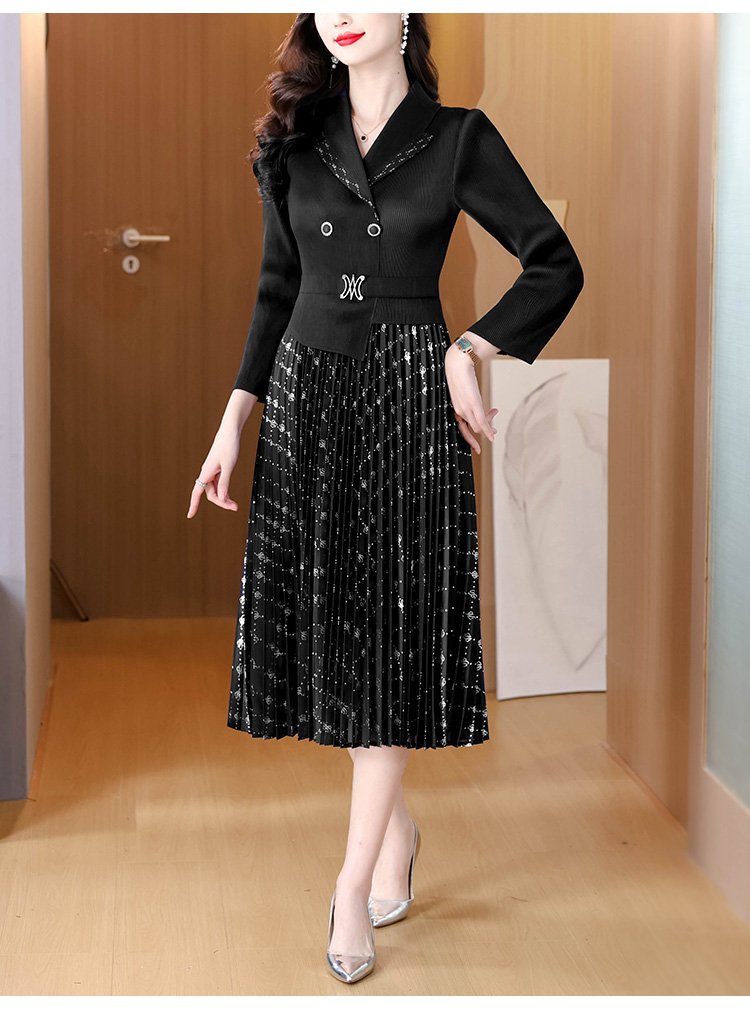 MY15704# 三宅褶皱连衣裙新款烫金垂感复古假两件收腰显瘦中长百褶裙女裝貨源服裝批發