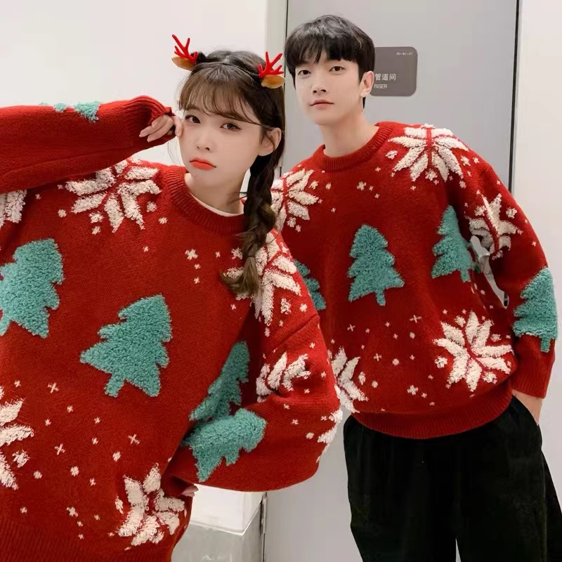 MY15706# 圣诞节日红色毛衣女新款慵懒风加厚针织衫ins风外穿上衣女裝貨源服裝批發