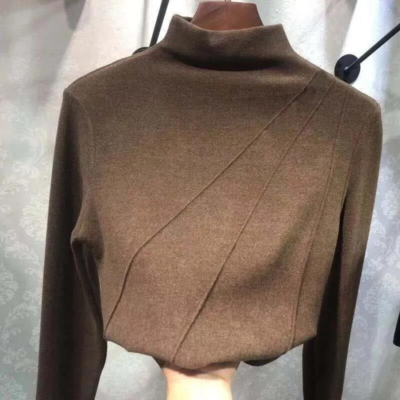 MY15712# 外贸韩版新款双面绒半高领打底衫女装秋冬内搭保暖长袖T恤女女裝貨源服裝批發