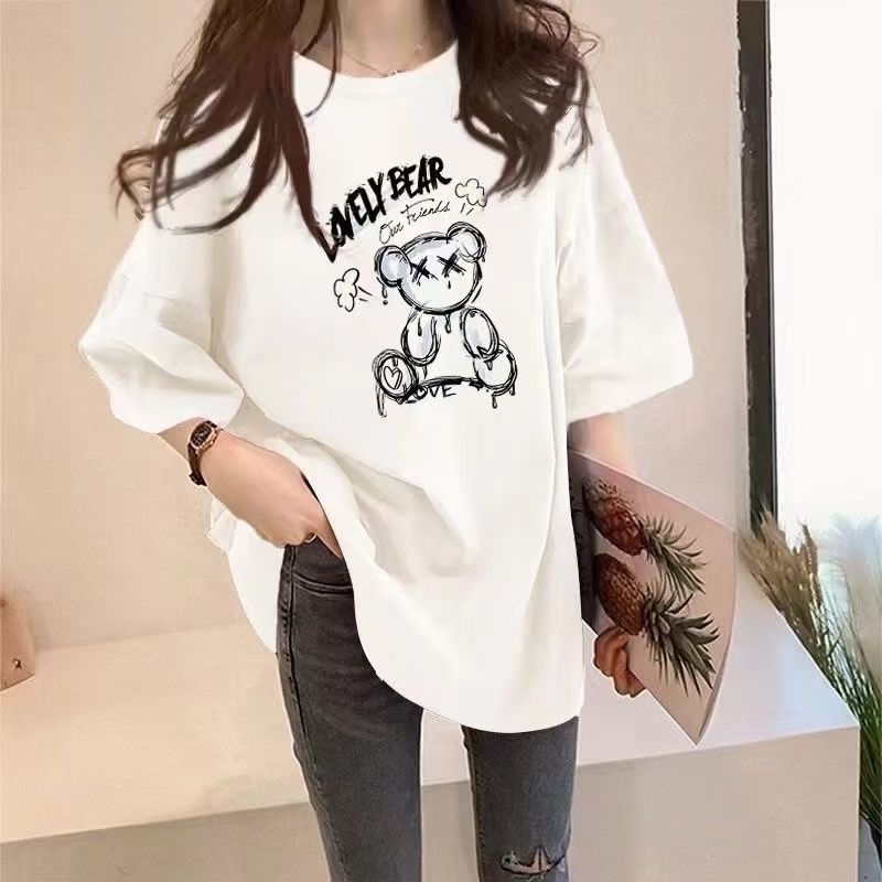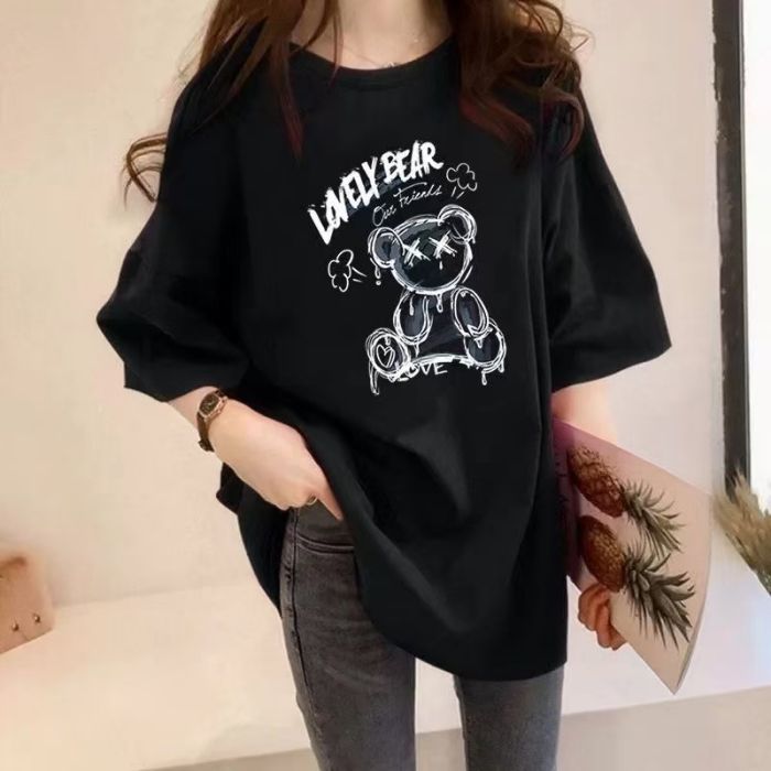 MY15716# 足码原版外贸夏季新款短袖T恤女韩版宽松慵懒原宿上衣chic港女裝貨源服裝批發