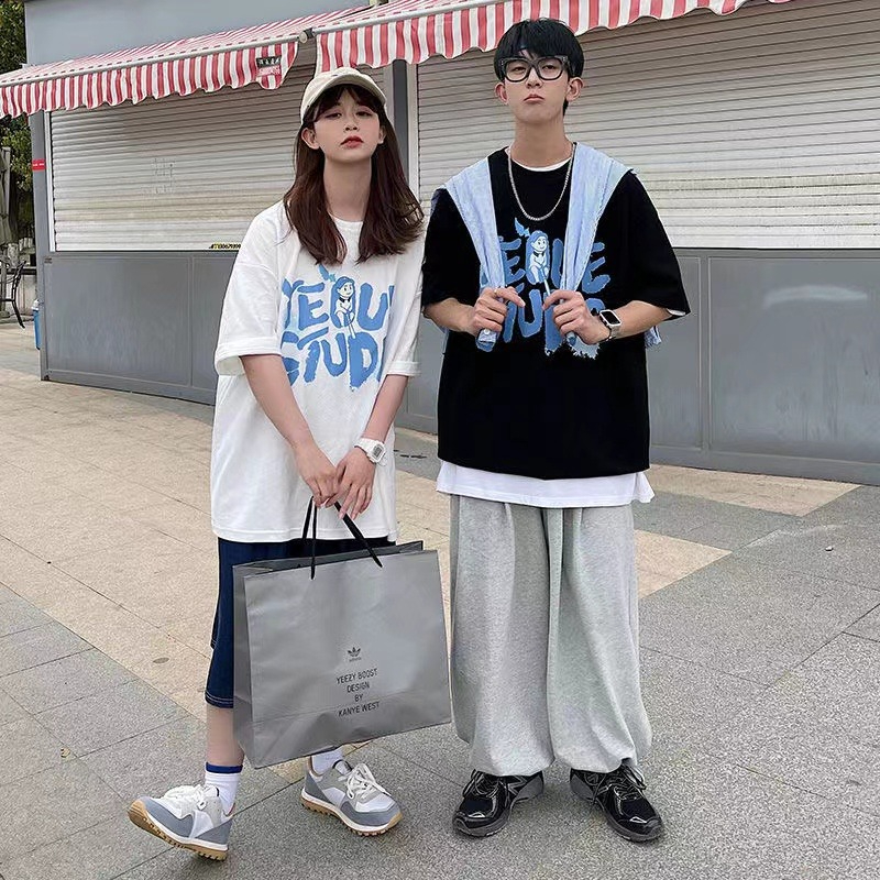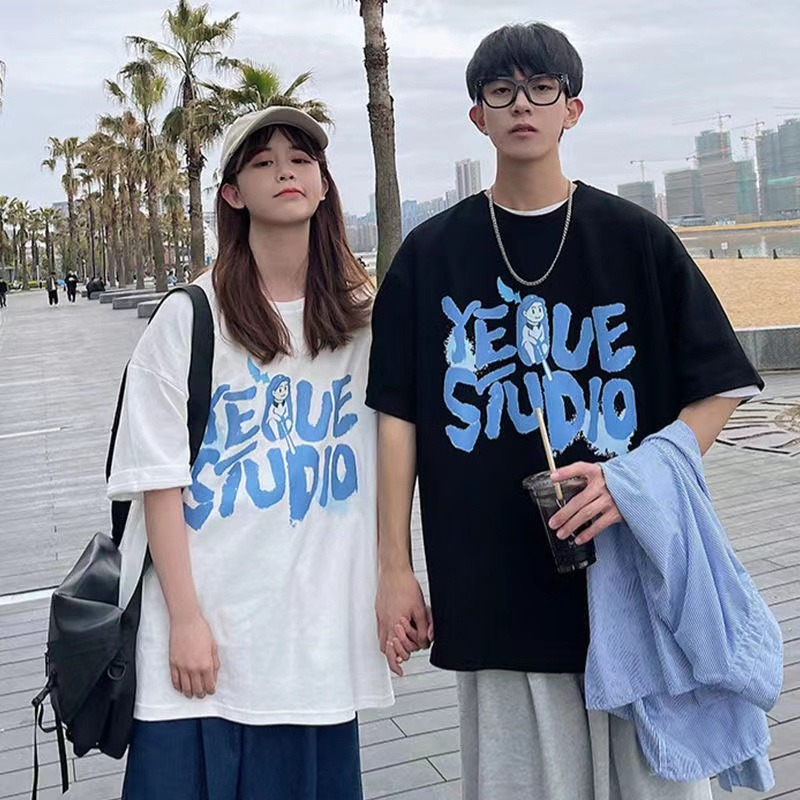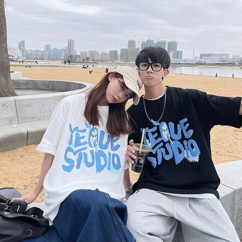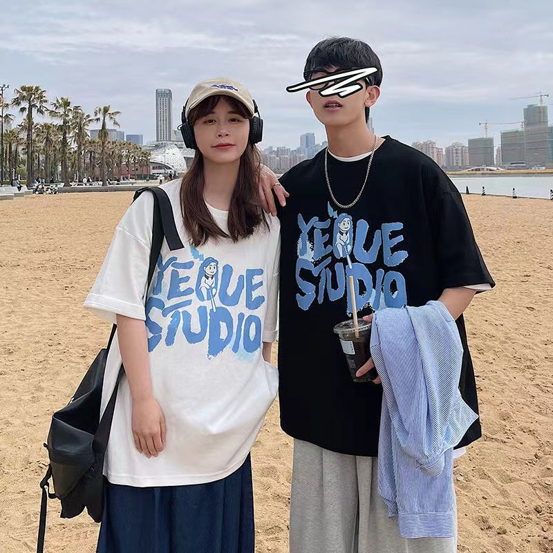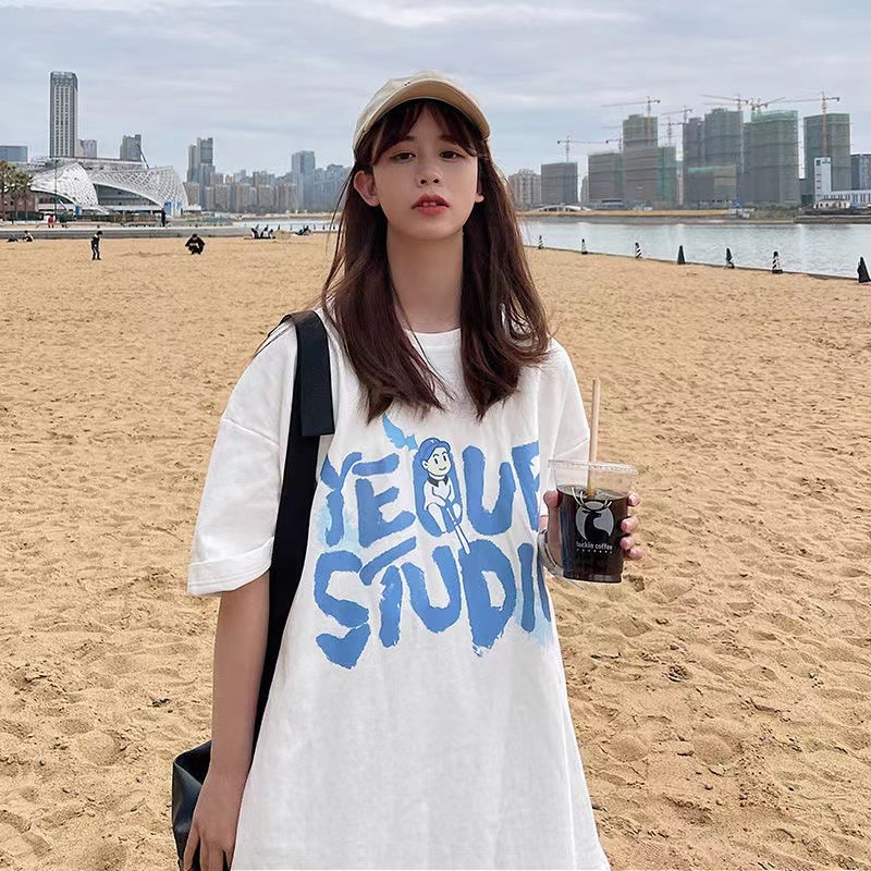 MY15718# 外贸韩版星球印花港风网红ins短袖T恤女宽松慵懒风学生情侣上衣女裝貨源服裝批發