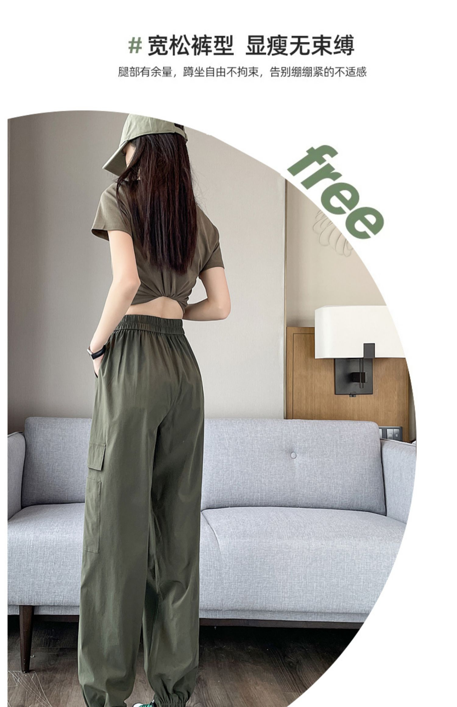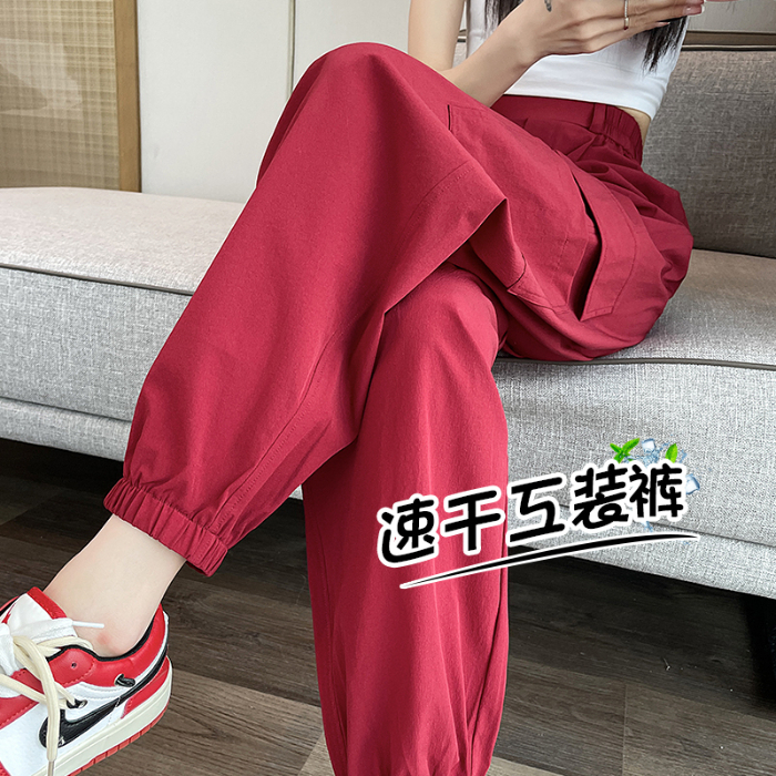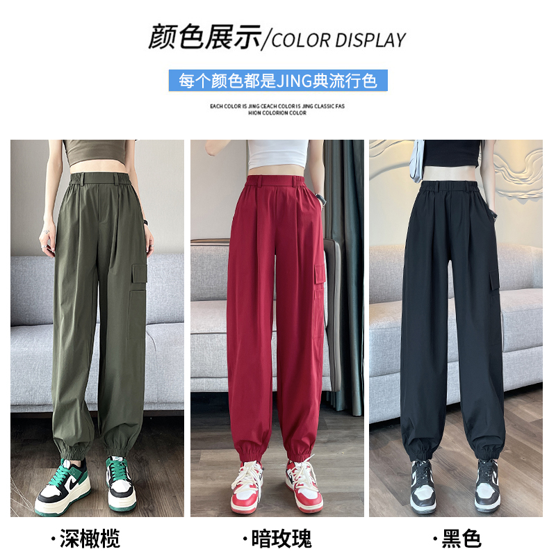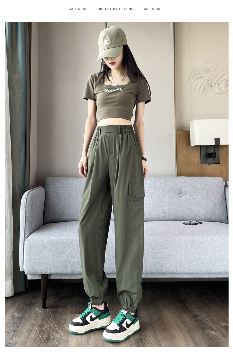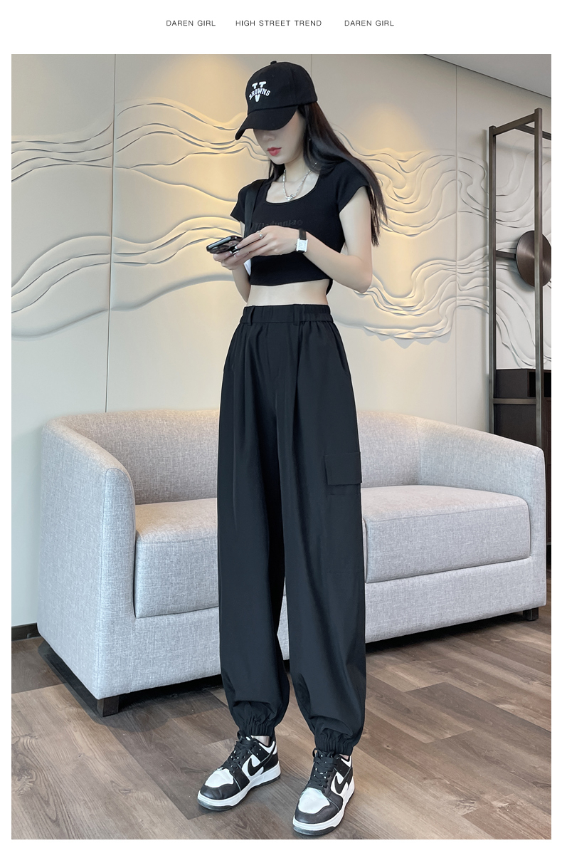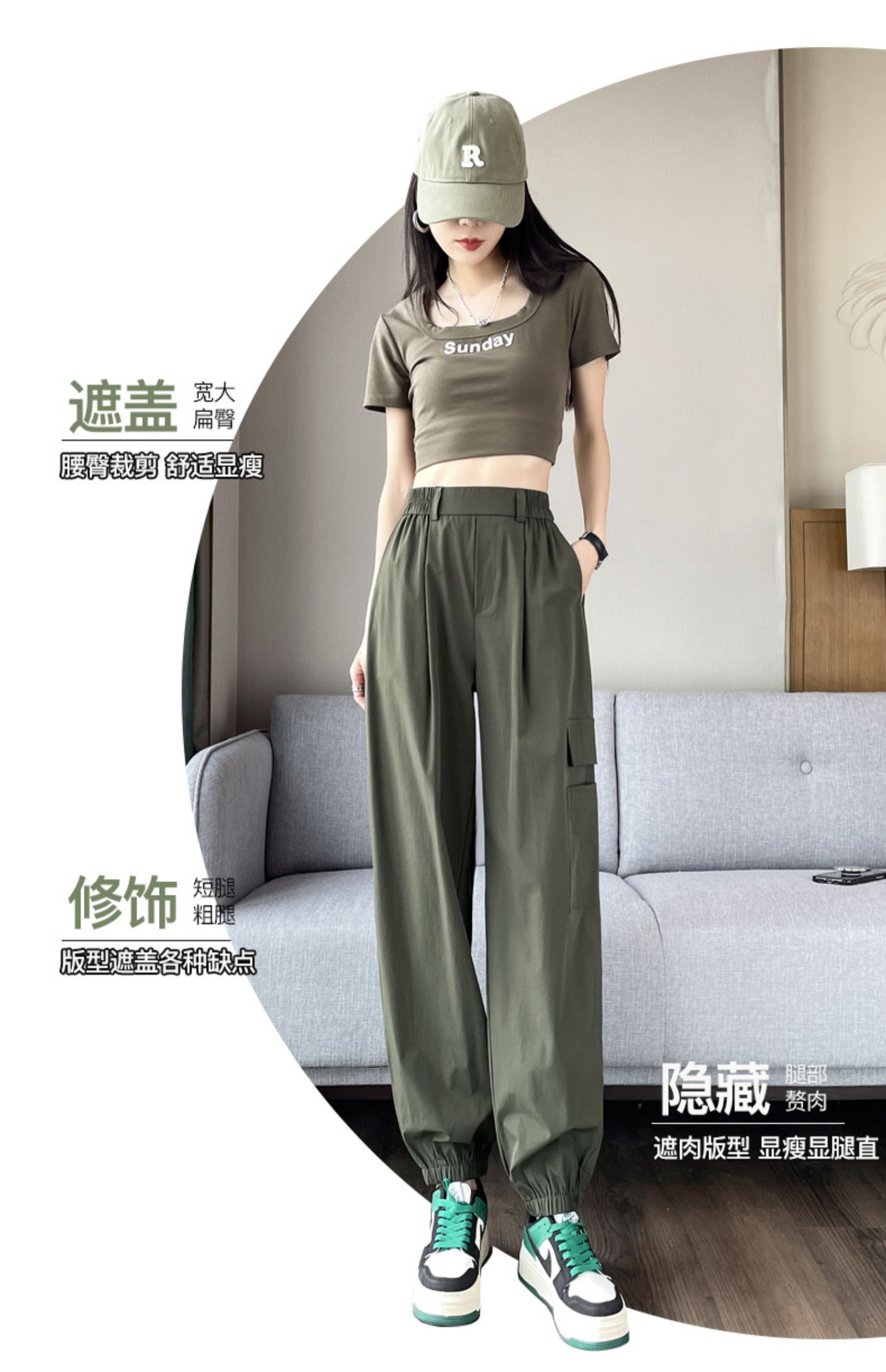 MY15722# 外贸薄款速干工装裤女春季高腰显瘦哈伦高腰阔腿美式运动束脚裤女裝貨源服裝批發