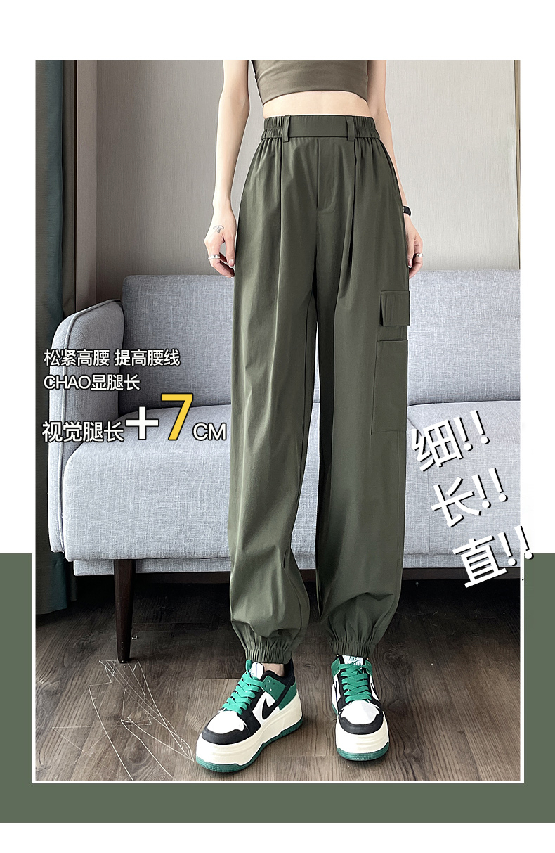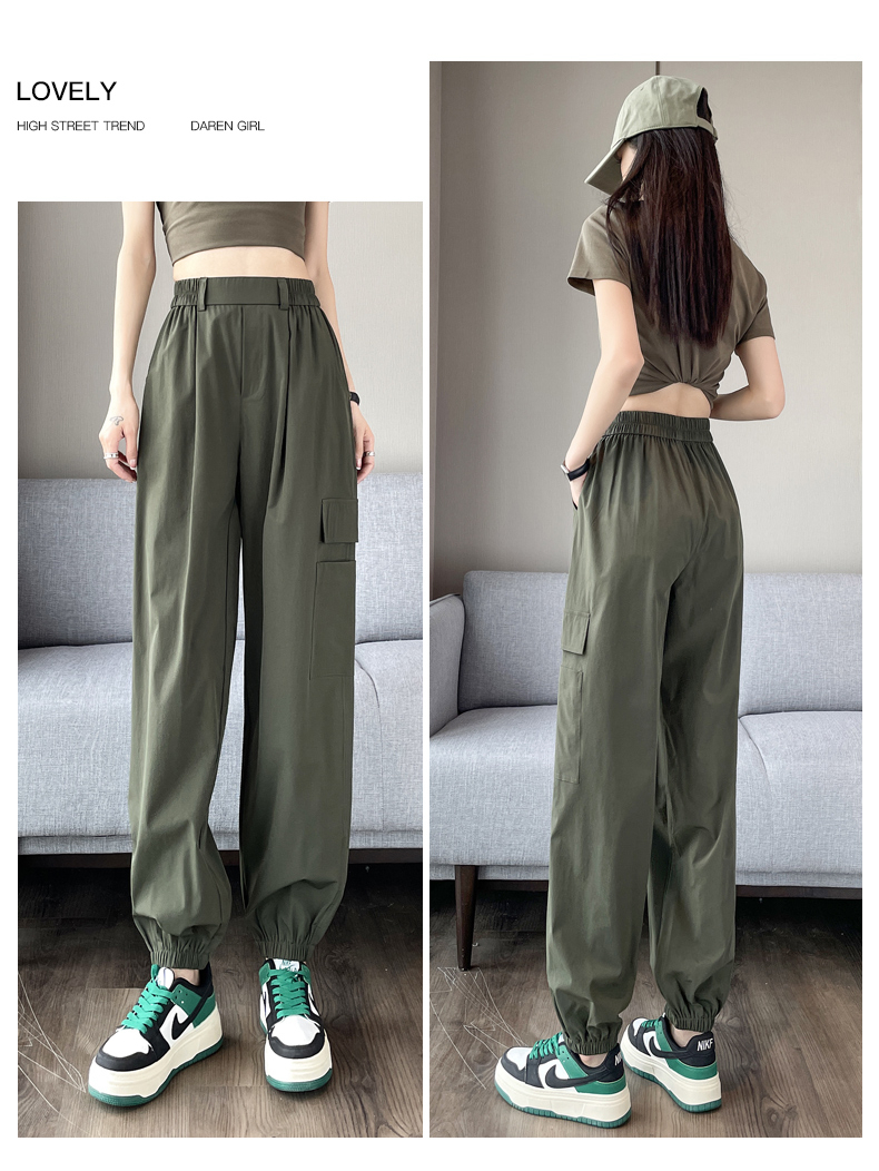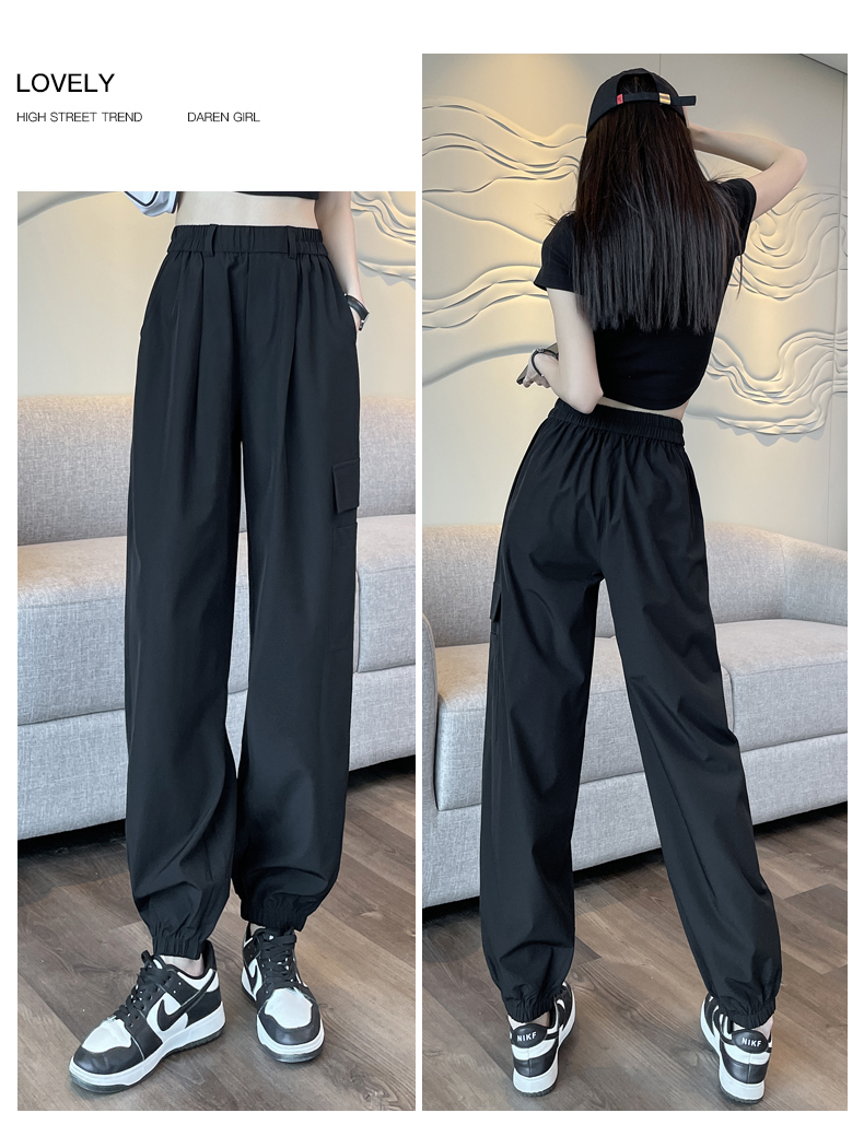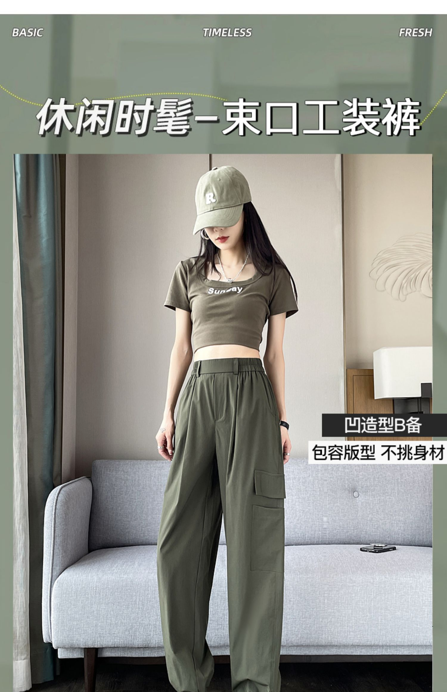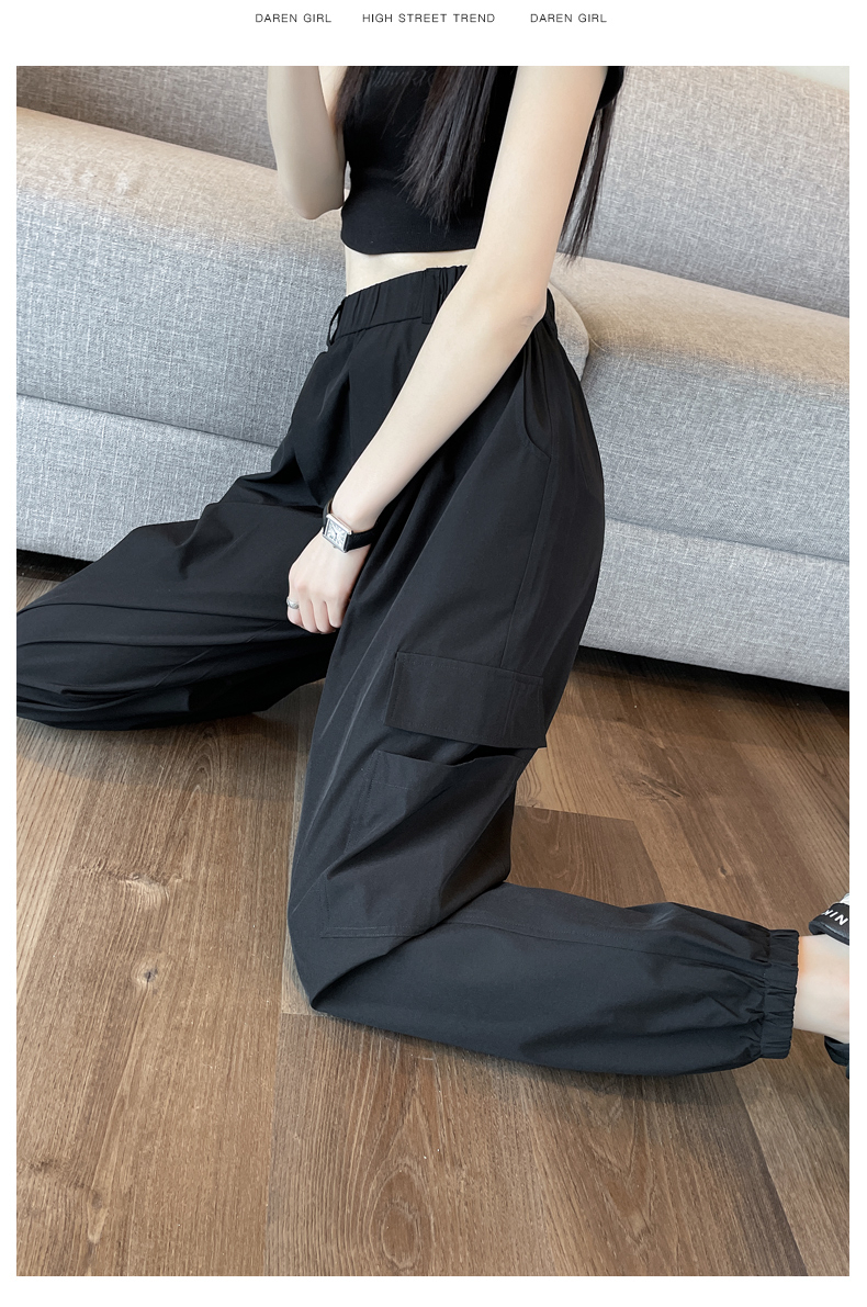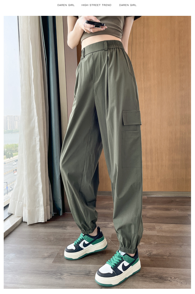 MY15722# 外贸薄款速干工装裤女春季高腰显瘦哈伦高腰阔腿美式运动束脚裤女裝貨源服裝批發