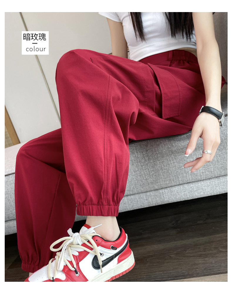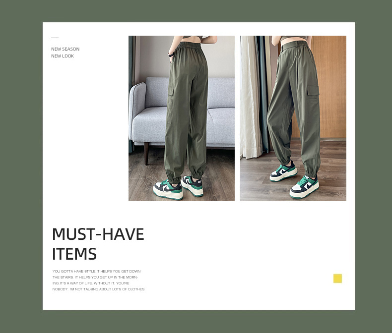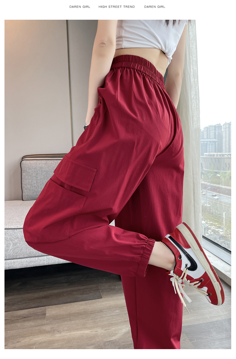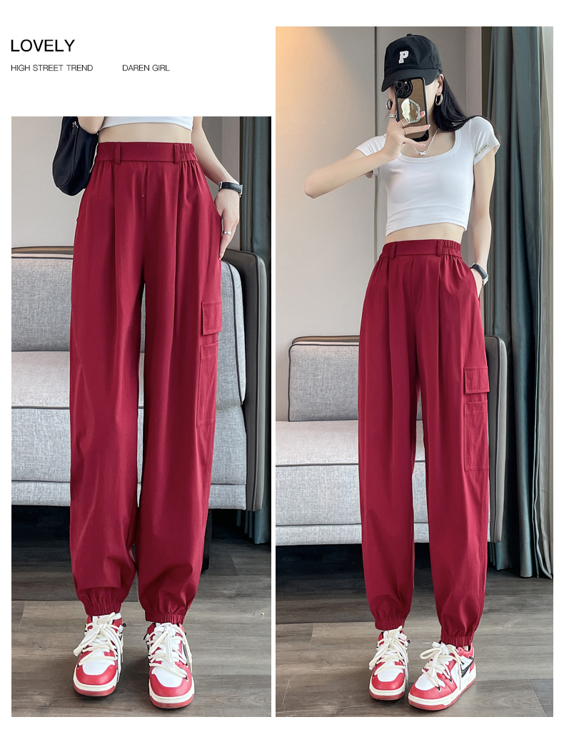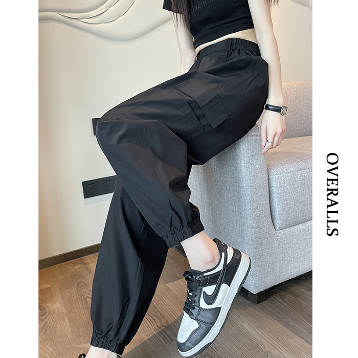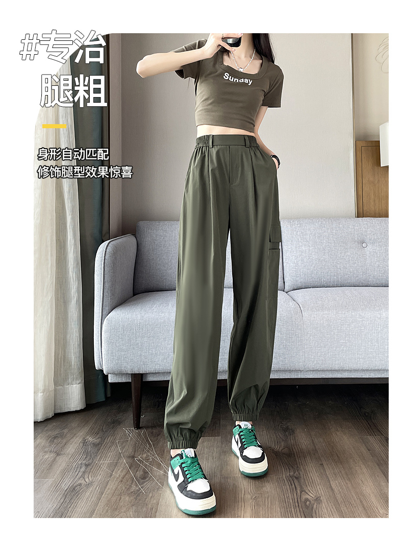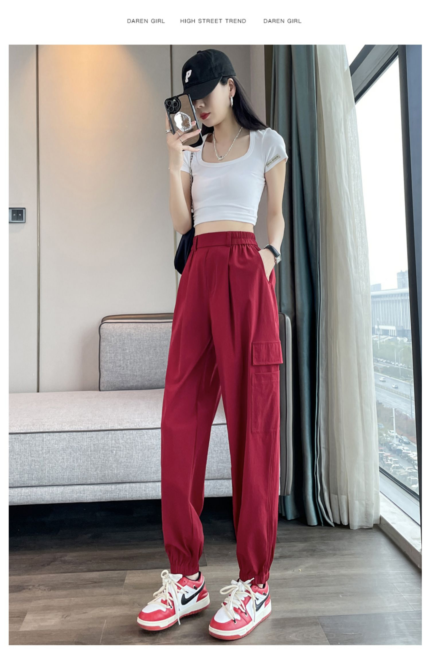 MY15722# 外贸薄款速干工装裤女春季高腰显瘦哈伦高腰阔腿美式运动束脚裤女裝貨源服裝批發