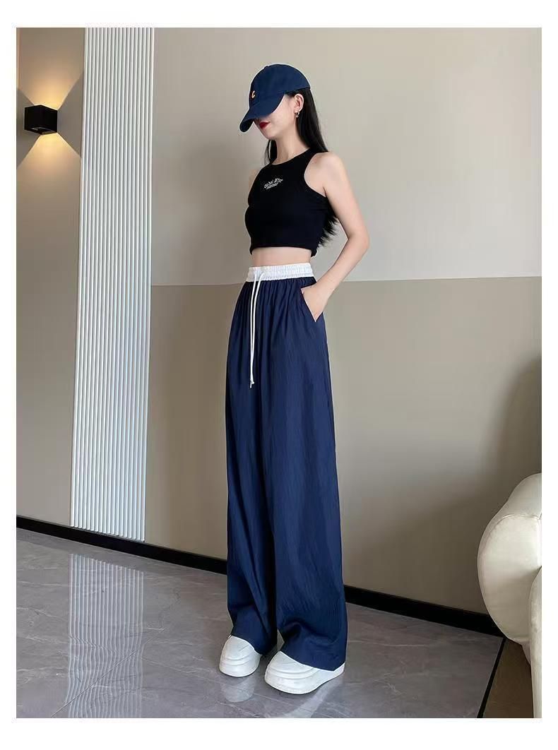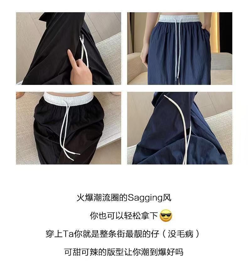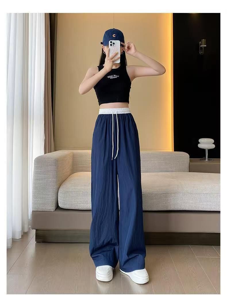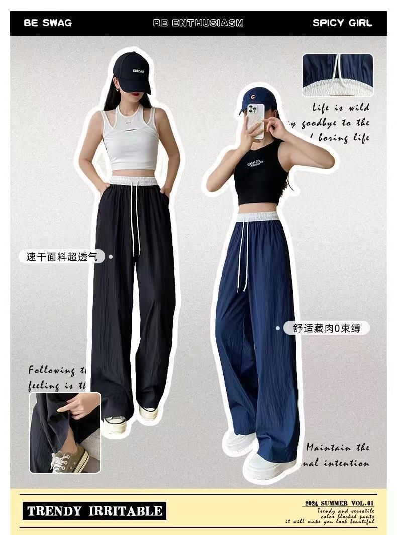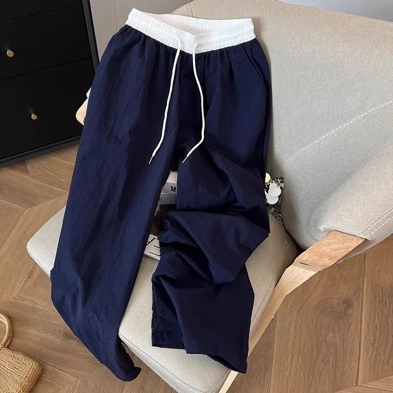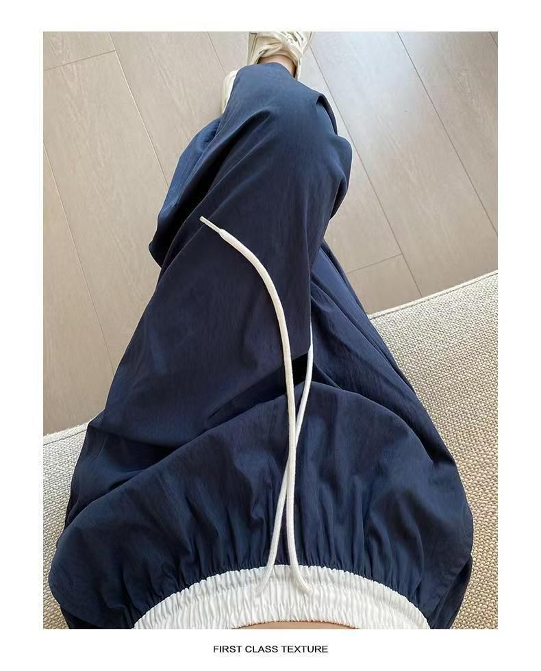 MY15723# 外贸爆款藏青工装直筒裤女春季薄款2026新款宽松休闲撞色运动裤子女裝貨源服裝批發